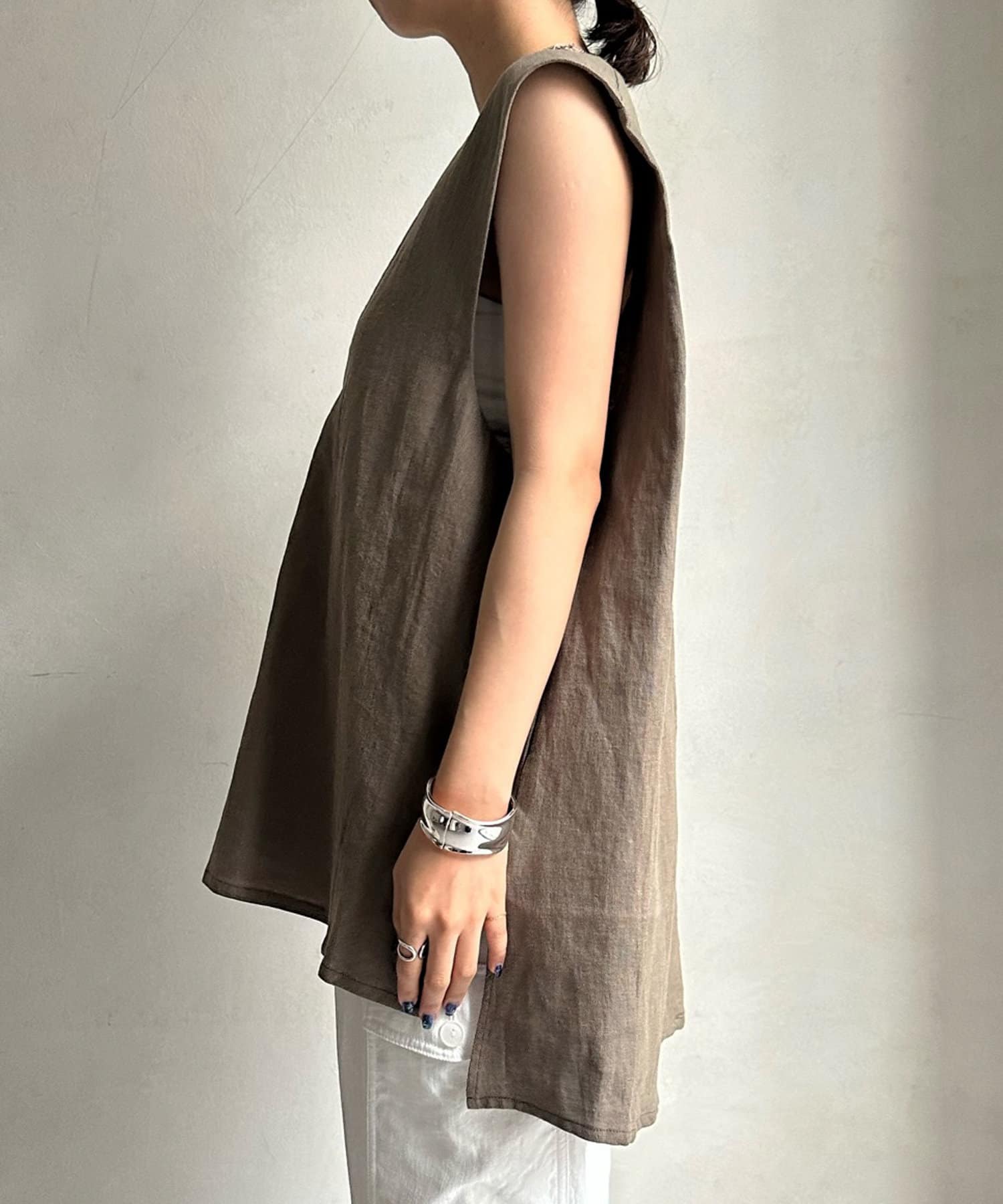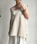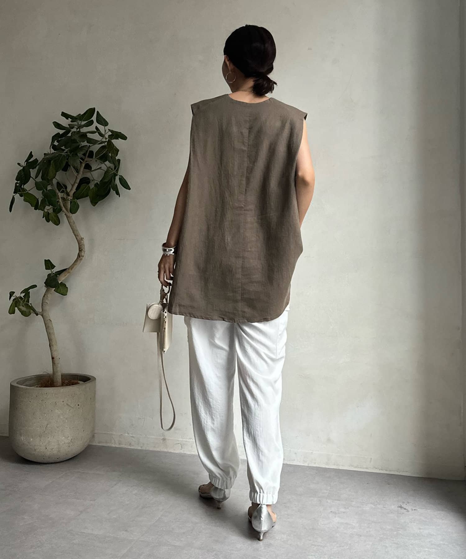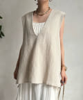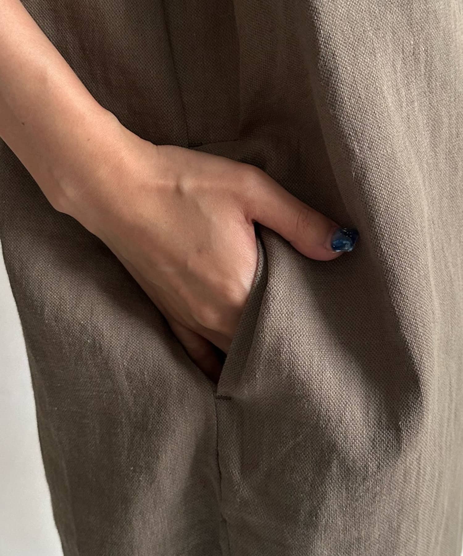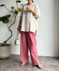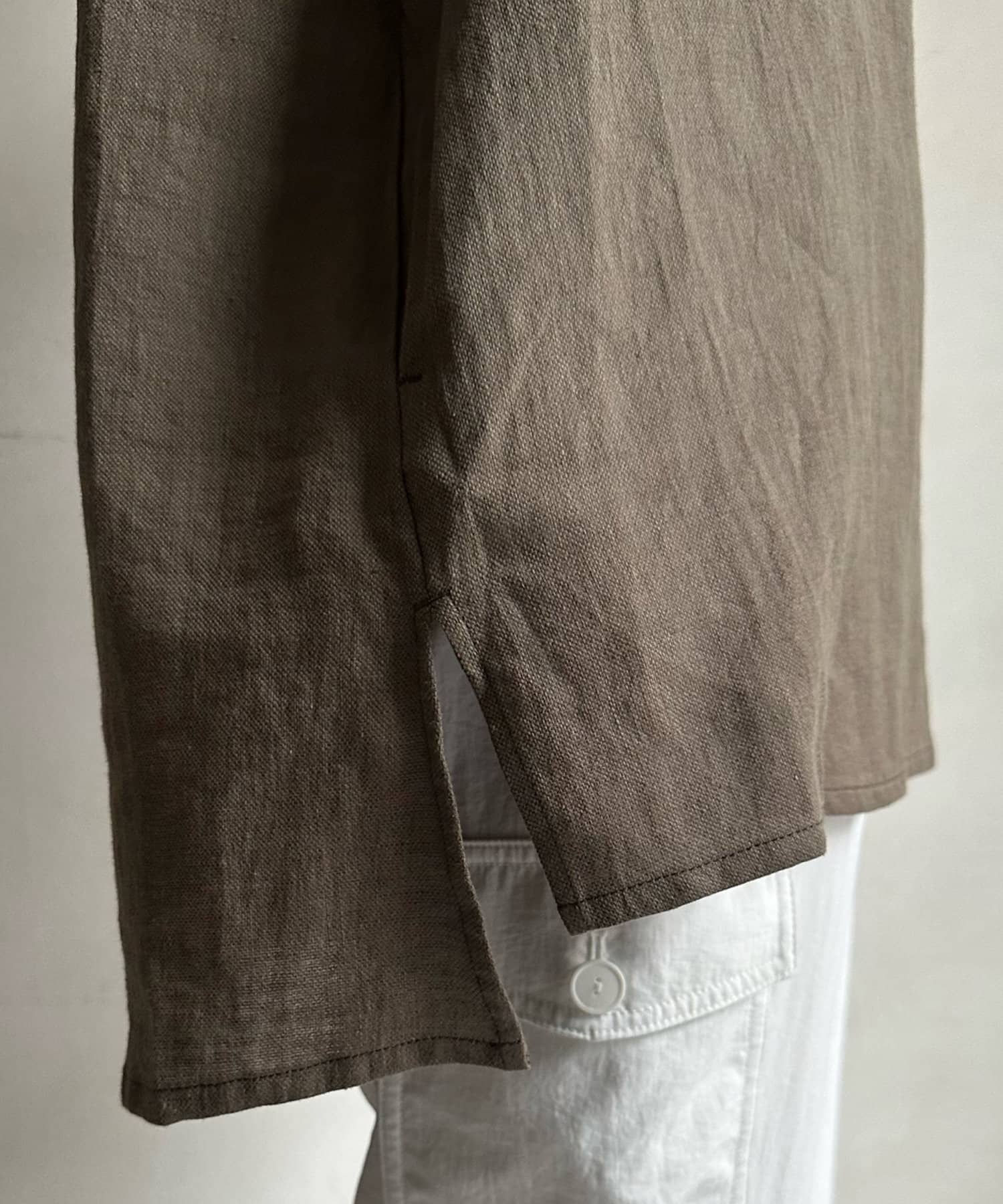 ナチュラルな雰囲気漂う麻混素材に、ややオーバーなサイジングの為、ゆったりとリラックス感のある印象に仕上がります。