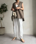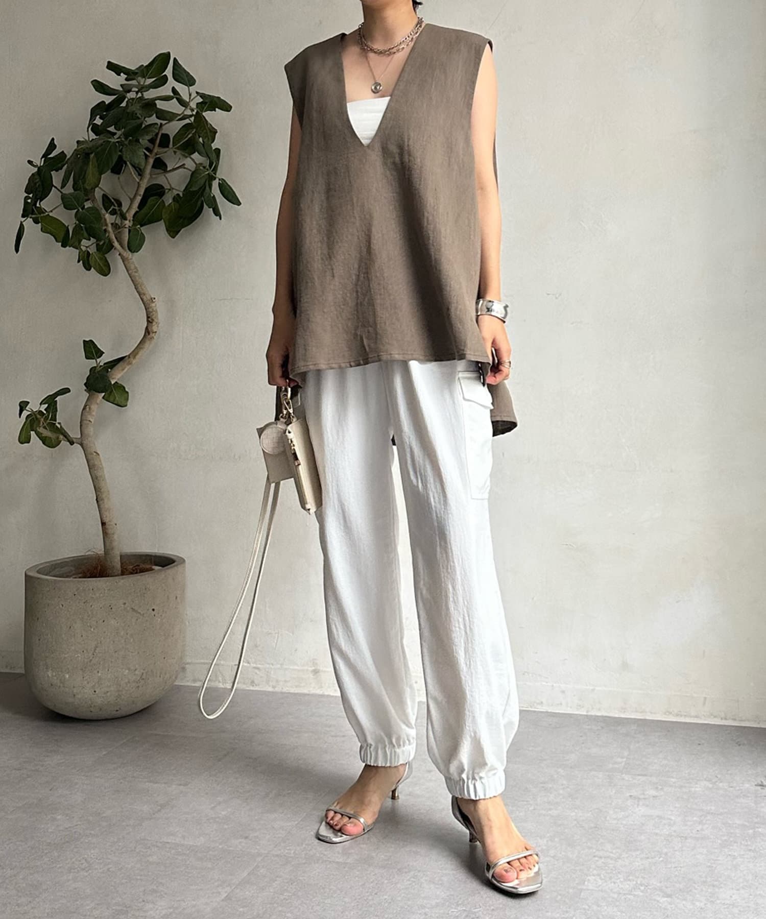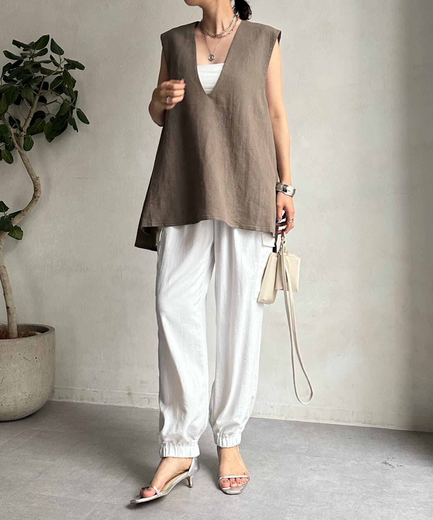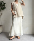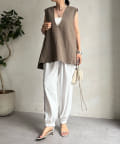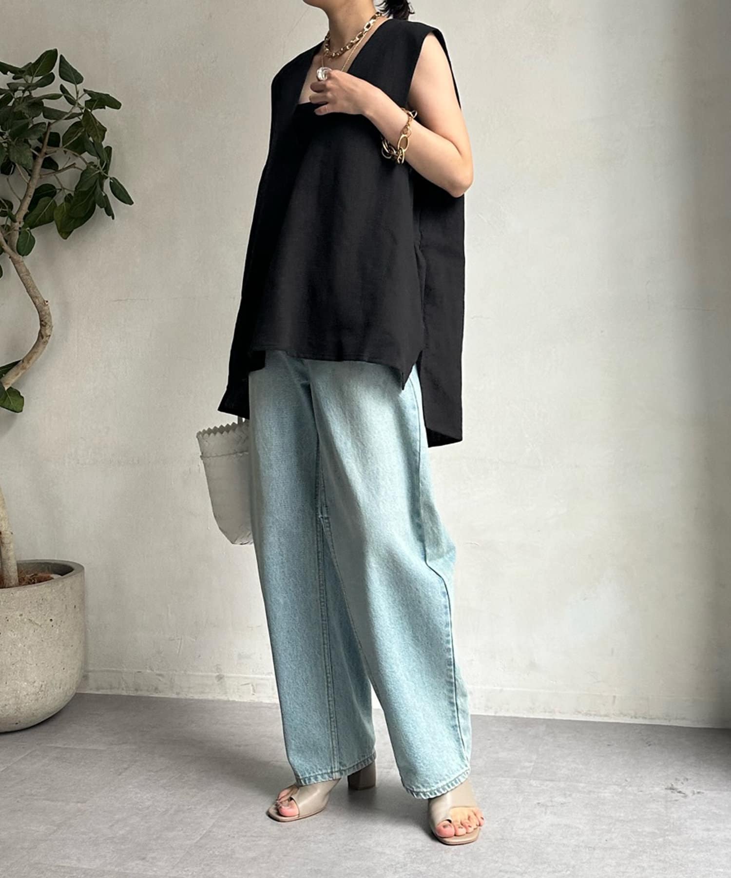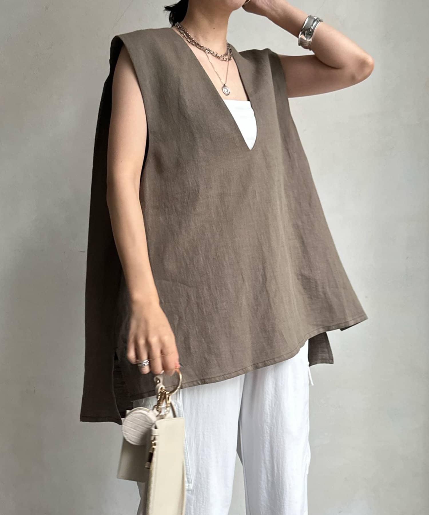 ナチュラルな雰囲気漂う麻混素材に、ややオーバーなサイジングの為、ゆったりとリラックス感のある印象に仕上がります。