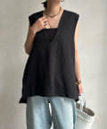 ショルダー部分にはタックデザインを入れ、二の腕を包み込むような立体的なシルエットに。