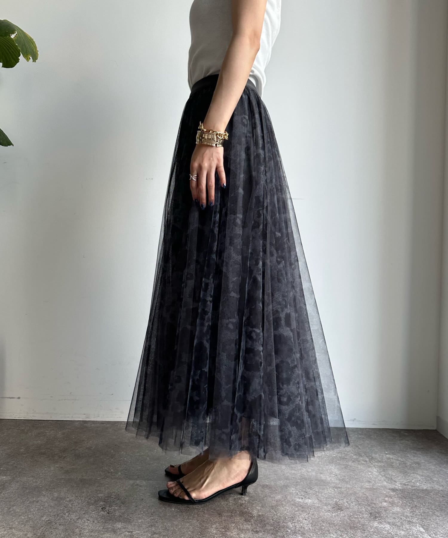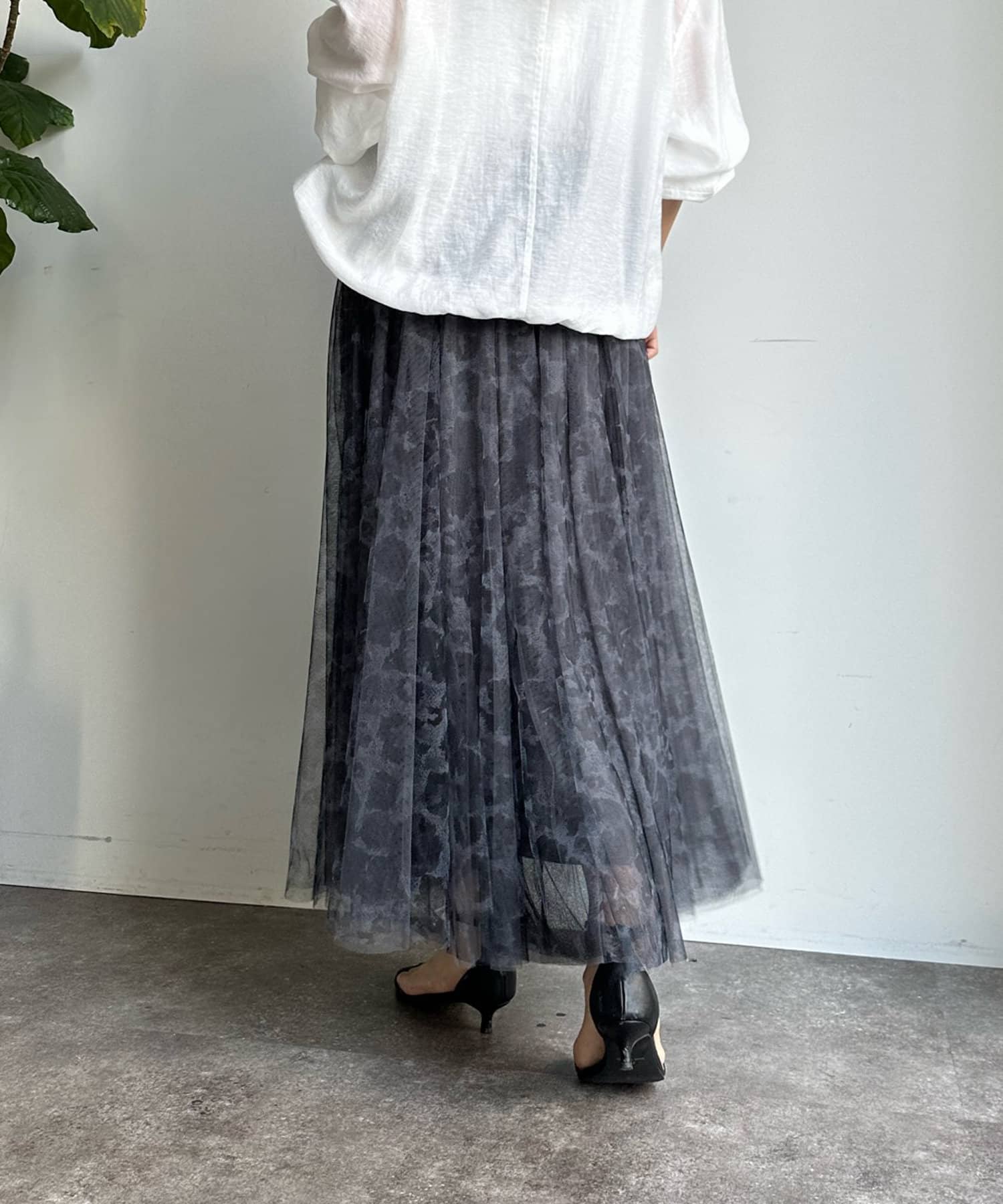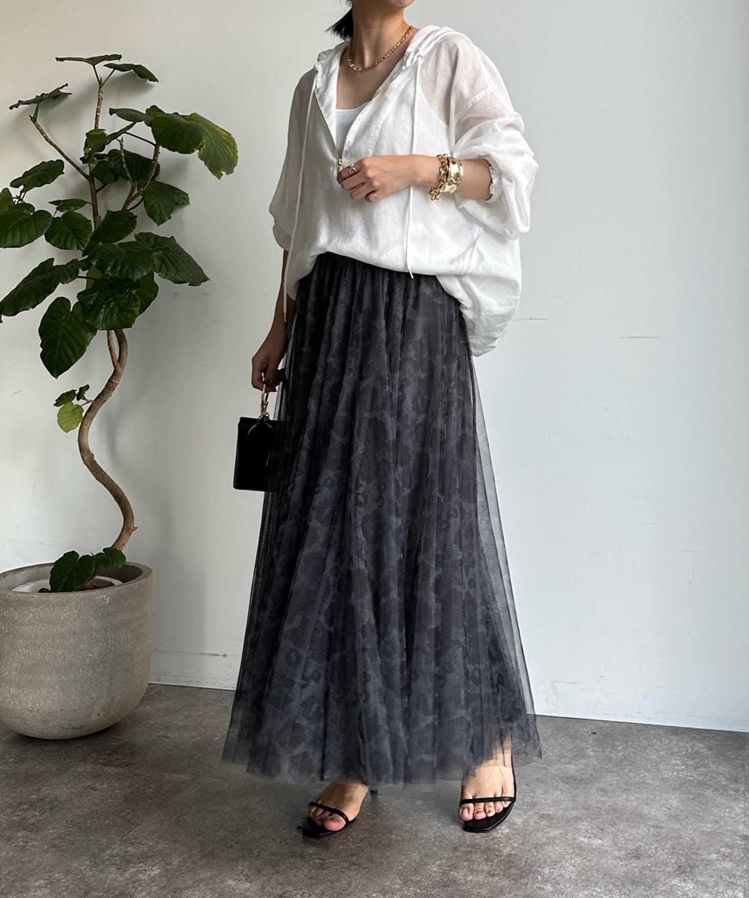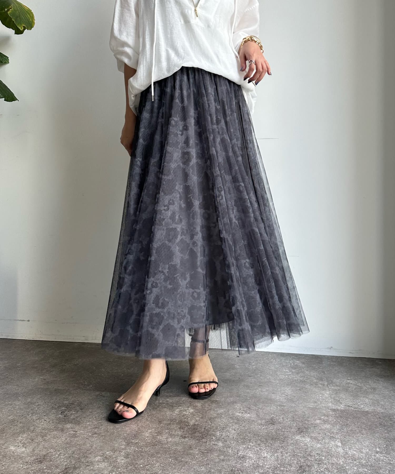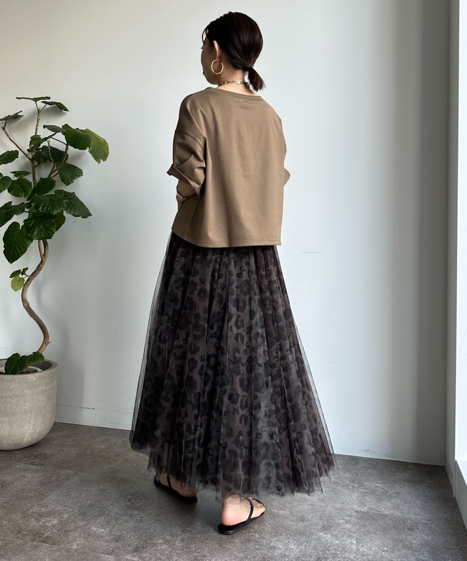 派手過ぎない色合いで落ち着いた印象を与えてくれるレオパード柄のチュールスカートです。