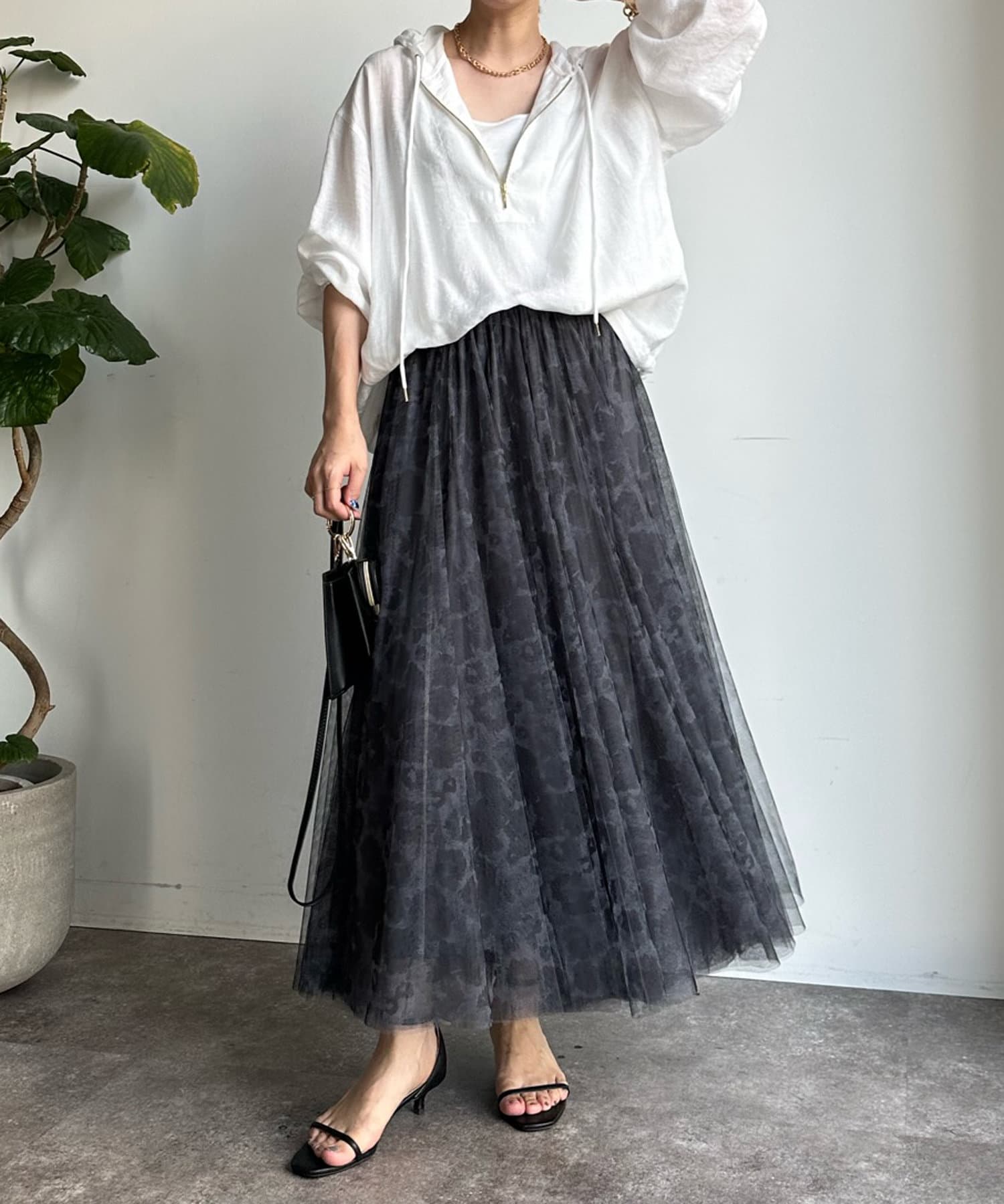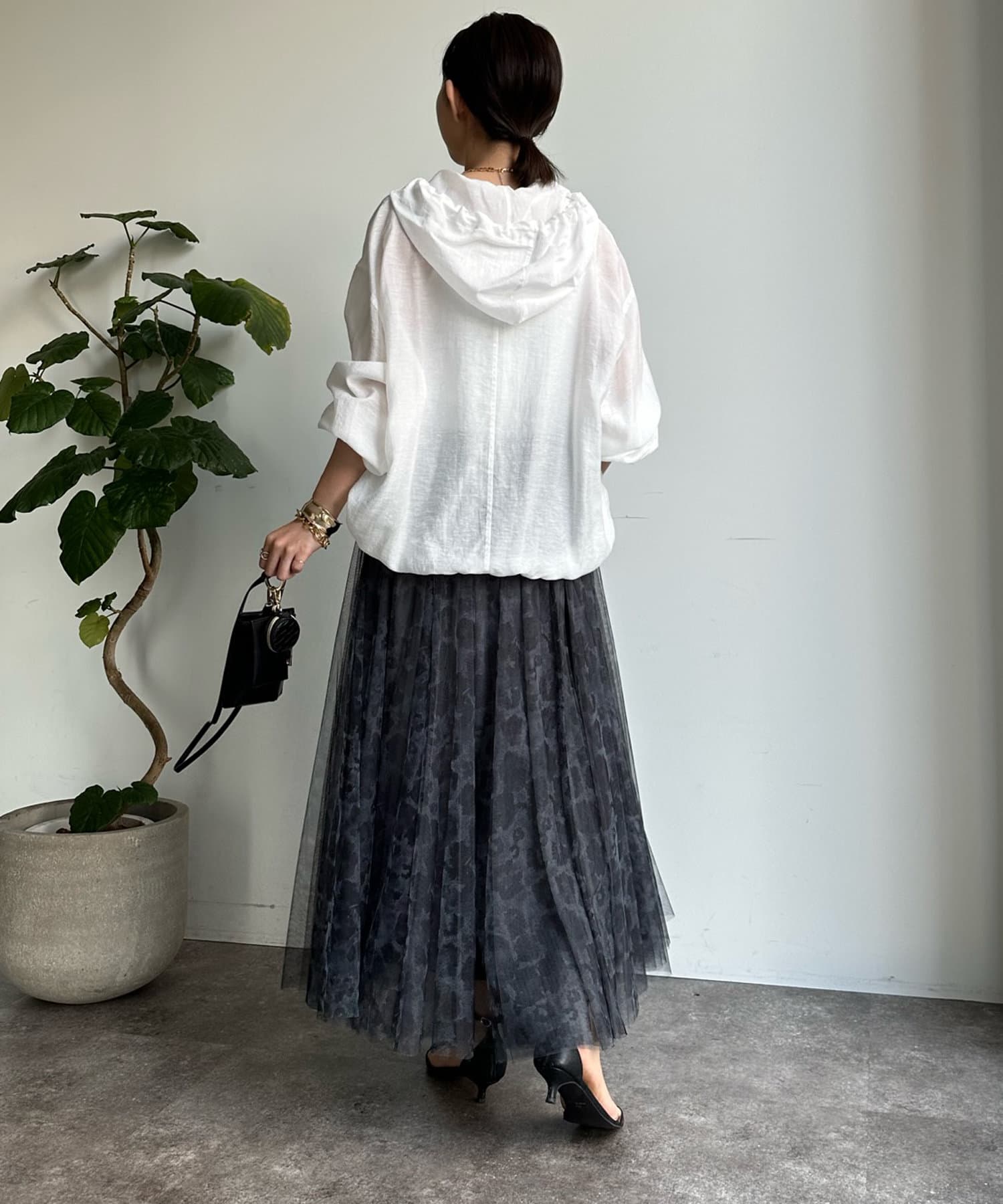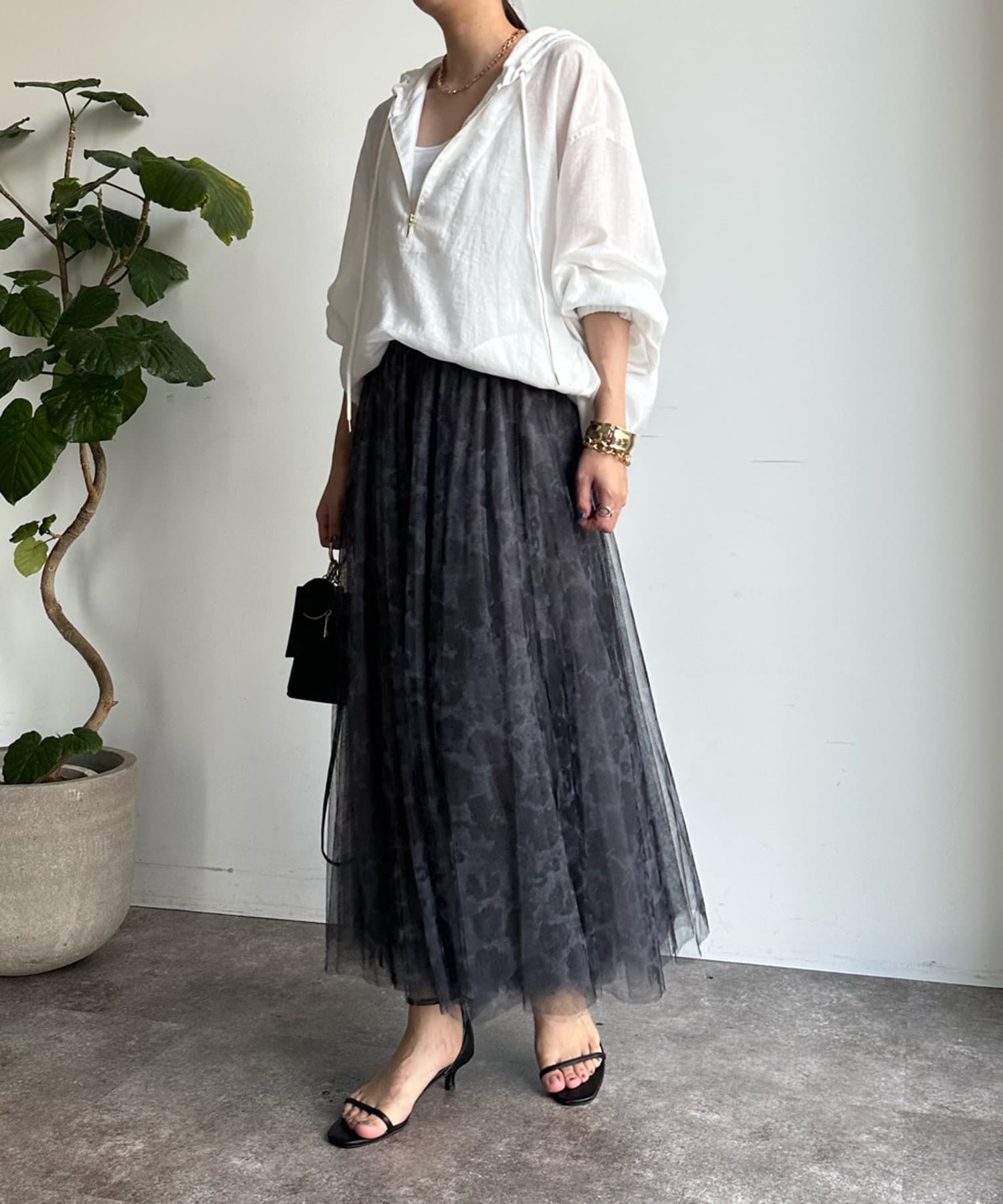 また、チュール丈より裏地丈が短いので足首がシアーになり、ぬけ感を演出してくれますよ!