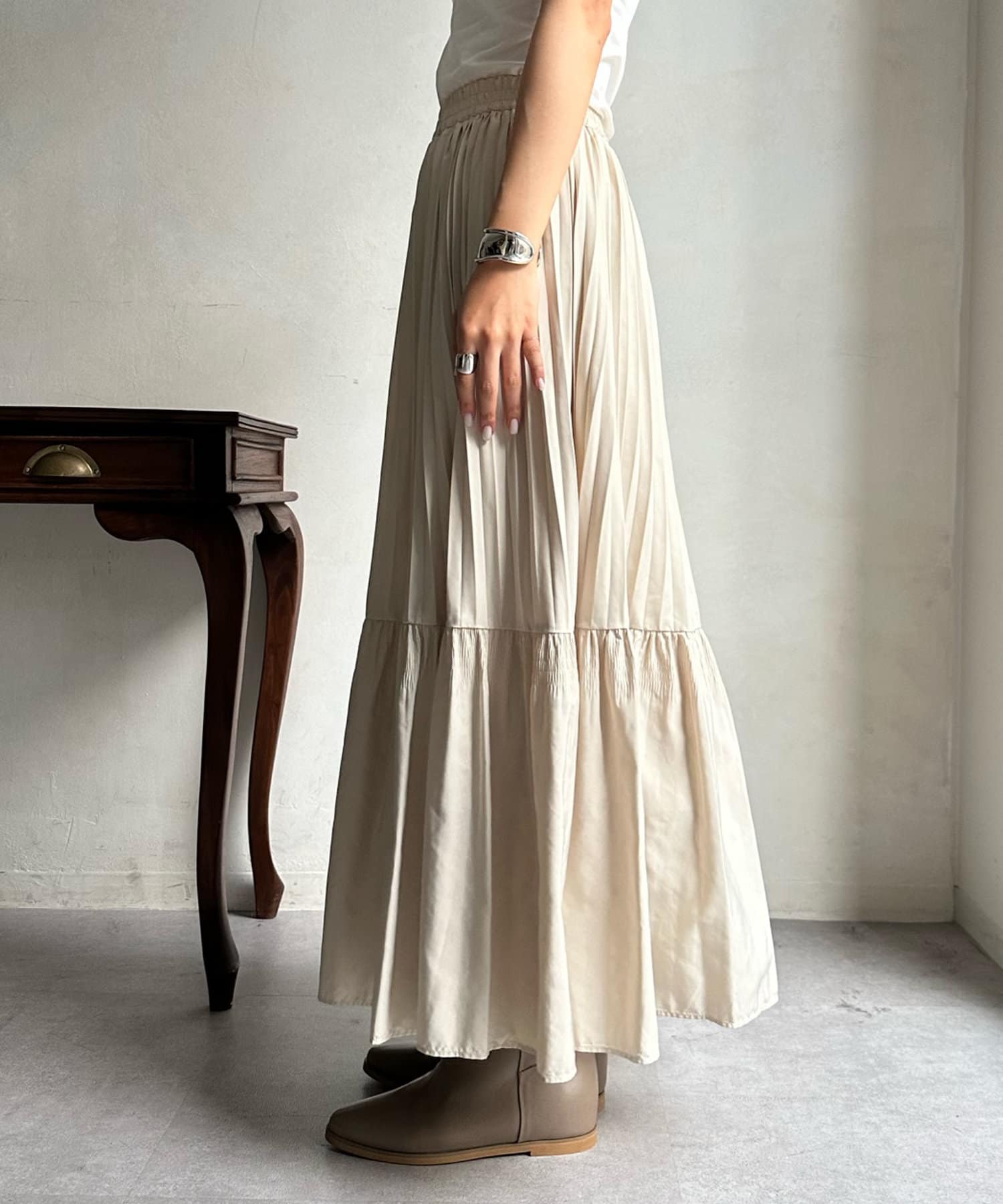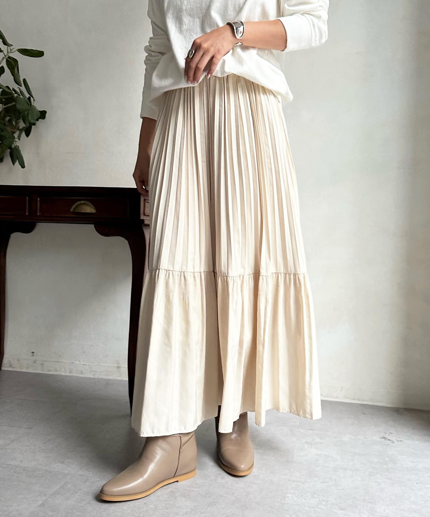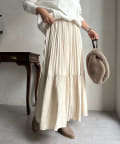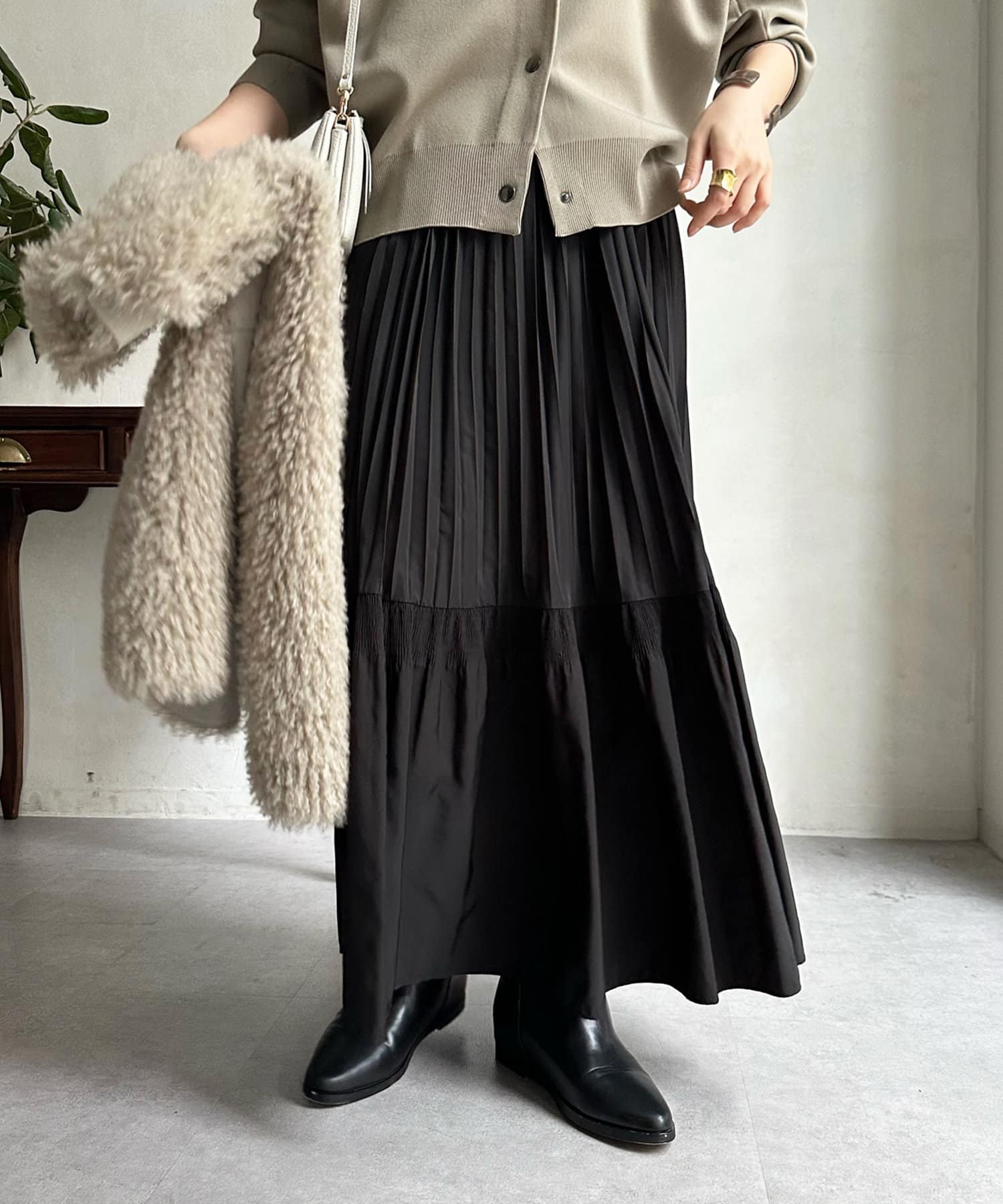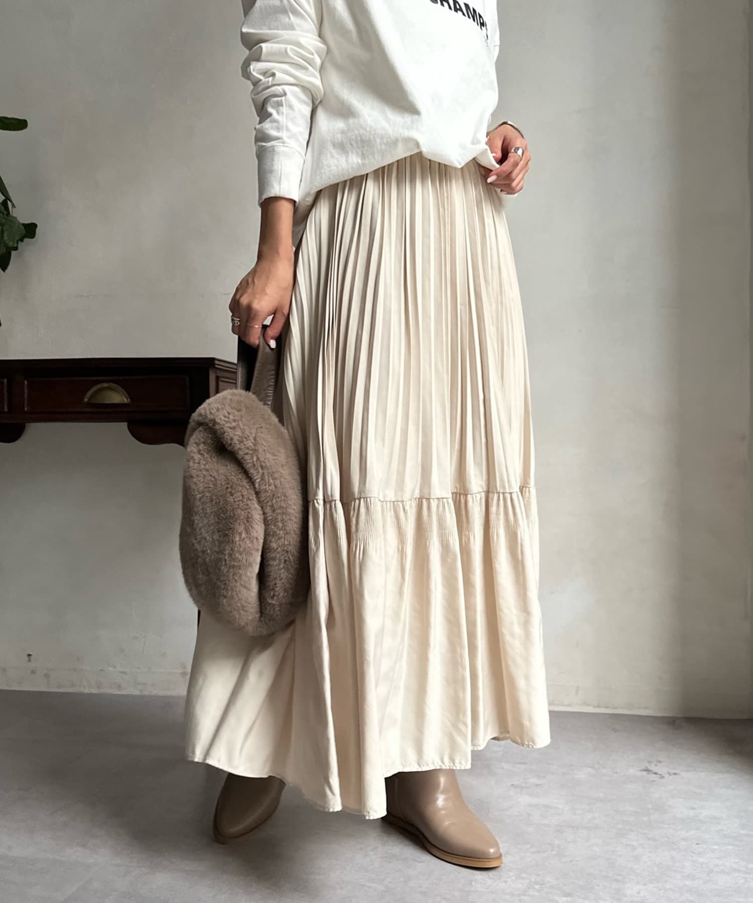 裾に向かって緩やかに広がるシルエットが旬な印象に。