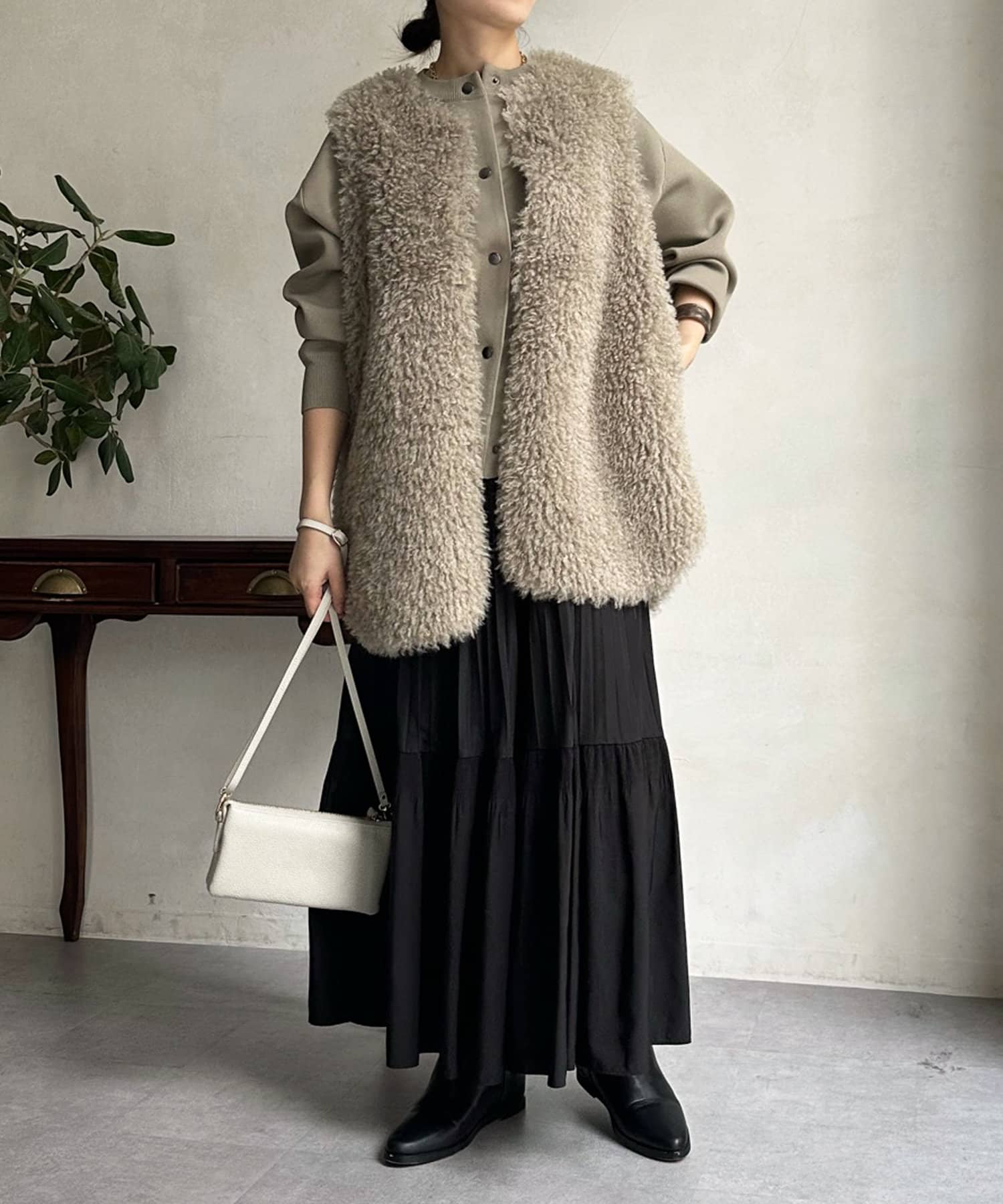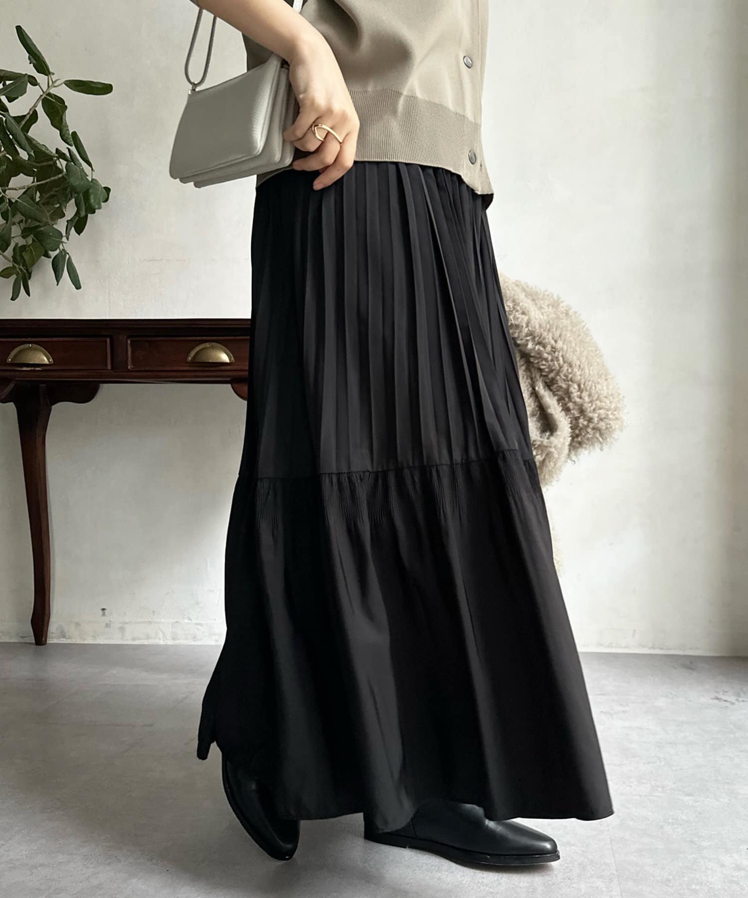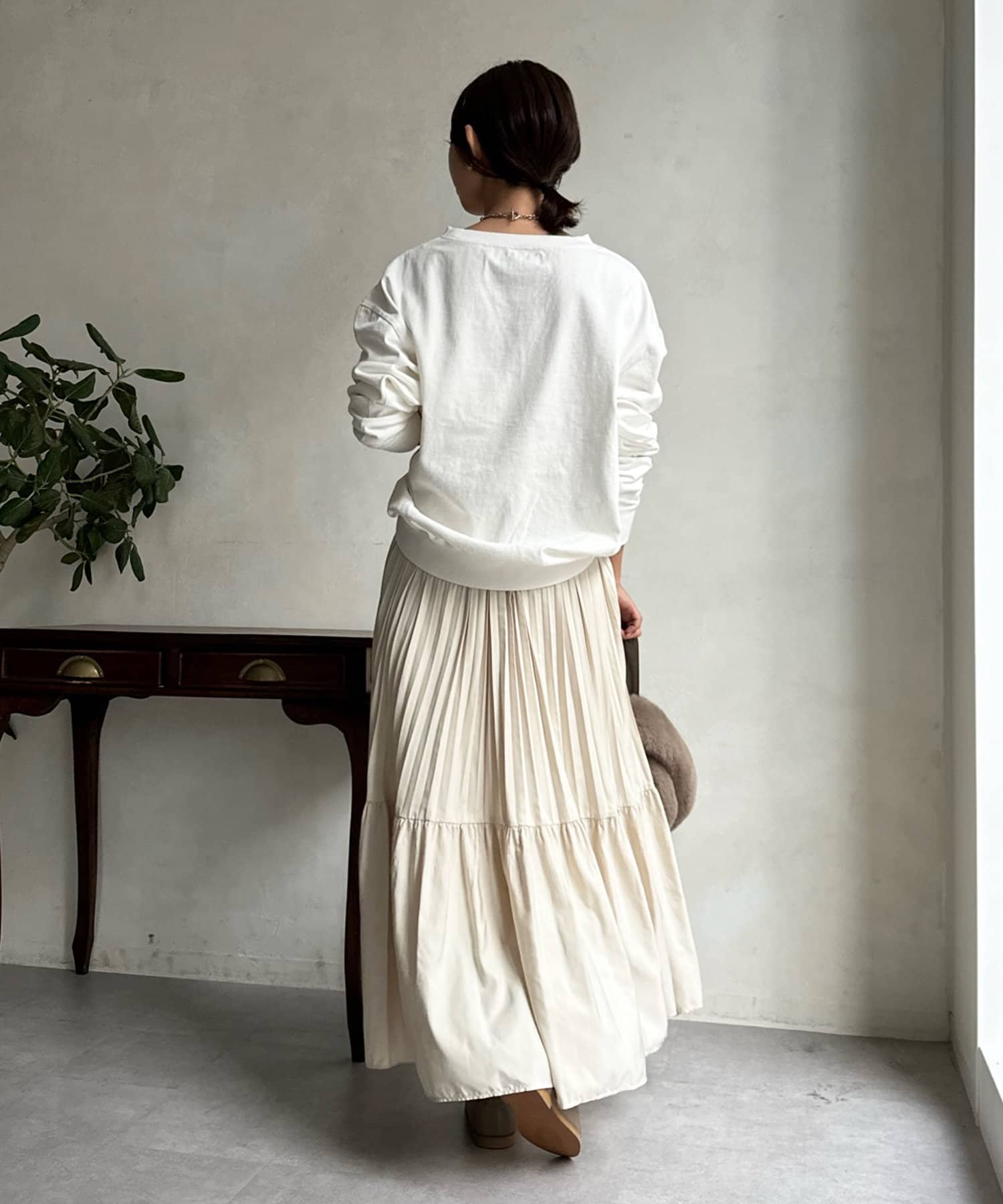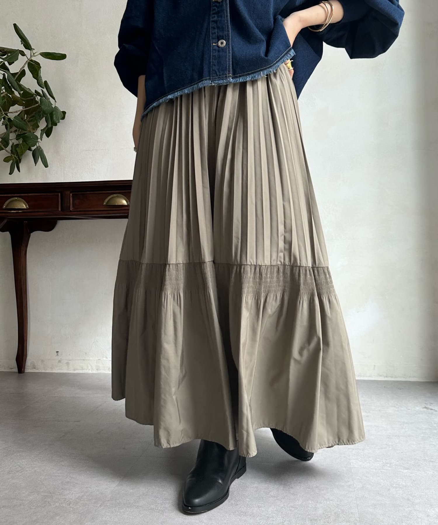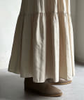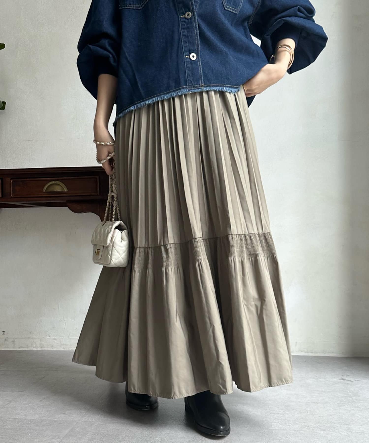 裾に向かって緩やかに広がるシルエットが旬な印象に。