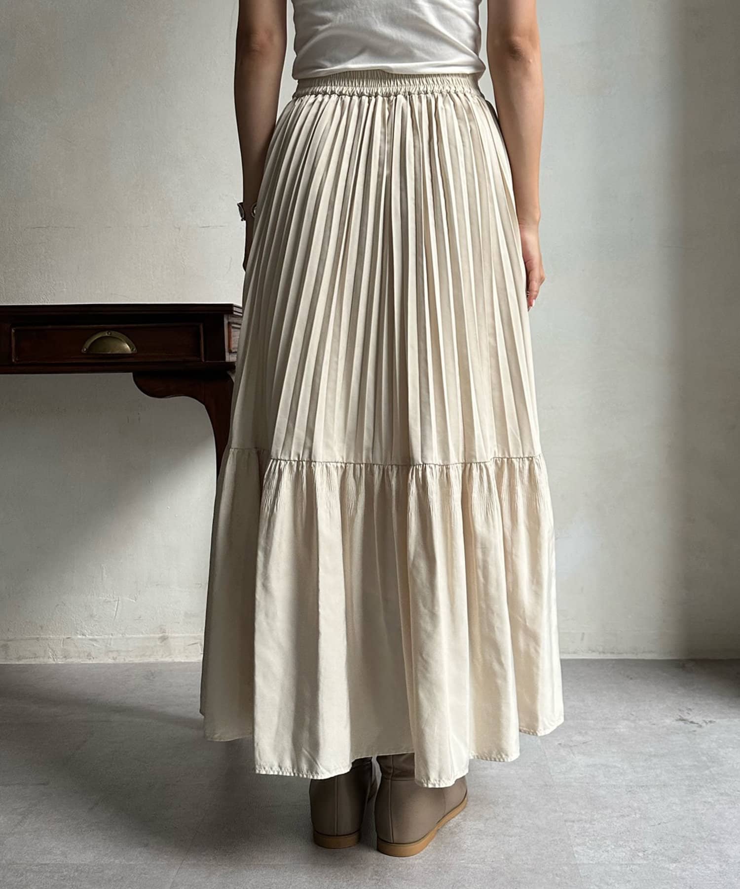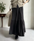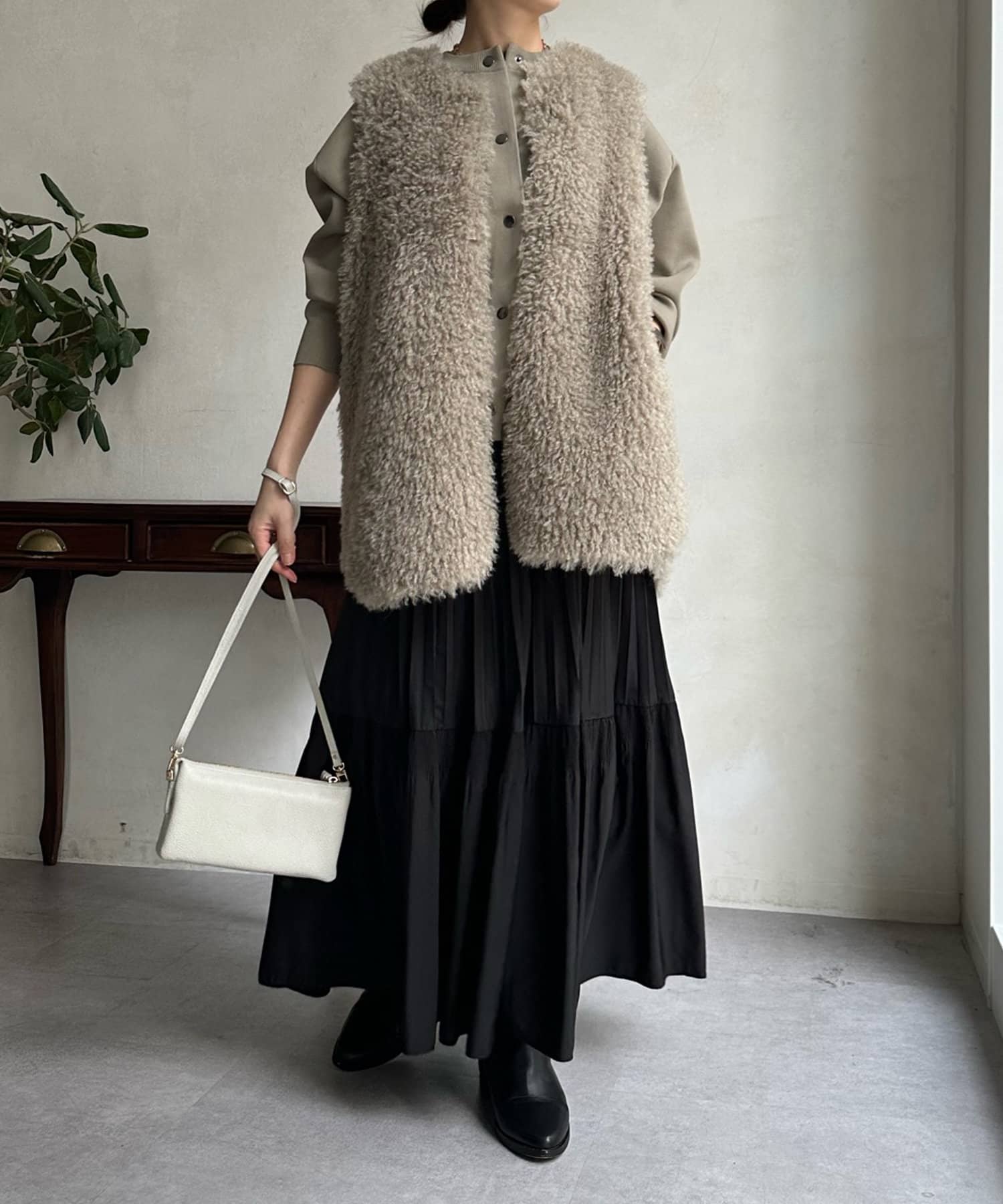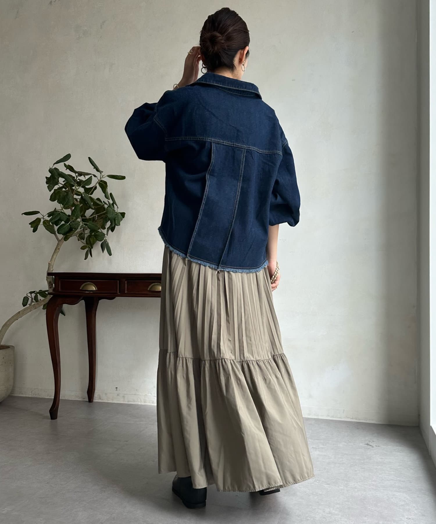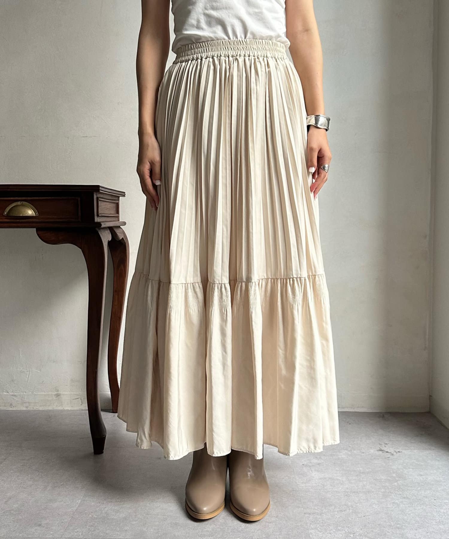 裾に向かって緩やかに広がるシルエットが旬な印象に。