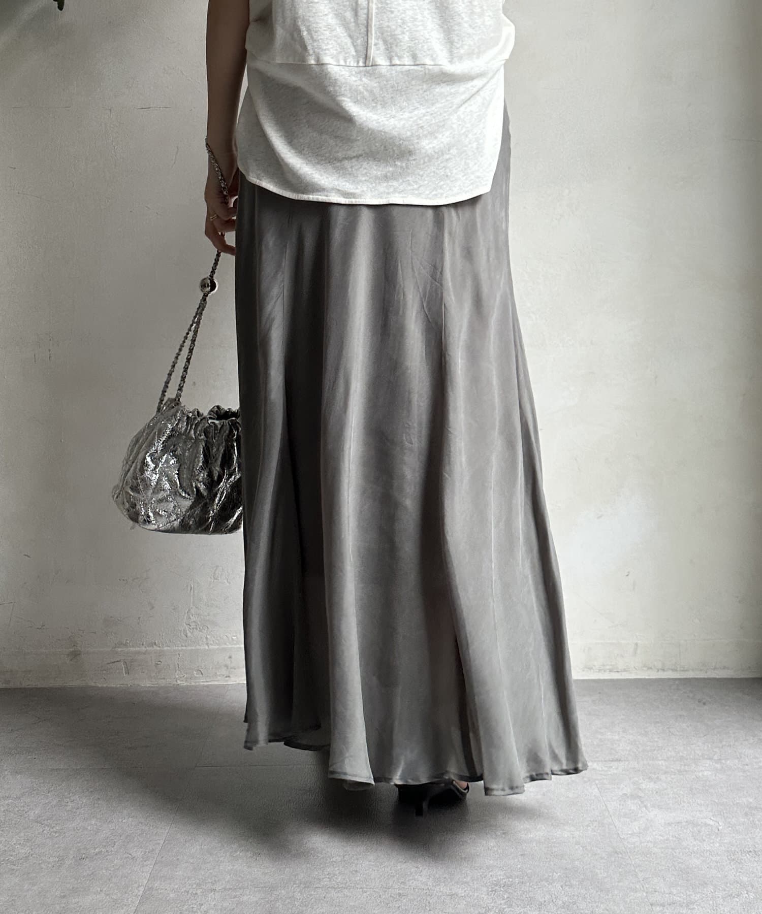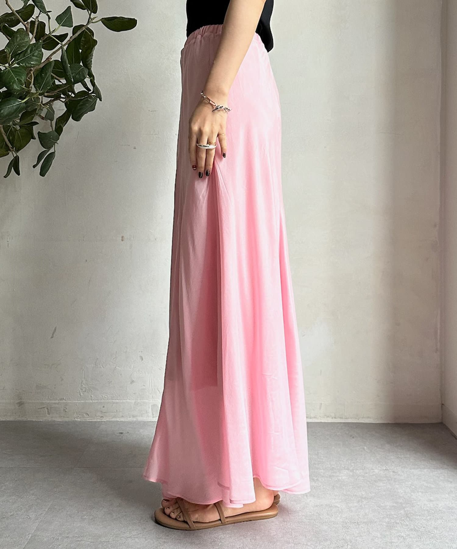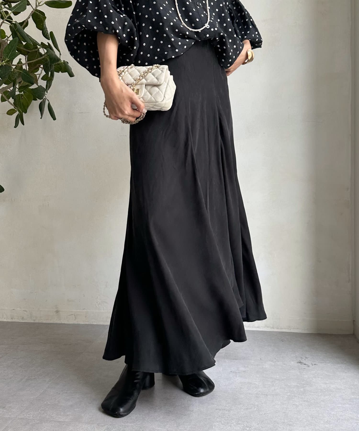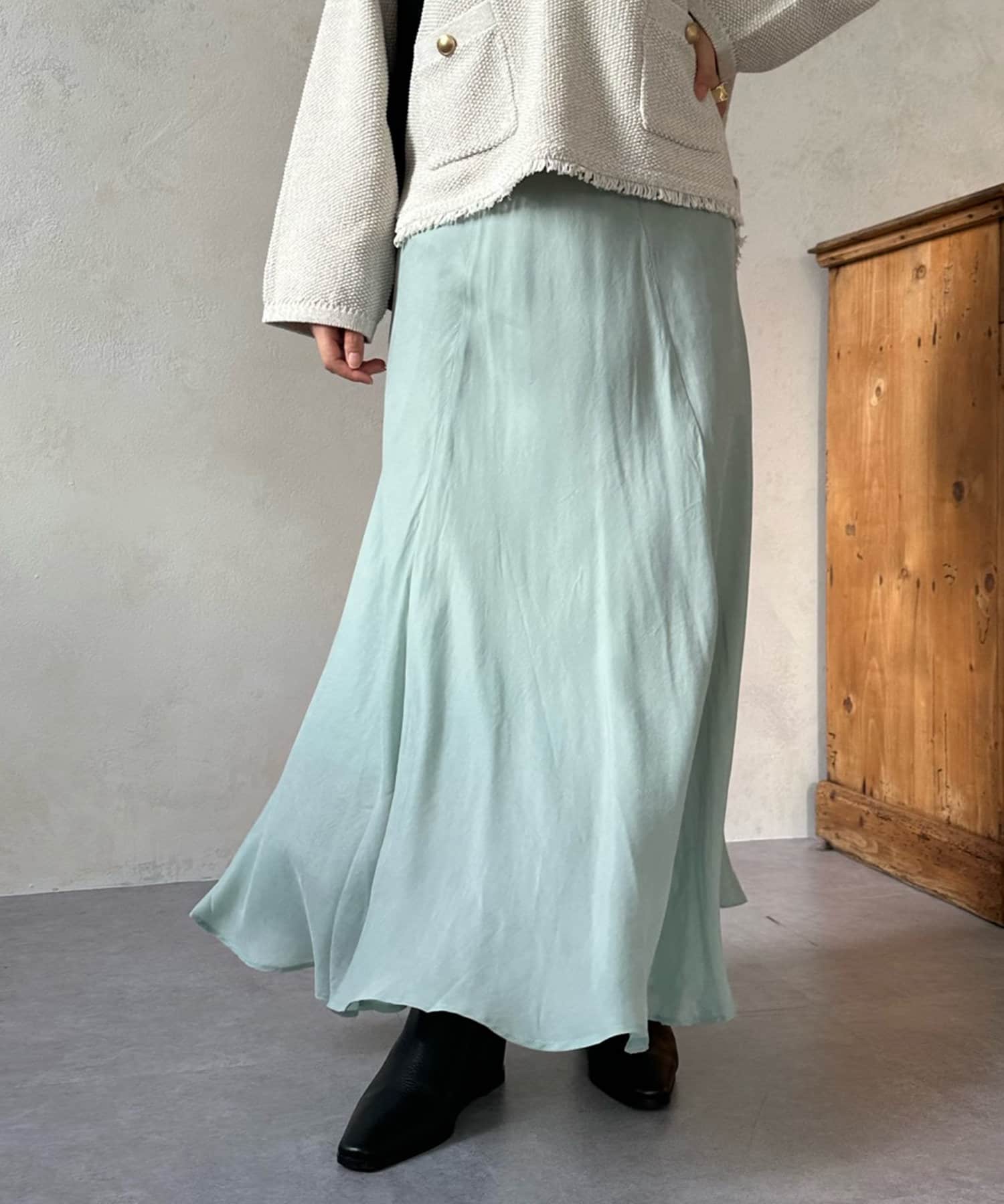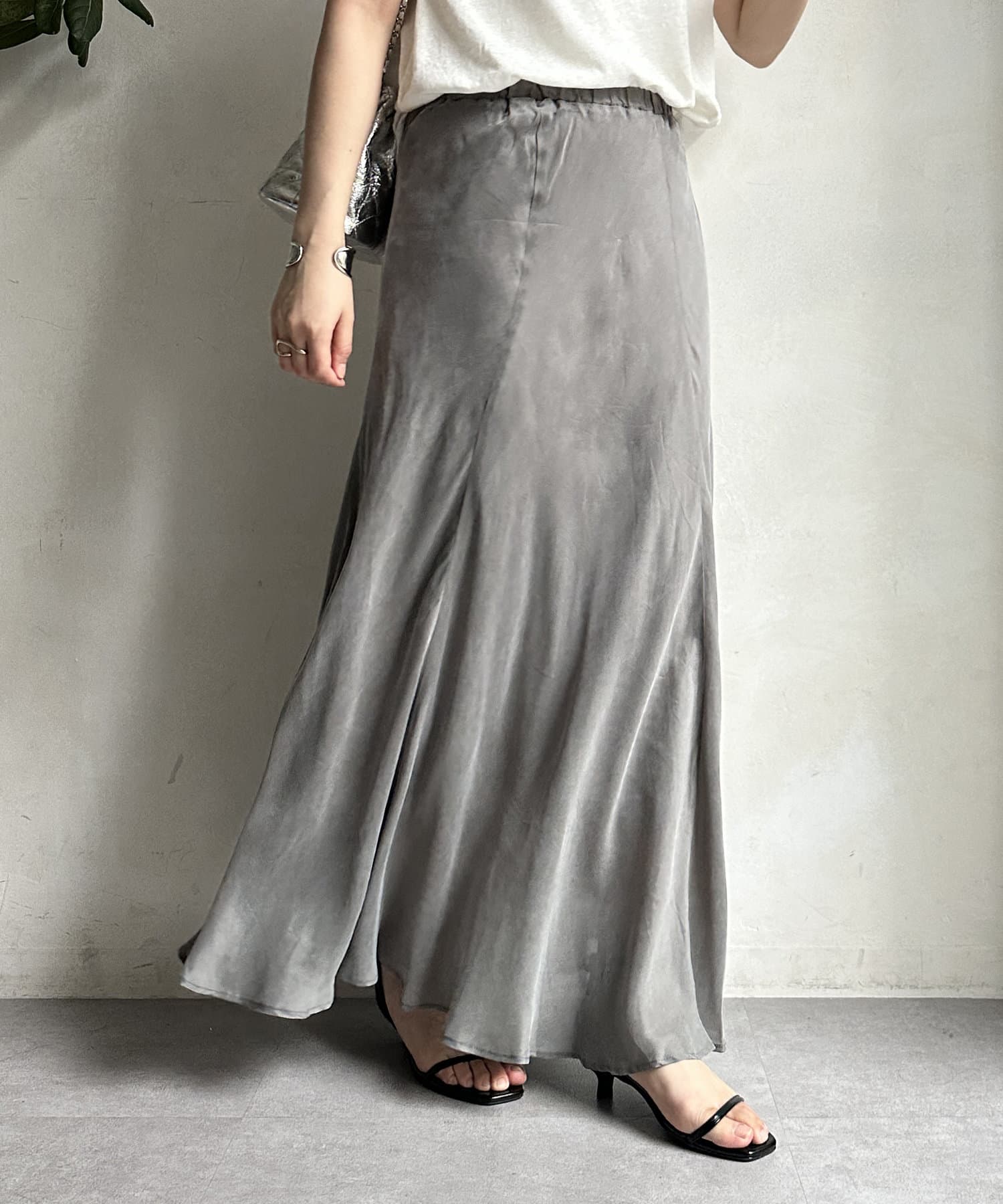 とろみのあるキュプラ100%素材が、きれい見えしてくれるポイントです。また、生地を斜めに裁断するバイヤスカットを採用することで、しなやかな落ち感のシルエットを演出。