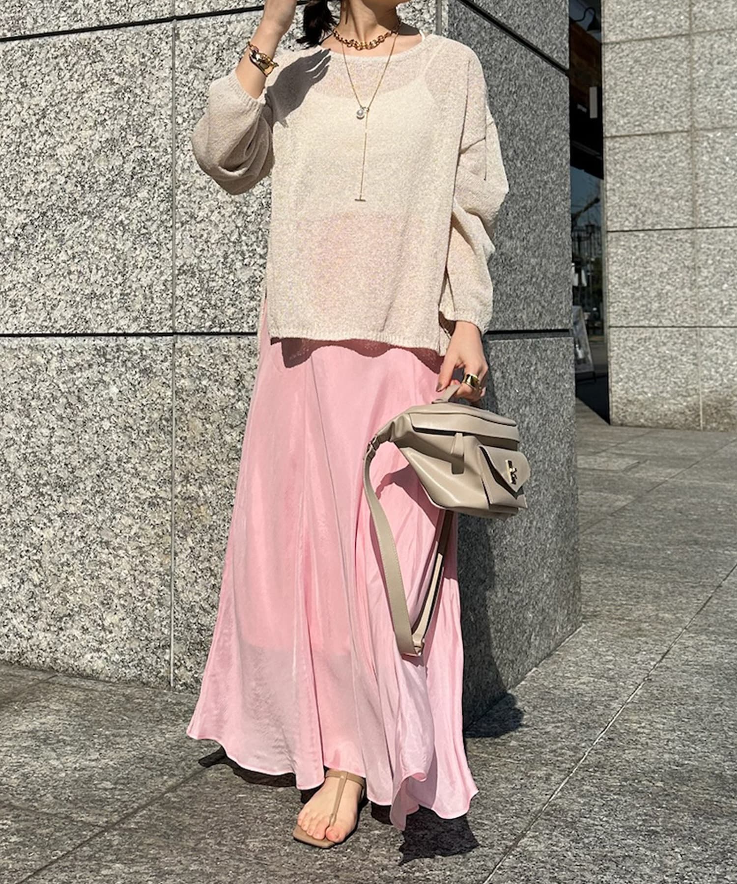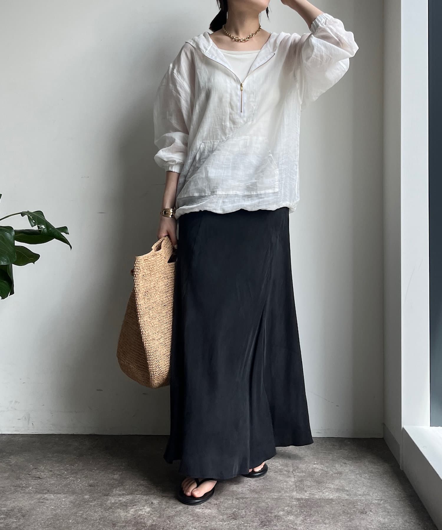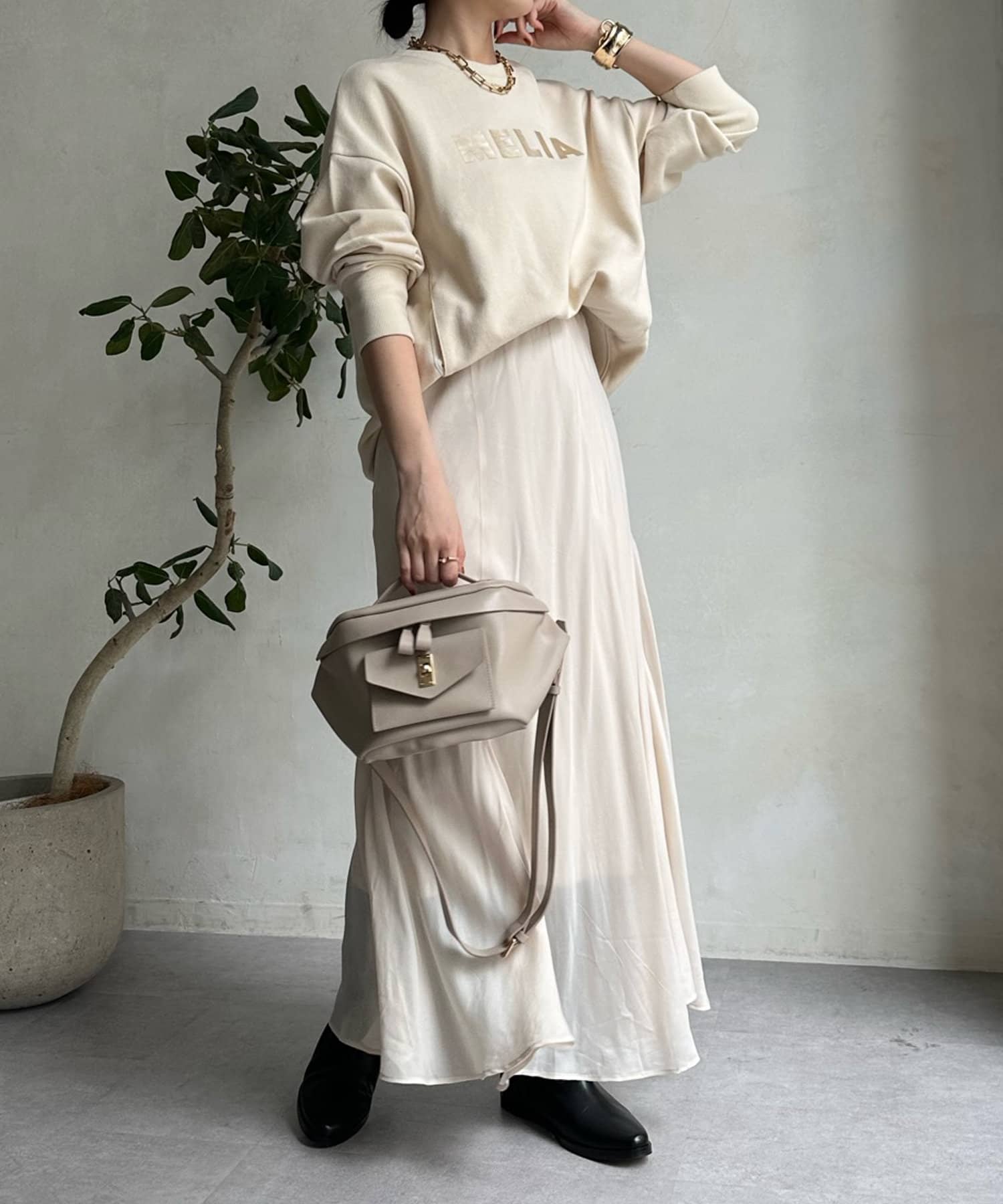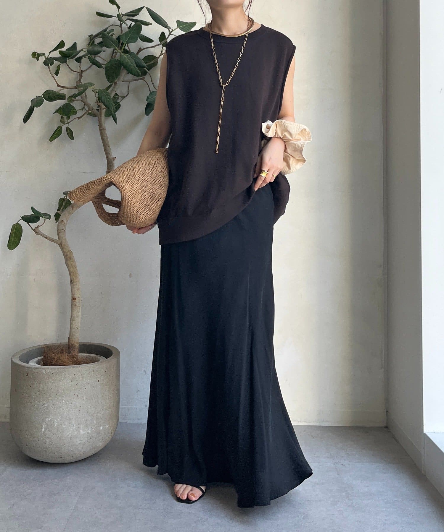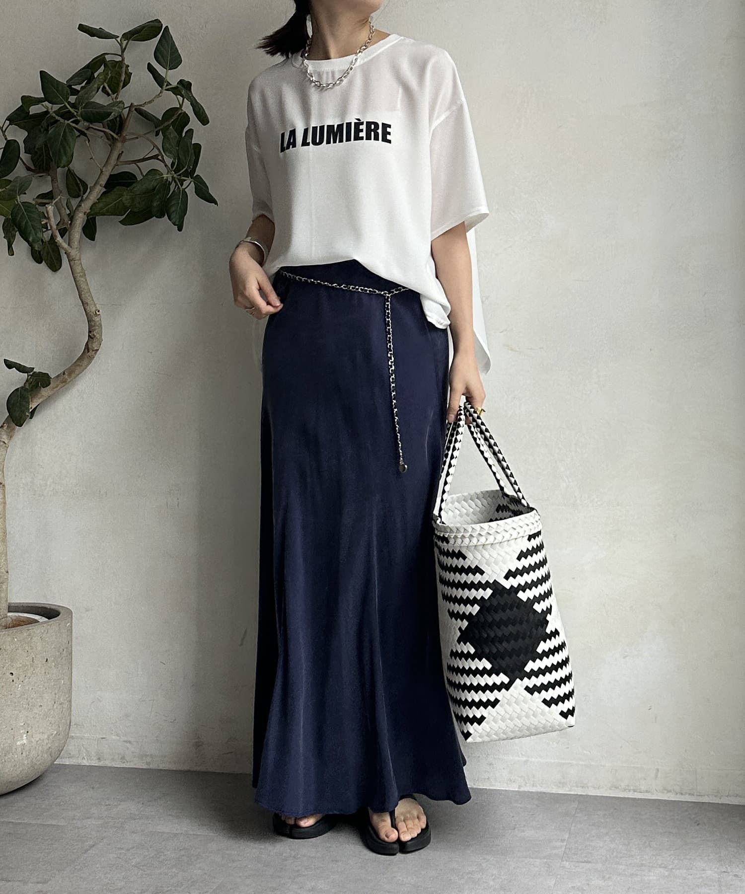 とろみのあるキュプラ100%素材が、きれい見えしてくれるポイントです。また、生地を斜めに裁断するバイヤスカットを採用することで、しなやかな落ち感のシルエットを演出。