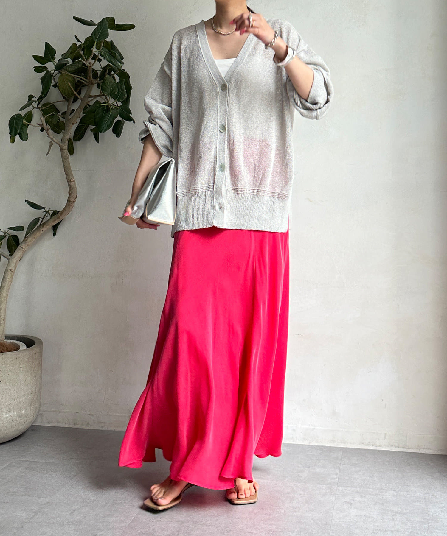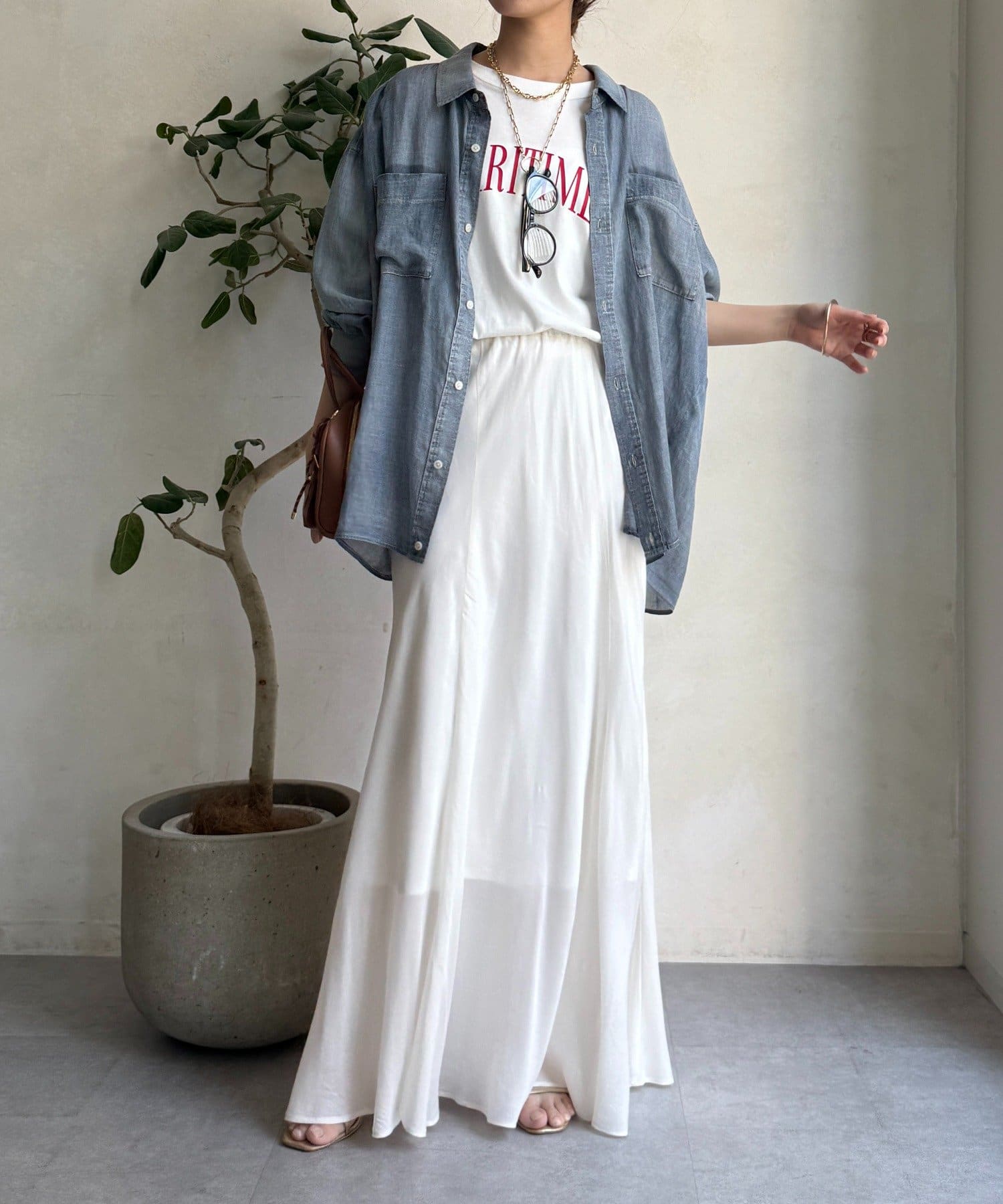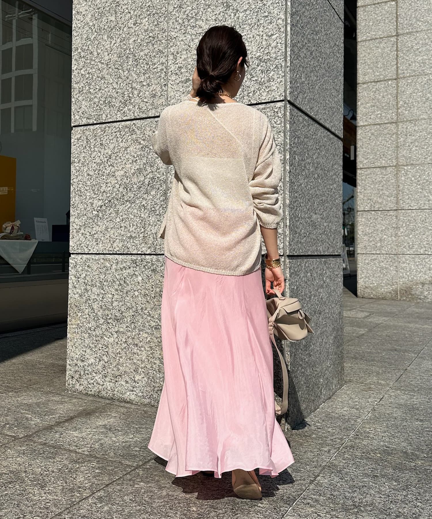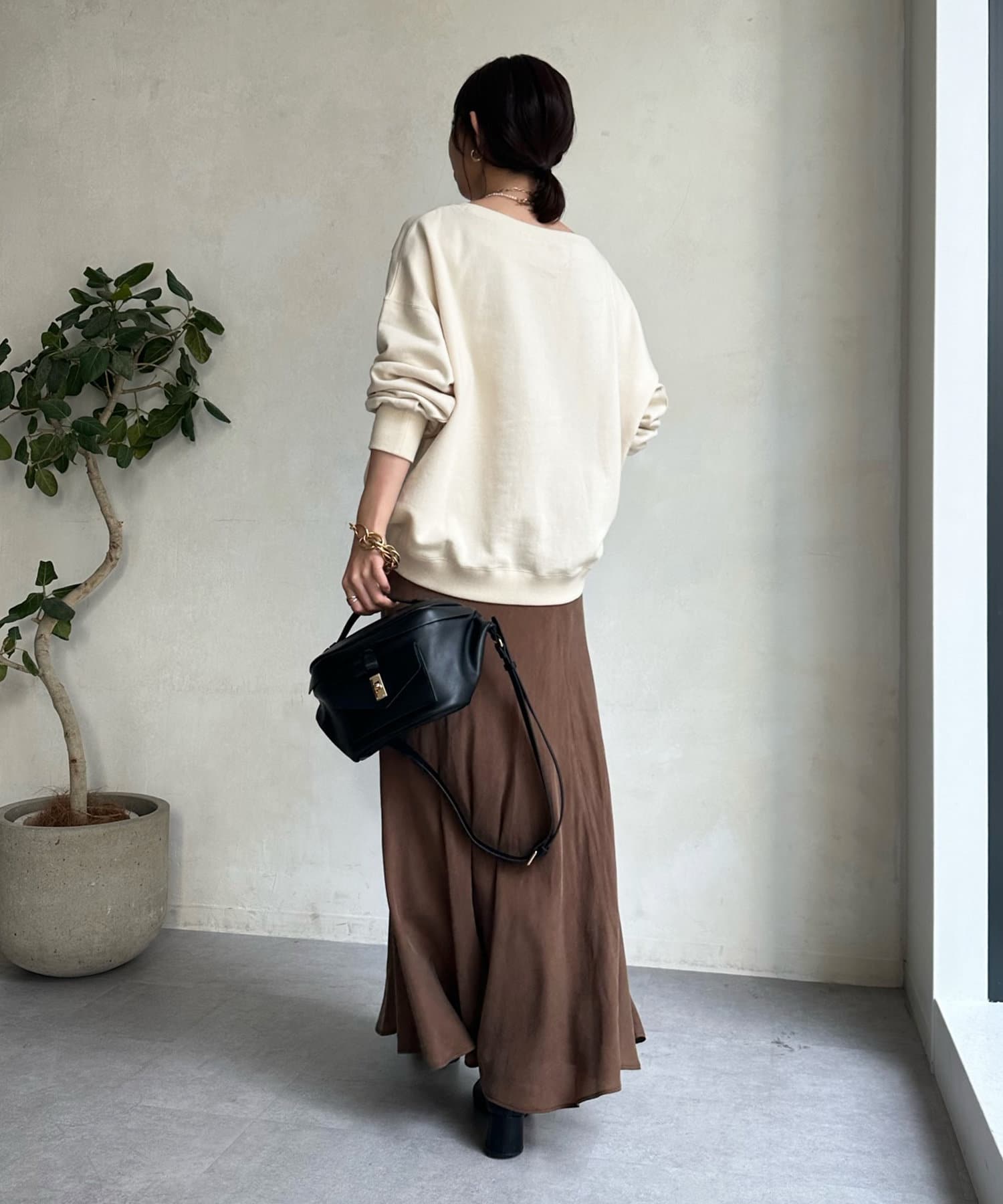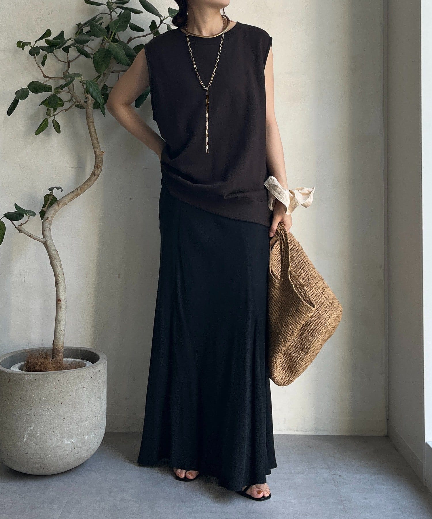 とろみのあるキュプラ100%素材が、きれい見えしてくれるポイントです。また、生地を斜めに裁断するバイヤスカットを採用することで、しなやかな落ち感のシルエットを演出。