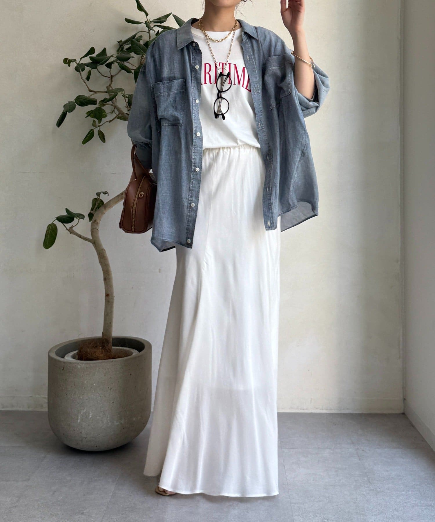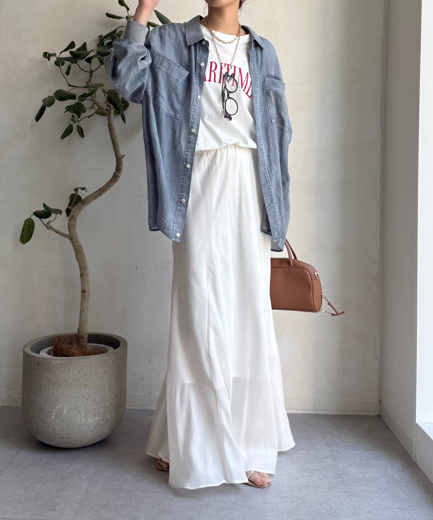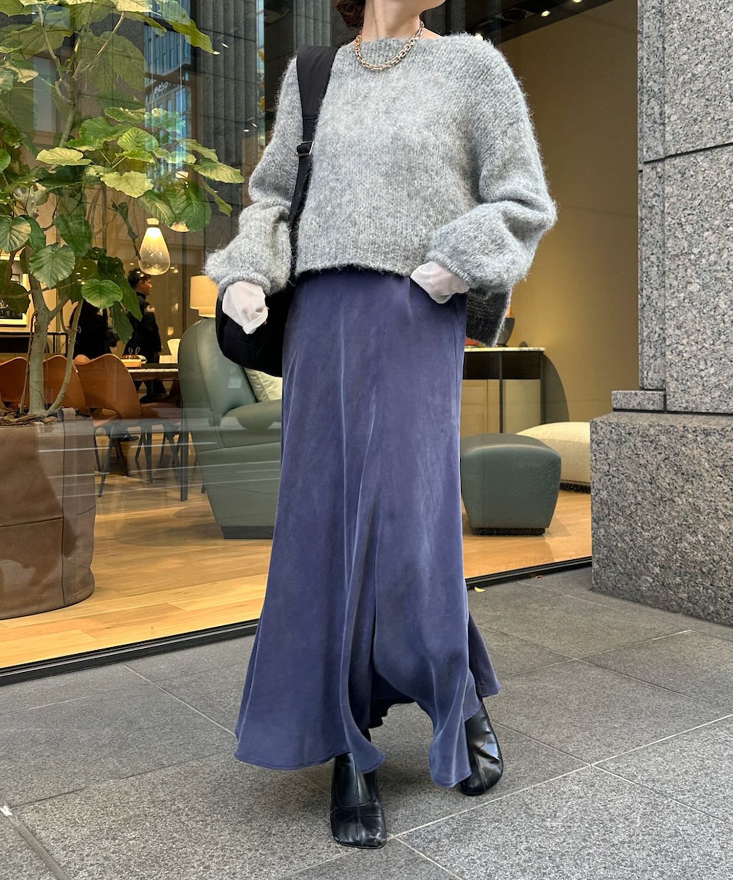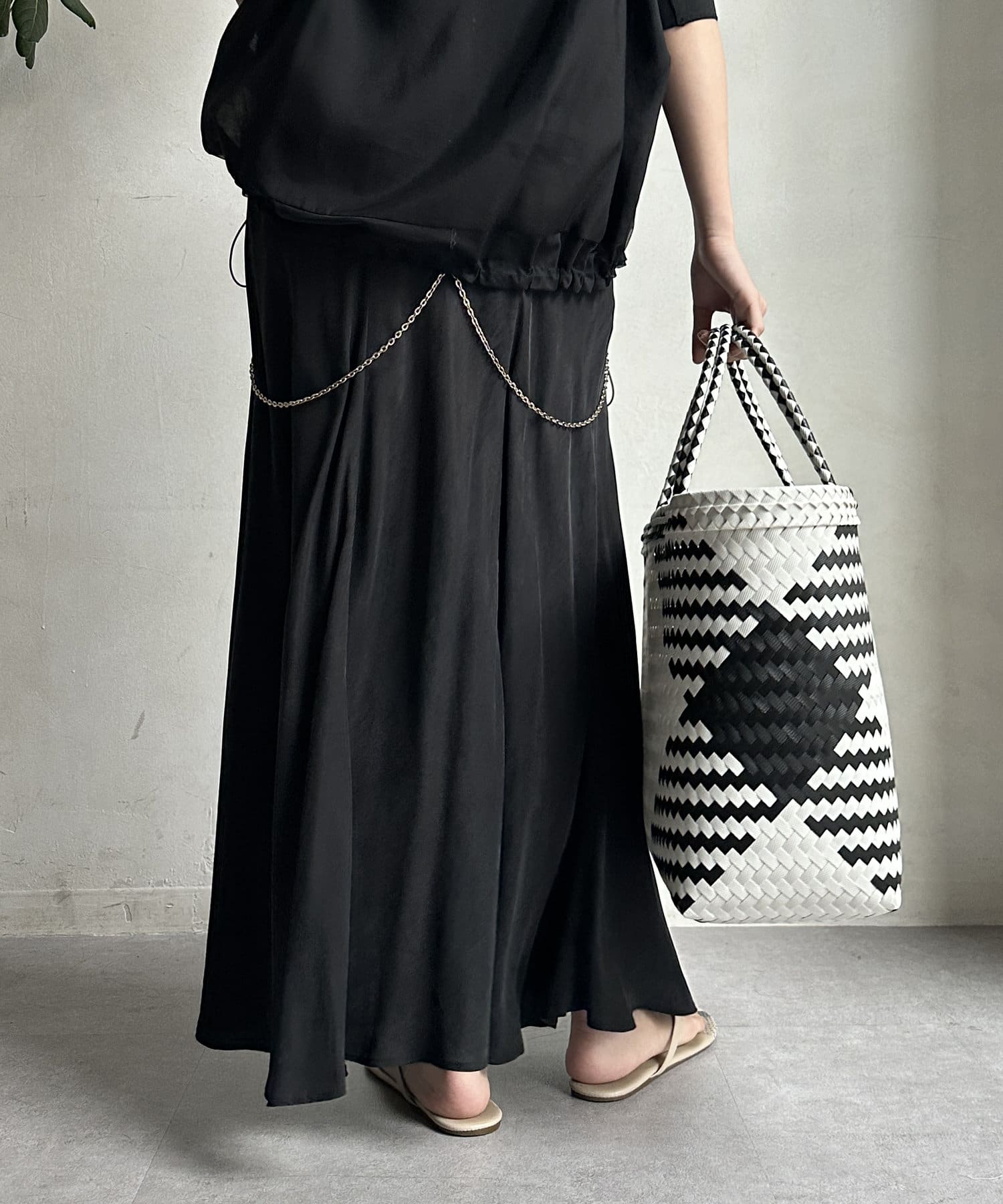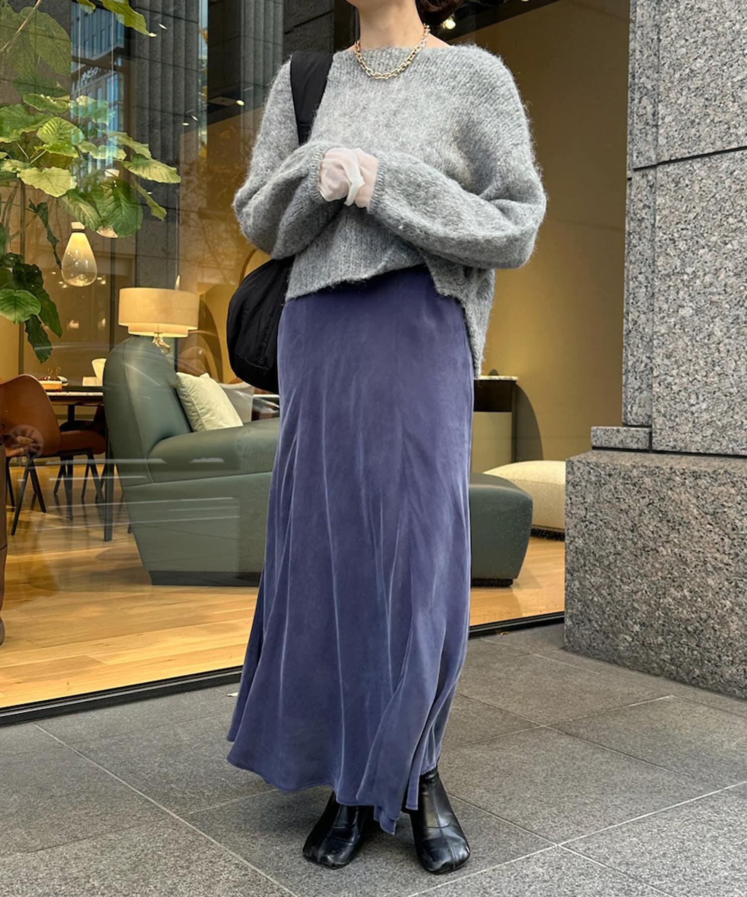 とろみのあるキュプラ100%素材が、きれい見えしてくれるポイントです。また、生地を斜めに裁断するバイヤスカットを採用することで、しなやかな落ち感のシルエットを演出。