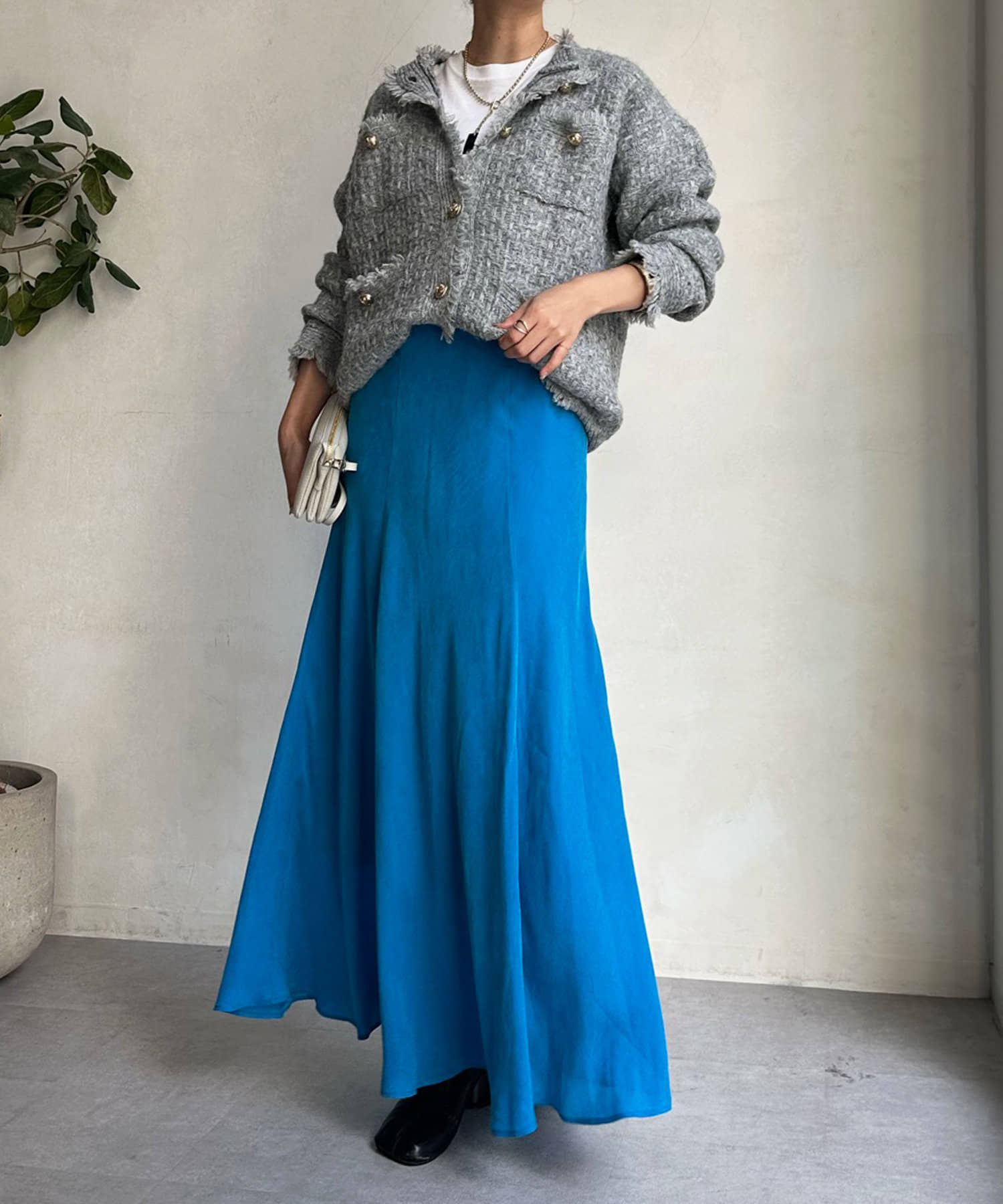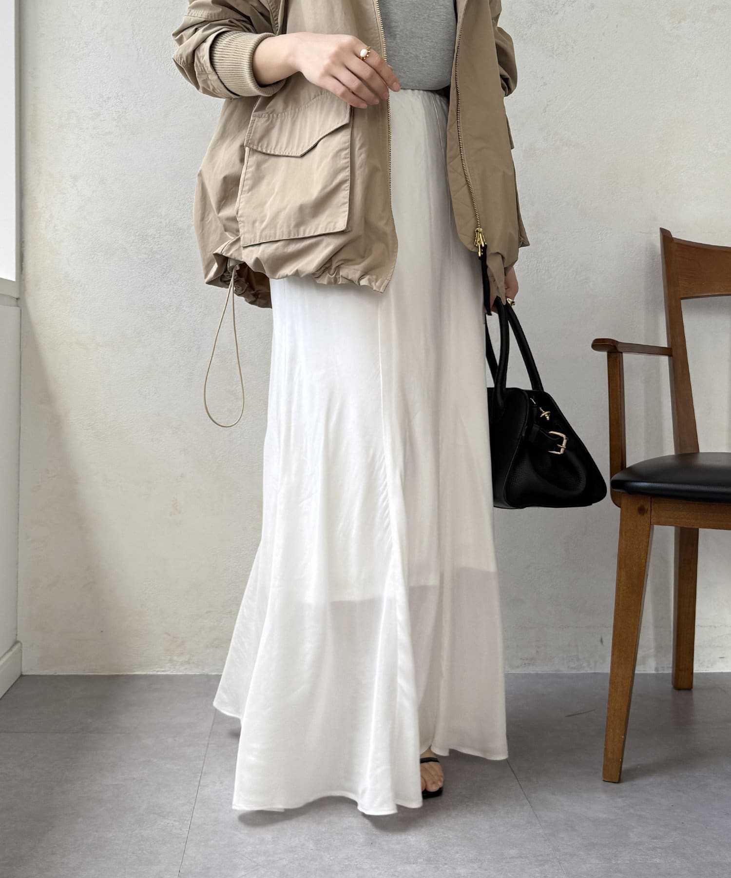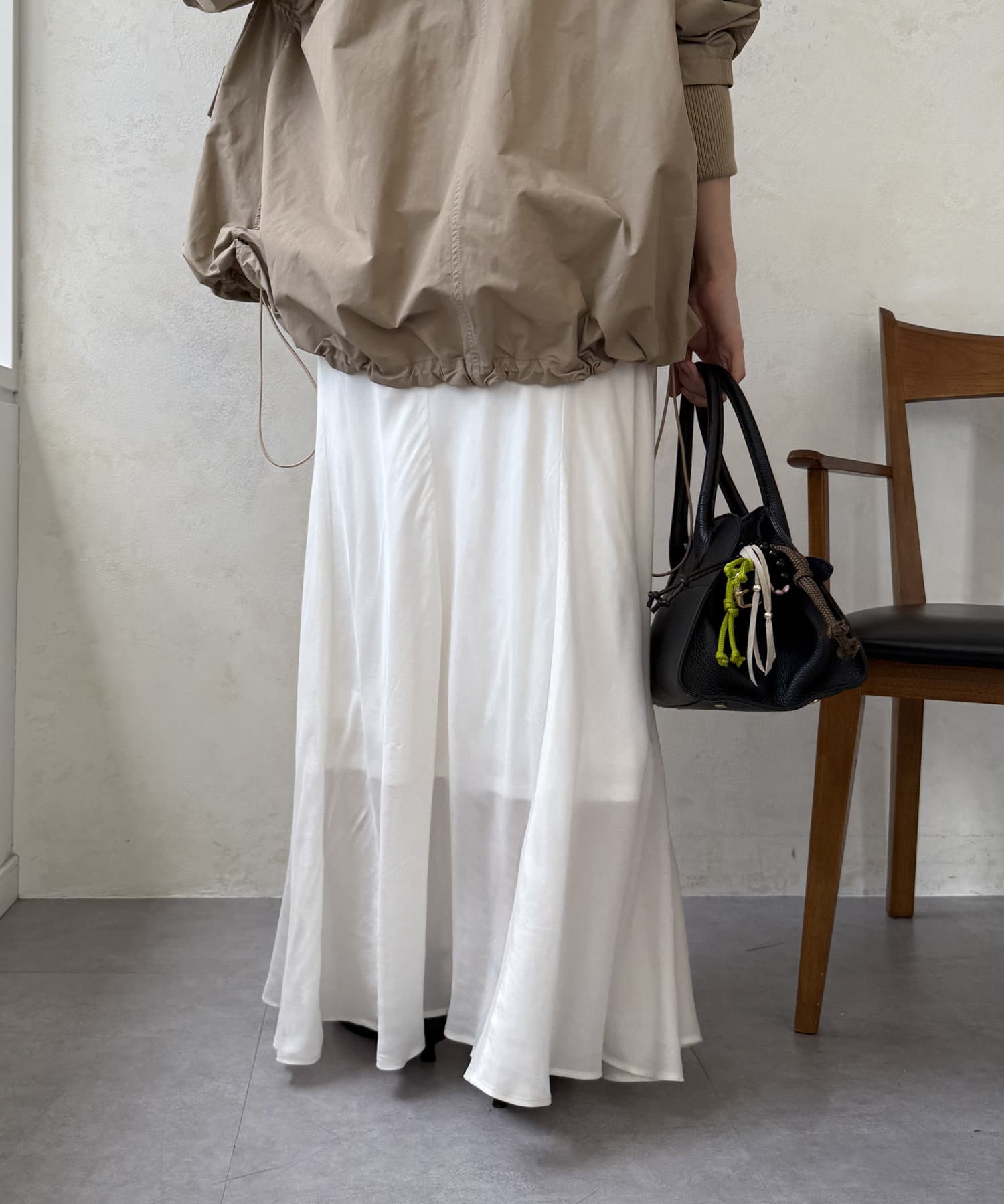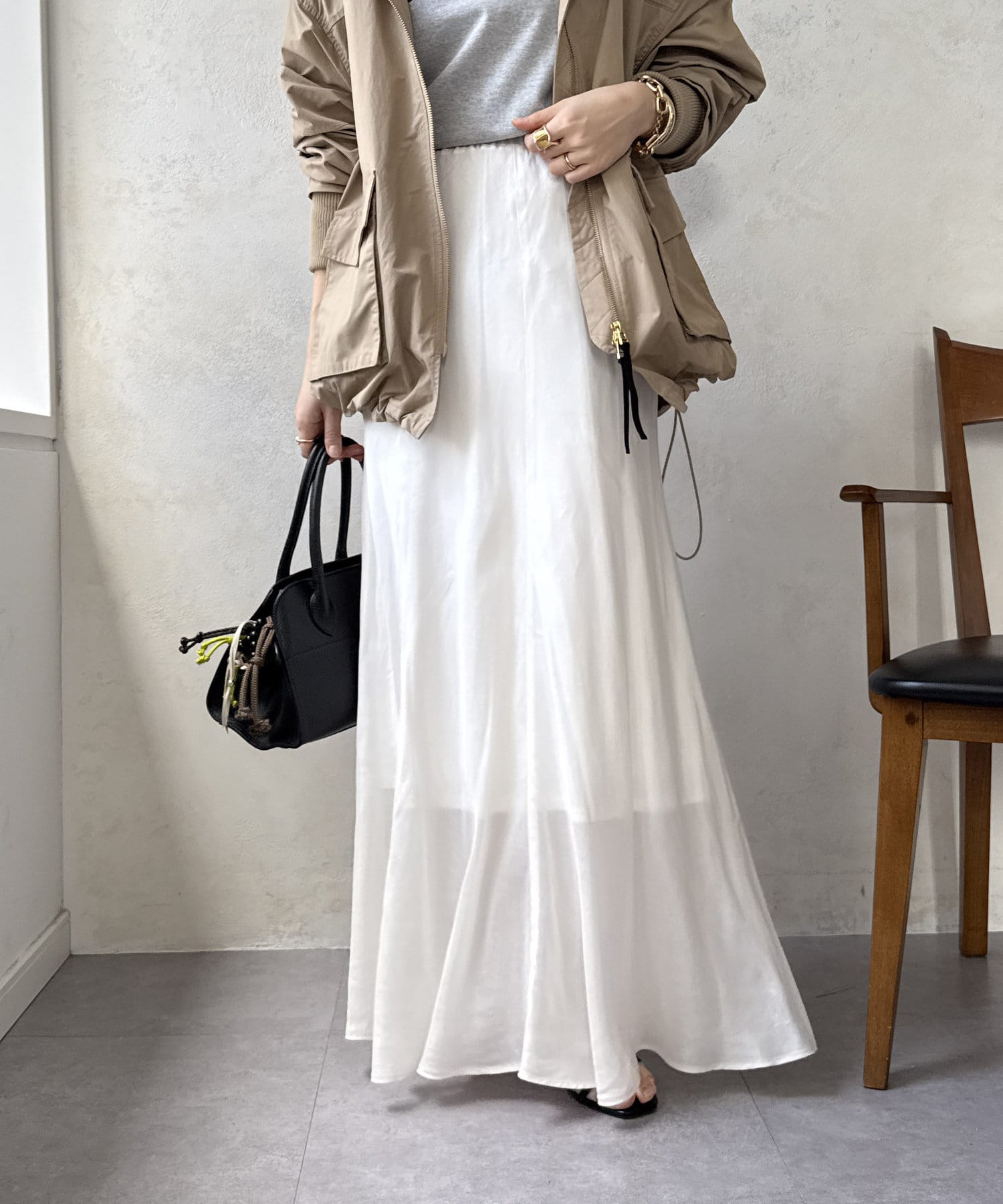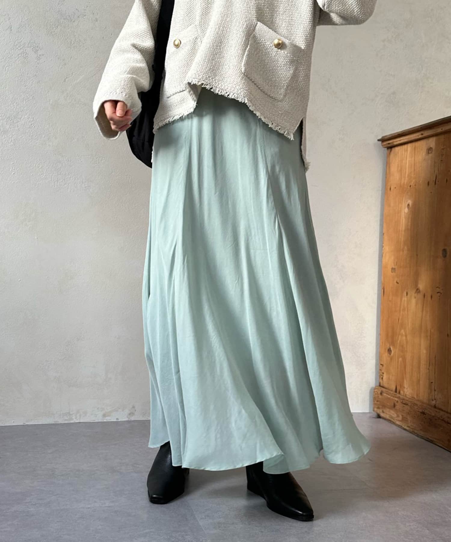 スタイリングを洗練された雰囲気に仕上げてくれるフレアスカート。