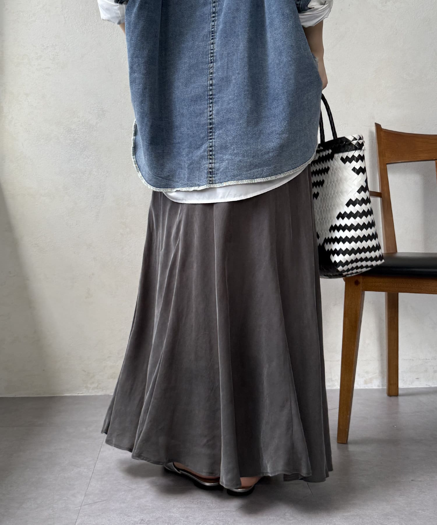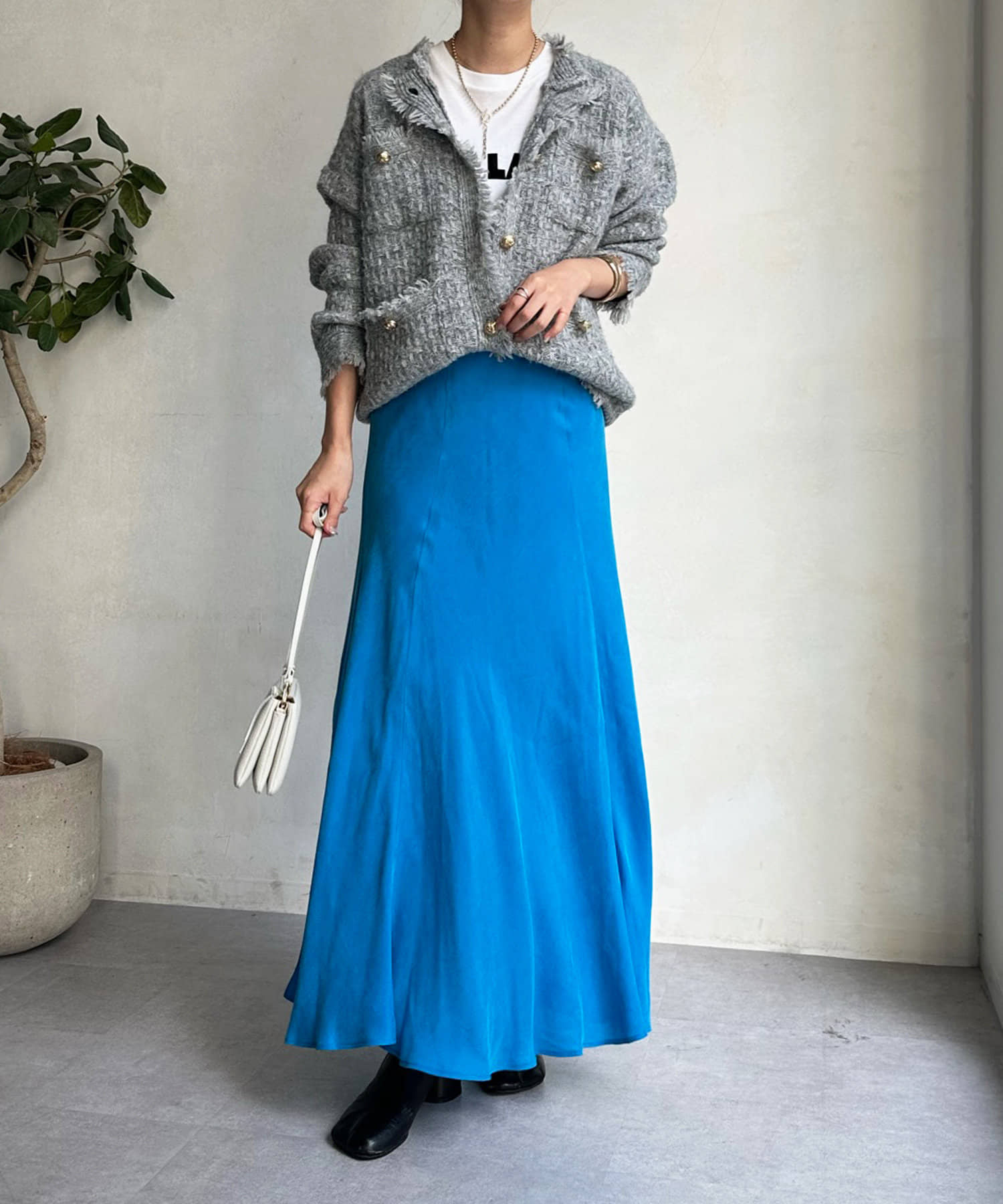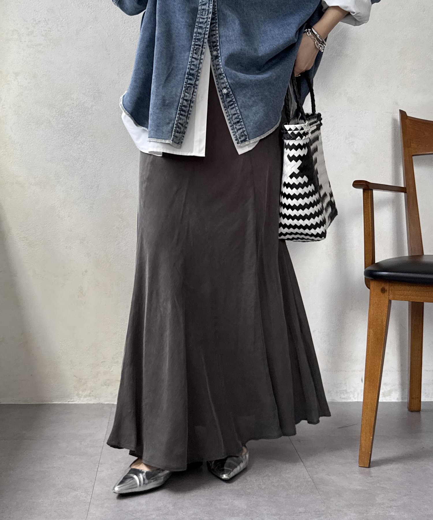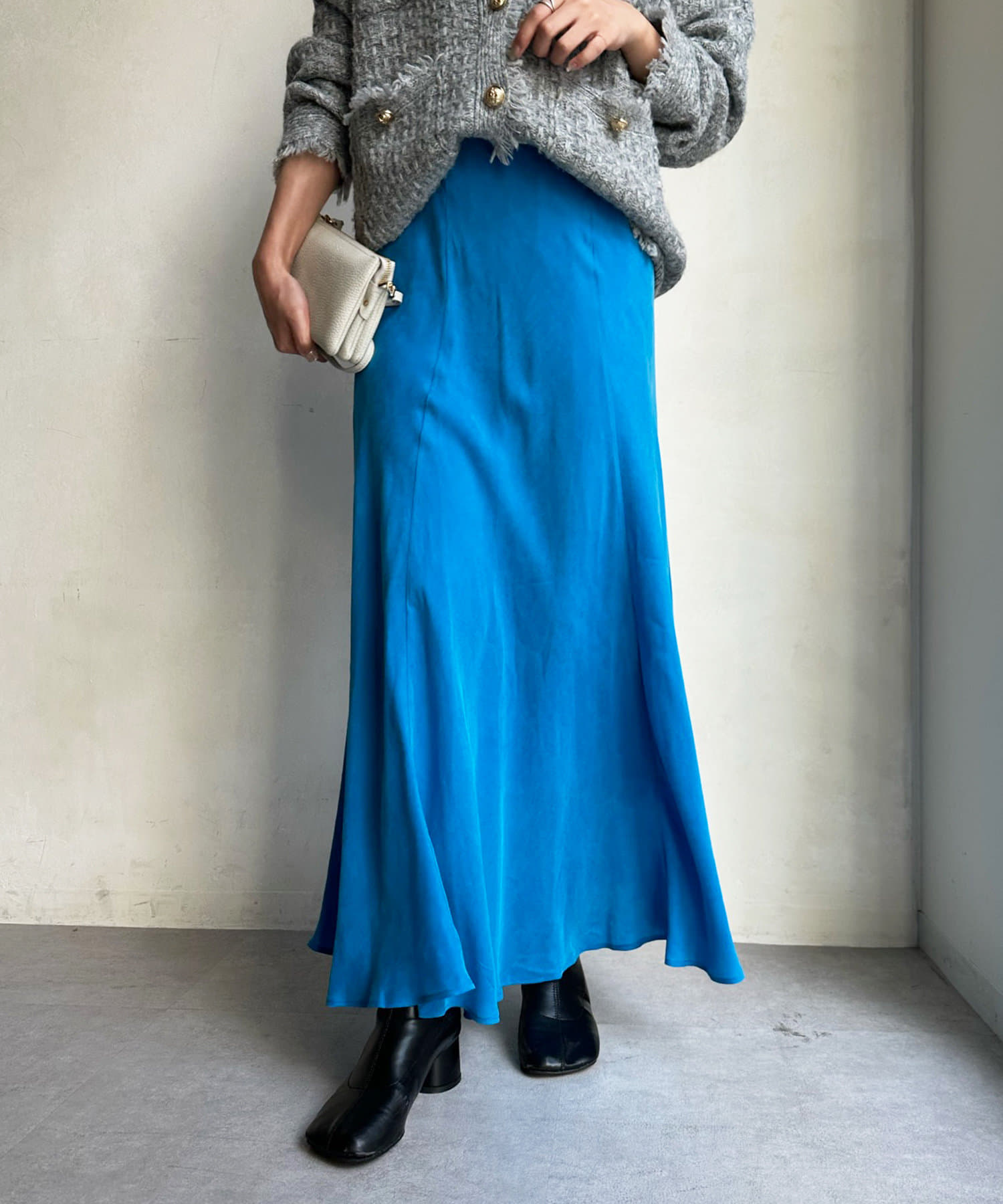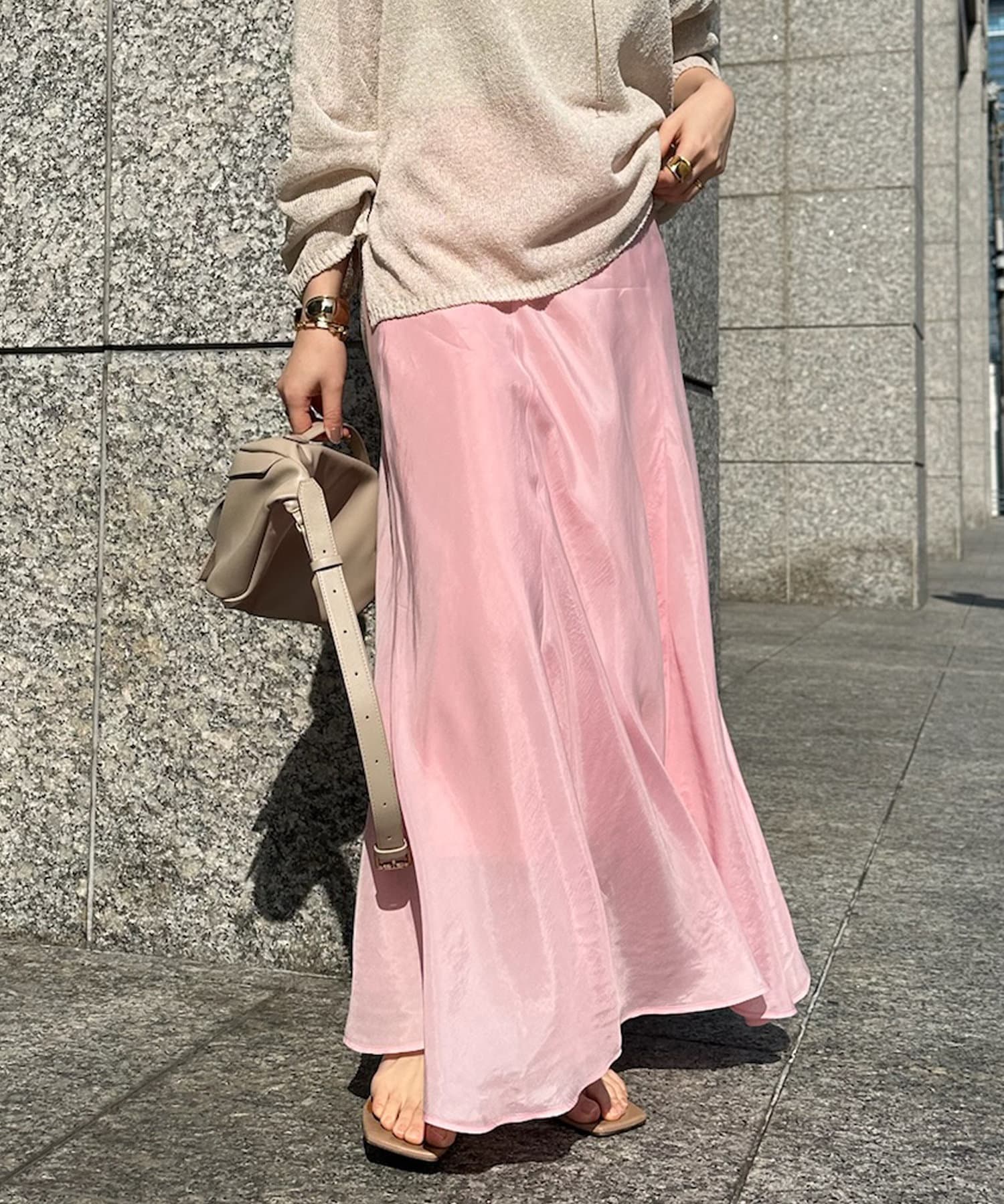 スタイリングを洗練された雰囲気に仕上げてくれるフレアスカート。
