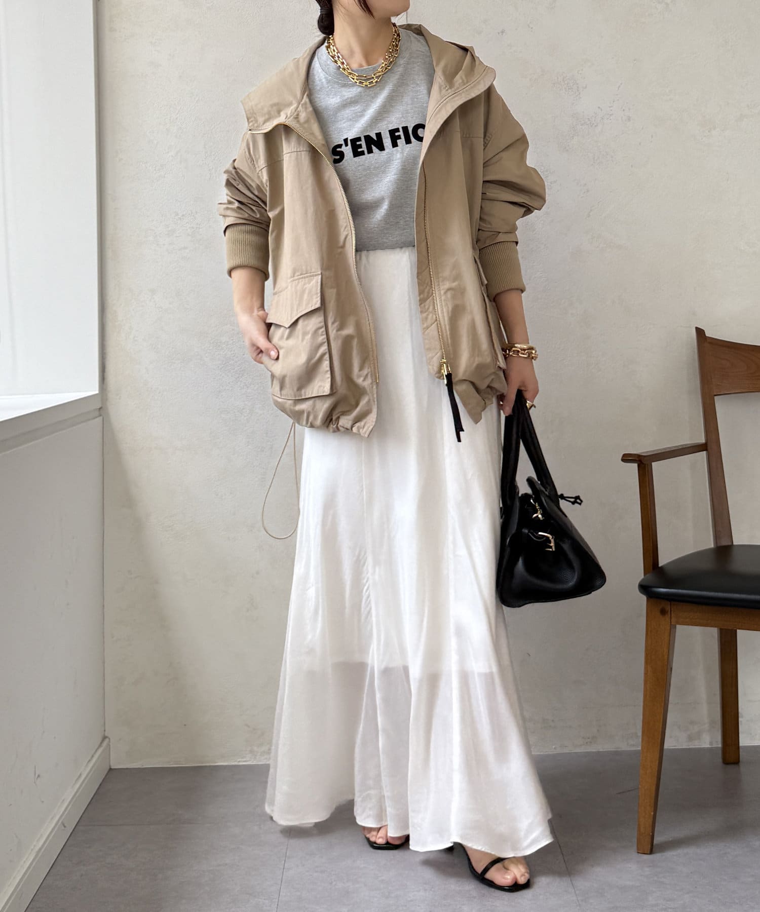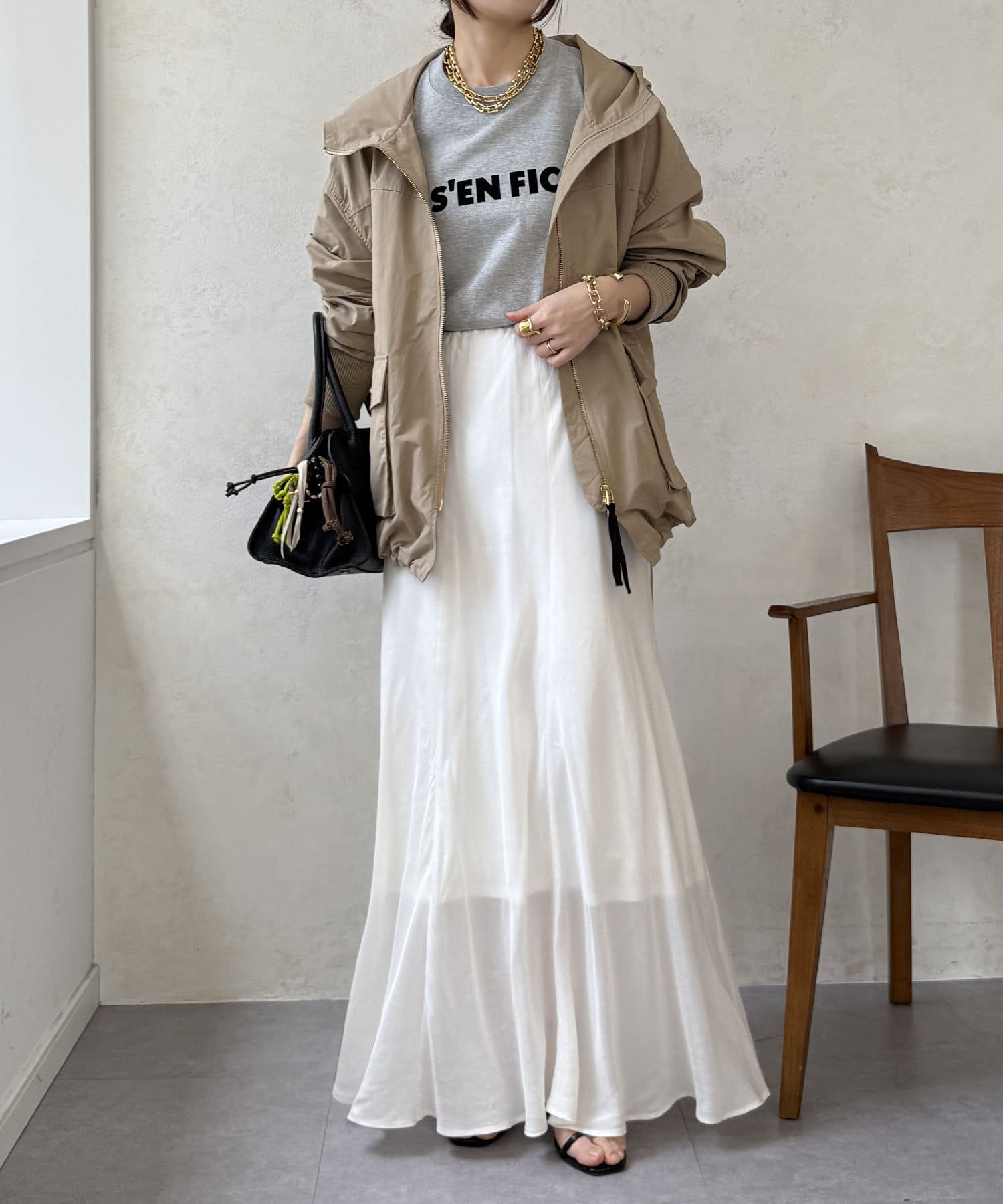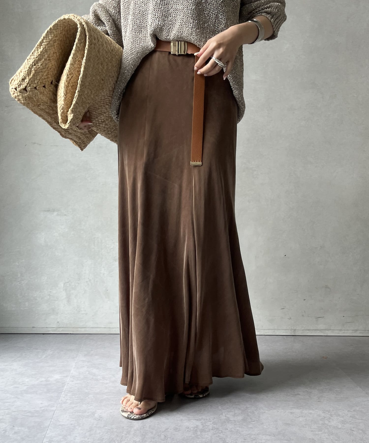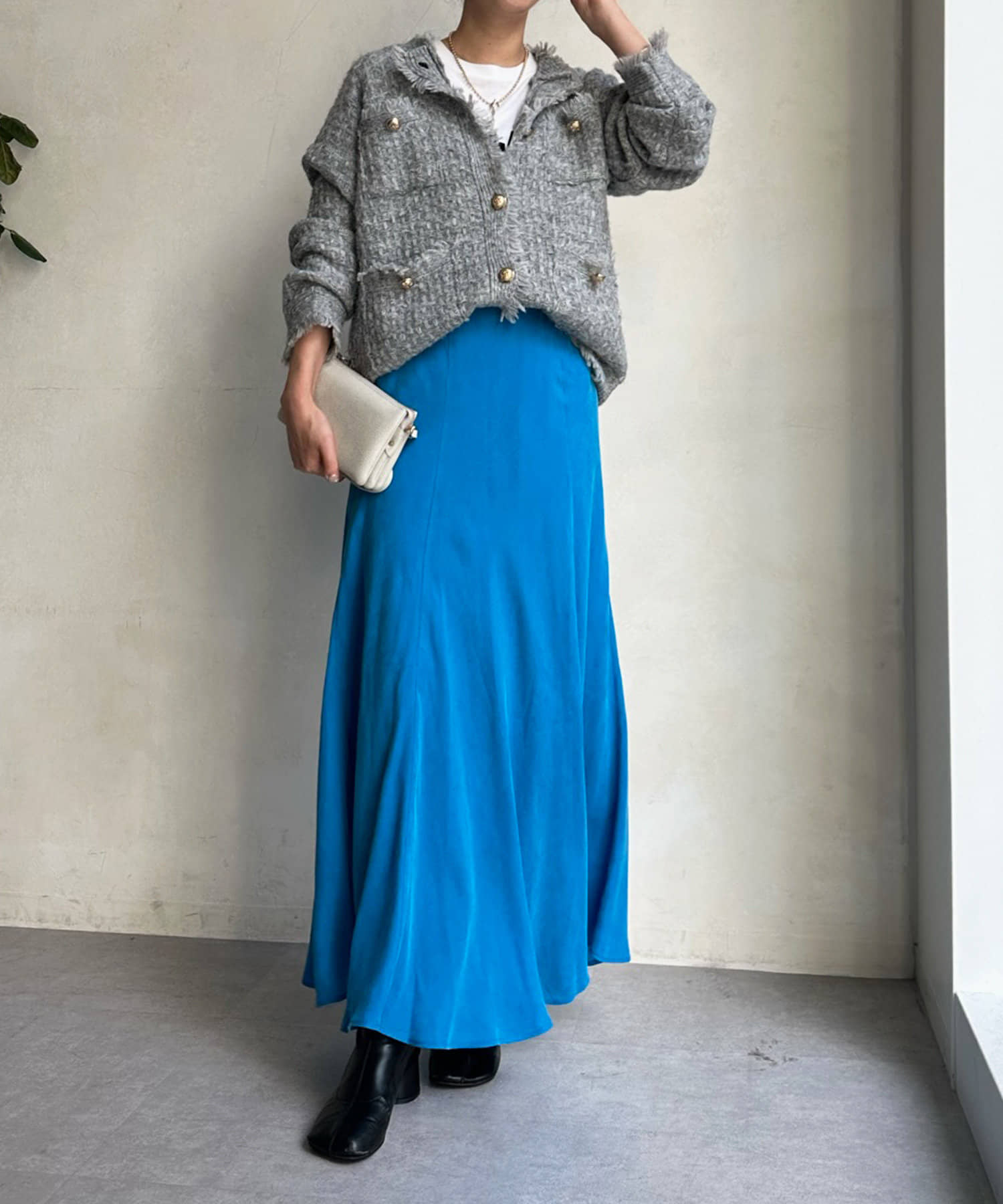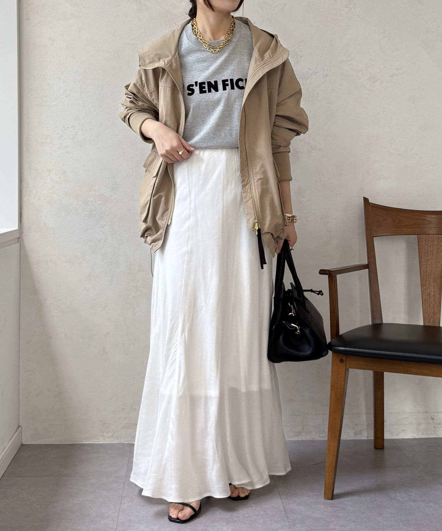 スタイリングを洗練された雰囲気に仕上げてくれるフレアスカート。