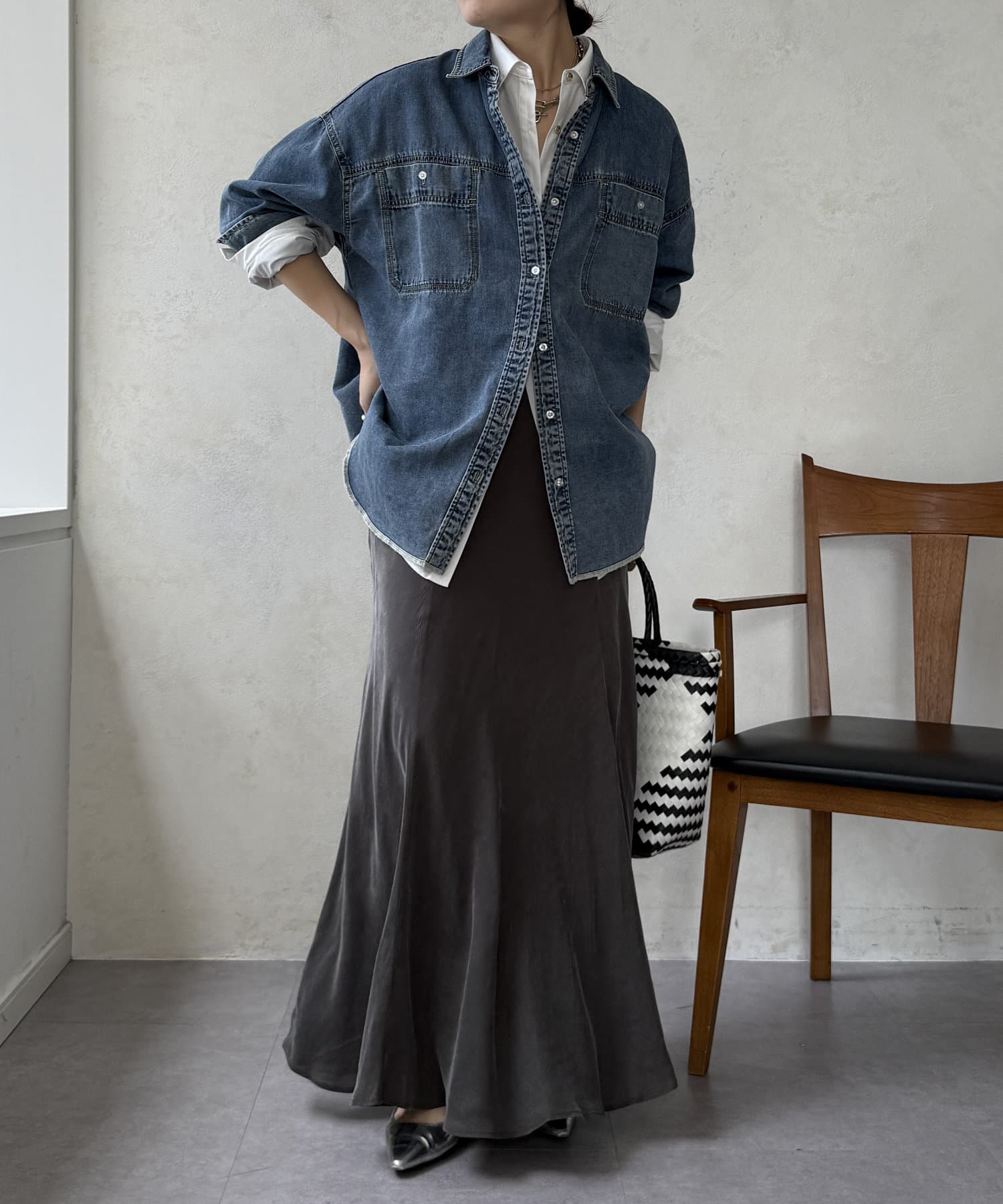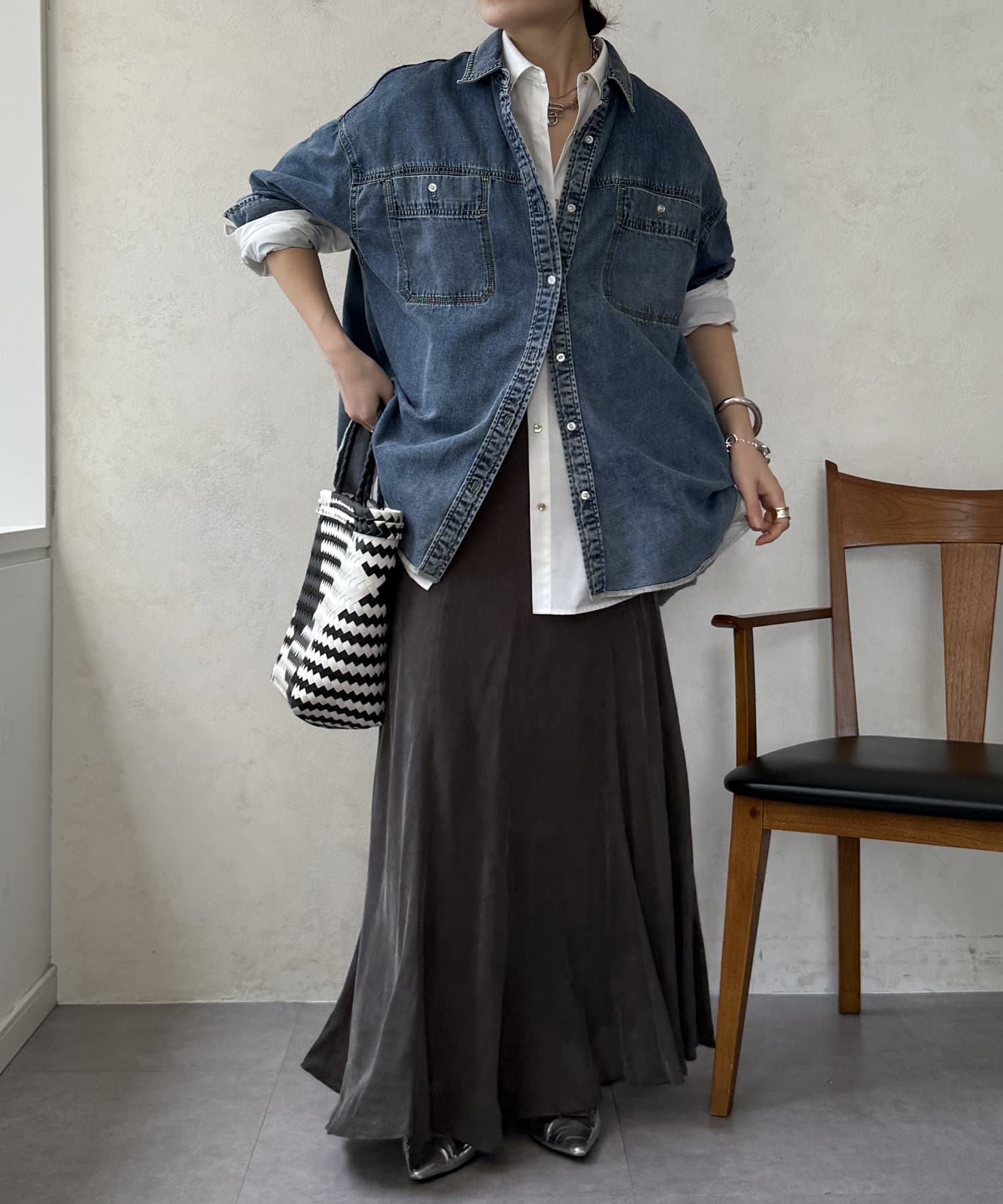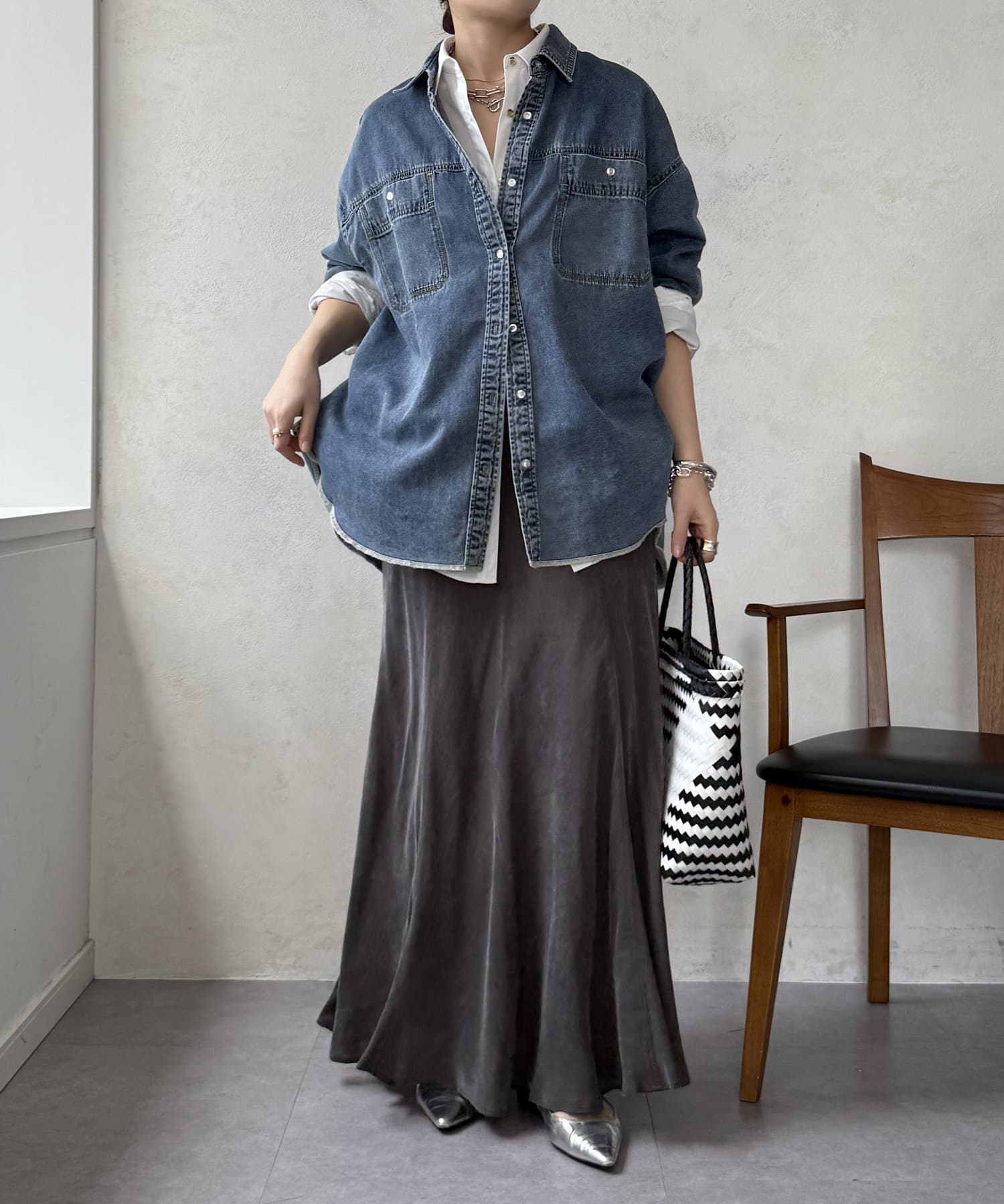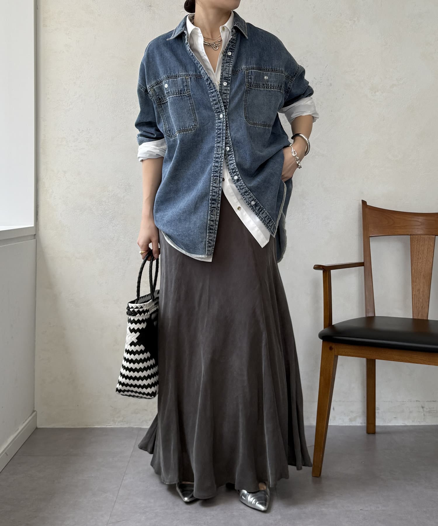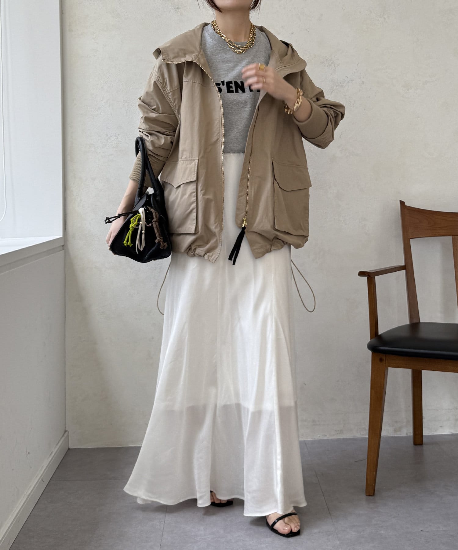 スタイリングを洗練された雰囲気に仕上げてくれるフレアスカート。