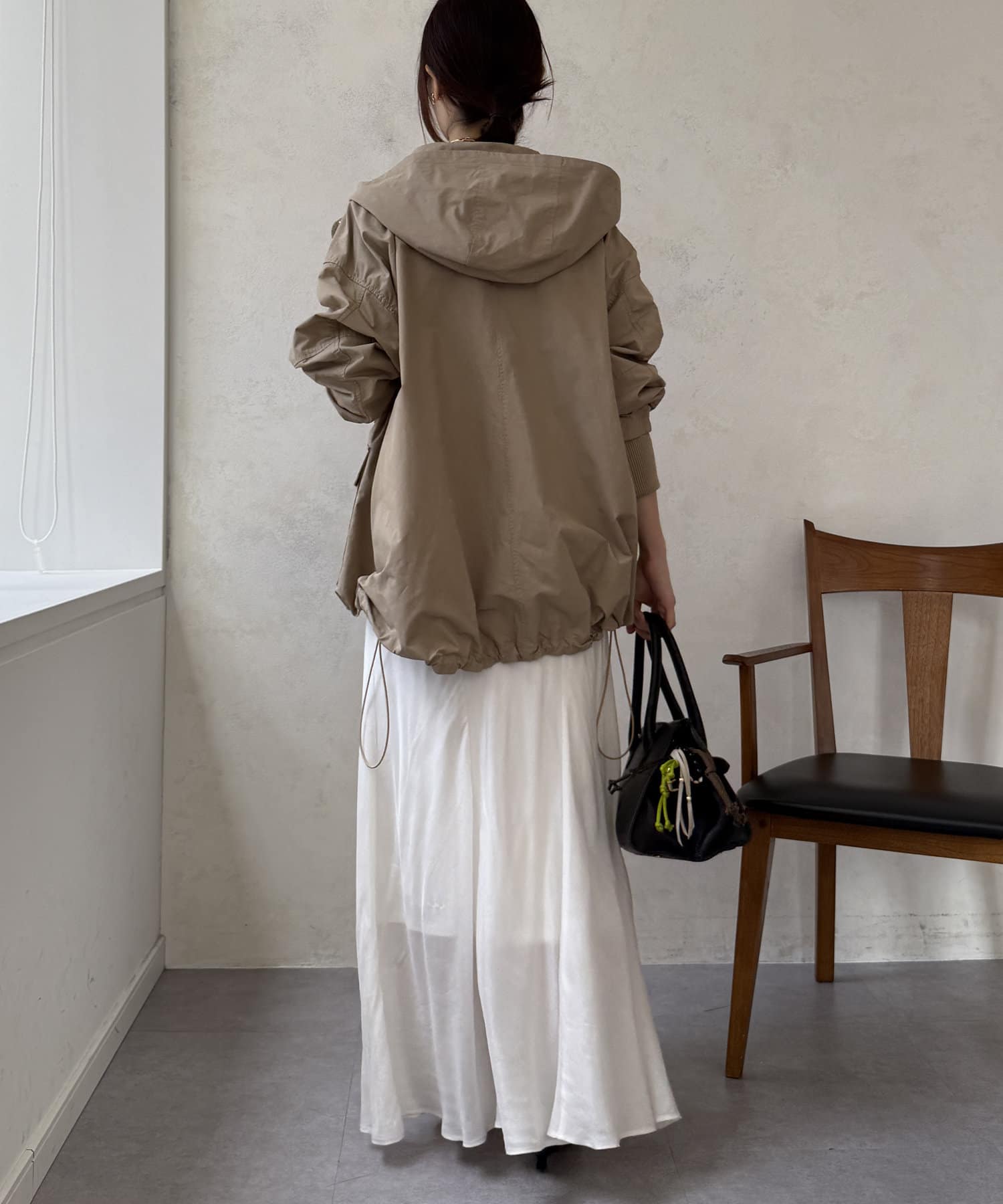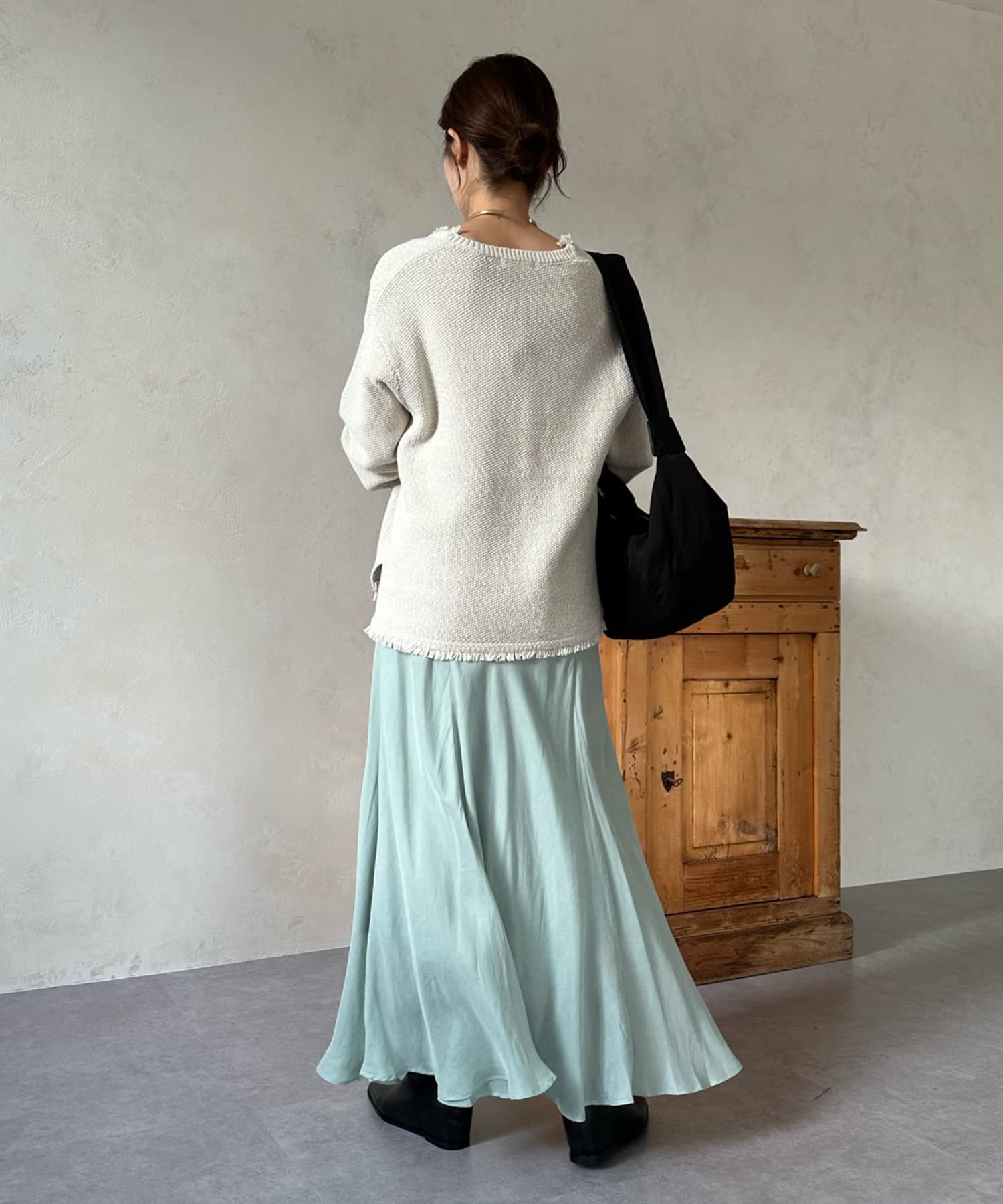 緩やかに広がるフレアが身体のラインを拾わずに綺麗に魅せてくれます。