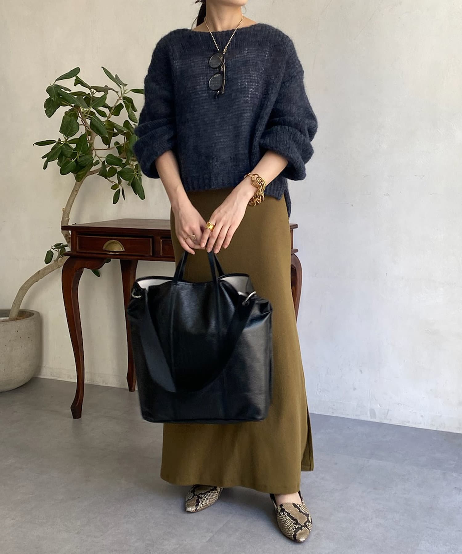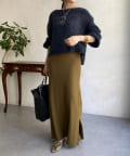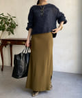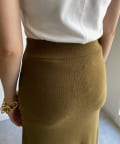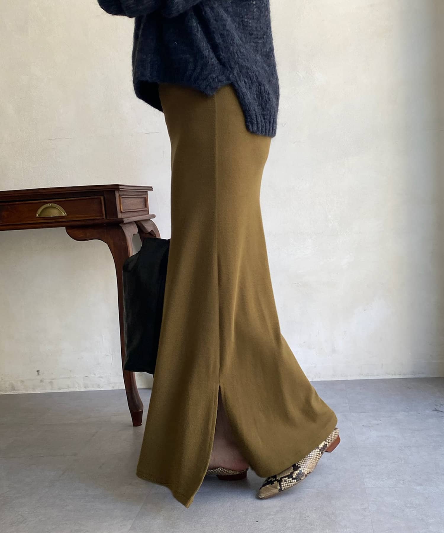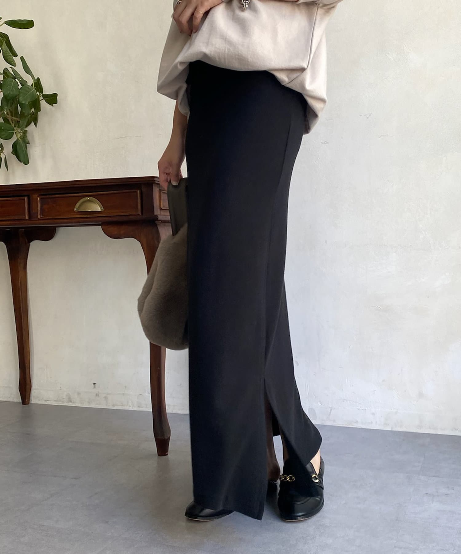 タイトなシルエットにスリットから見える脚がより女性らしくフェミニンな印象に