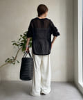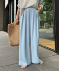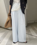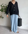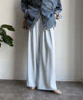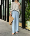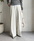 ゆったりと脚のラインを拾わず、ウエストはバックゴム仕様で履き心地はイージー。