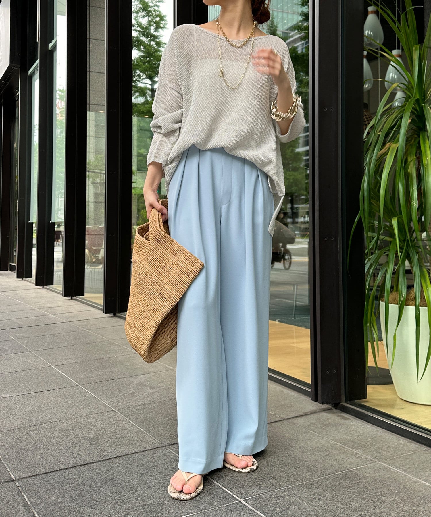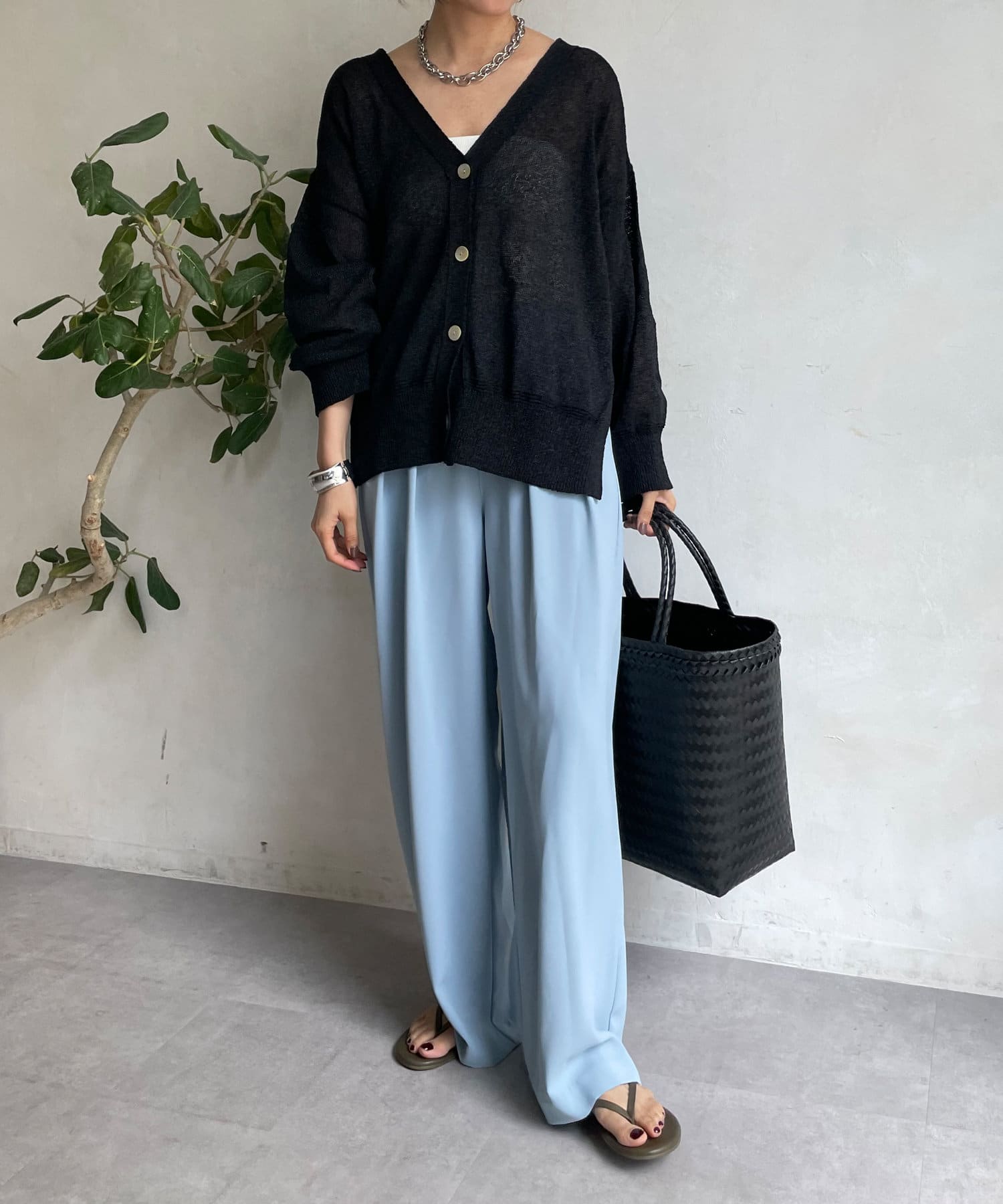 夏はワイドな服きて汗かくのましにしてます。