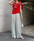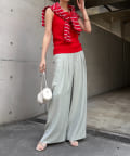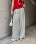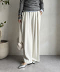 ゆったりと脚のラインを拾わず、ウエストはバックゴム仕様で履き心地はイージー。