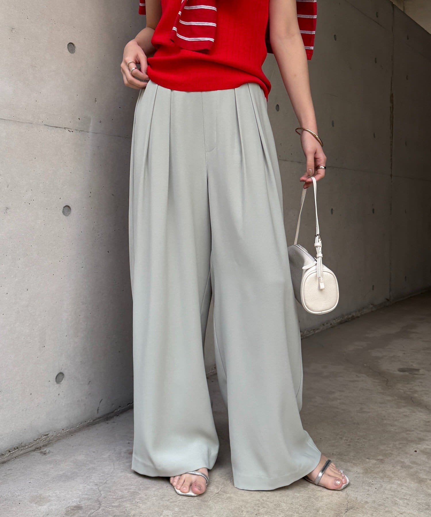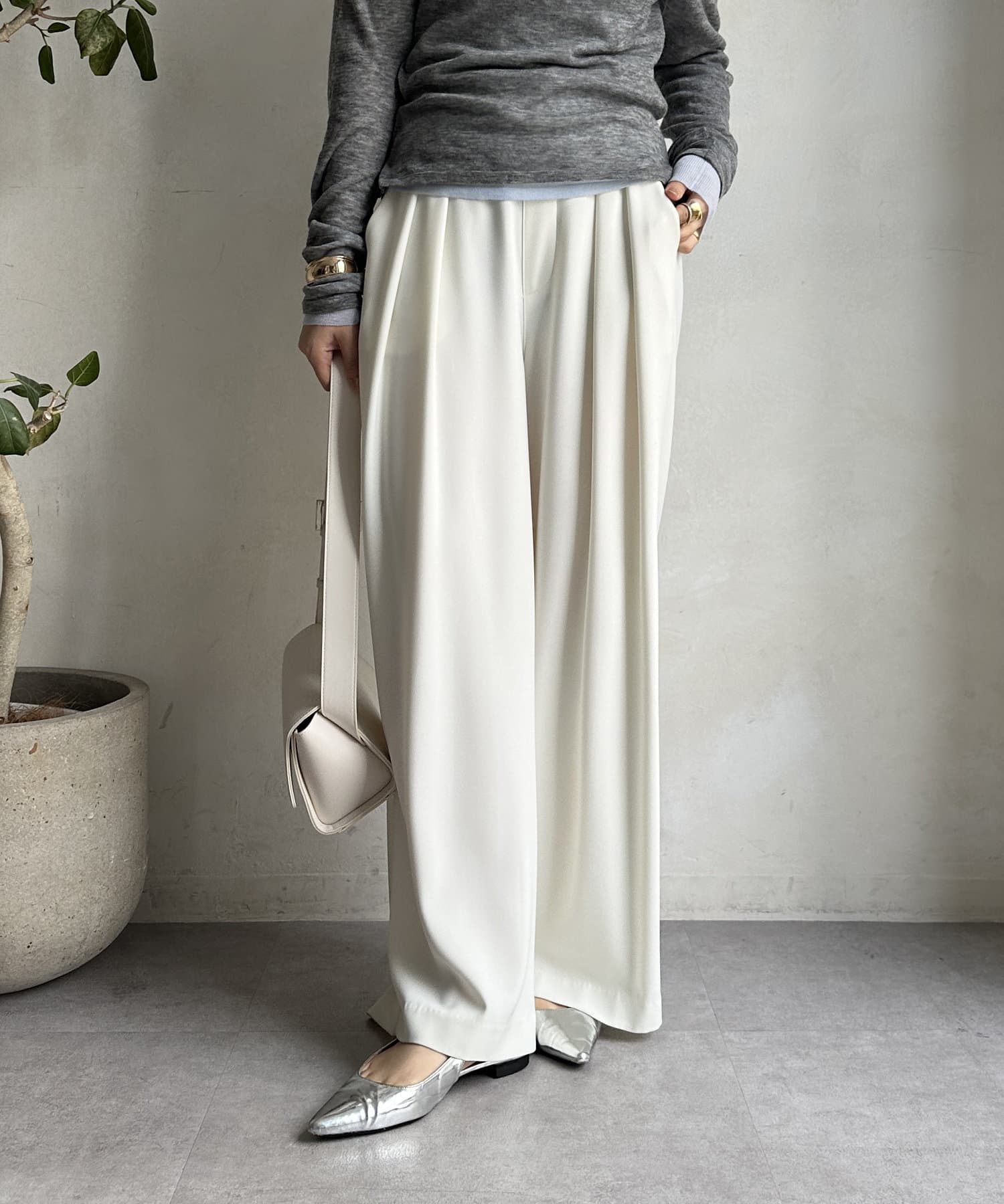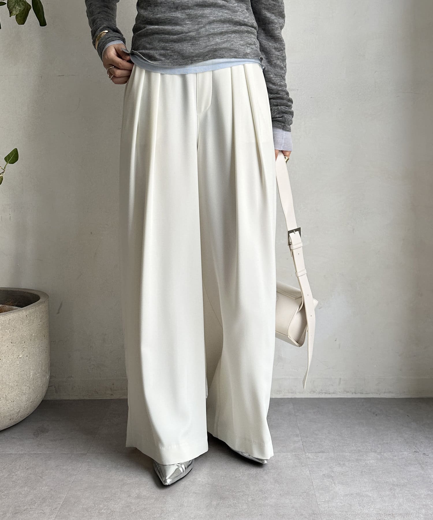 フロントに施したツータックがマイナス3キロ見えの秘訣で、すとんと落ちるきれいなシルエットを演出。