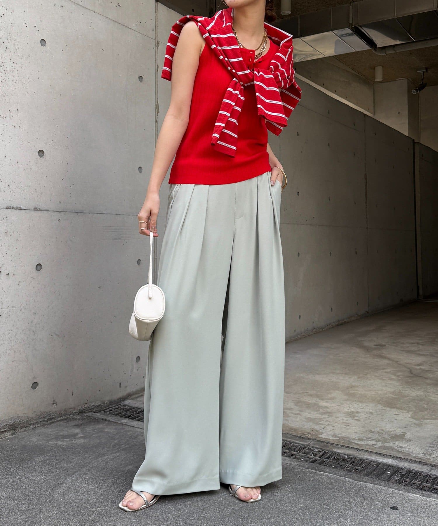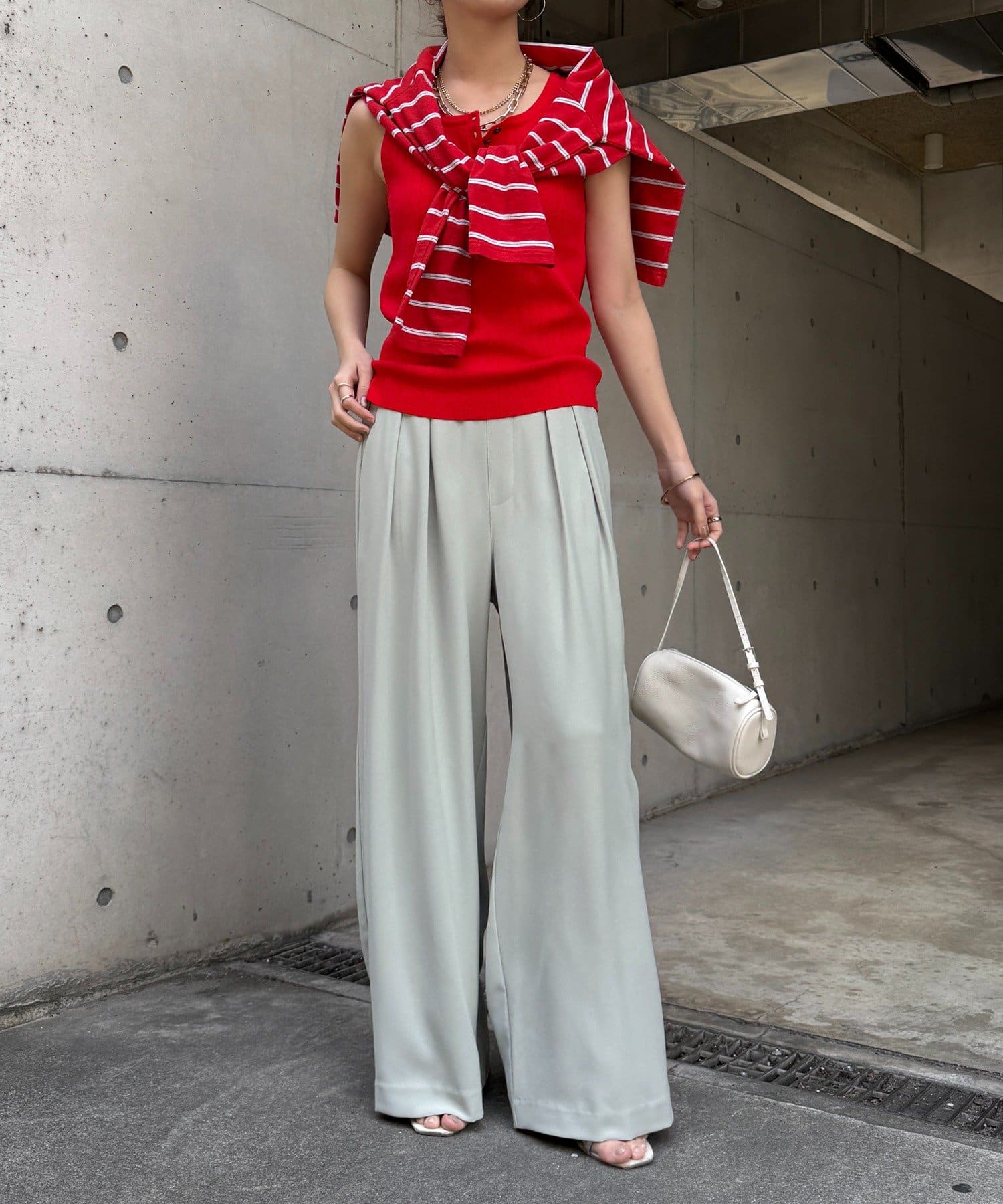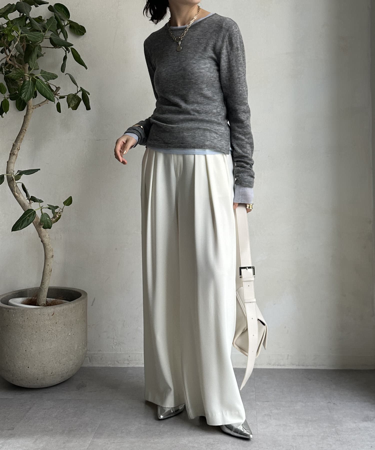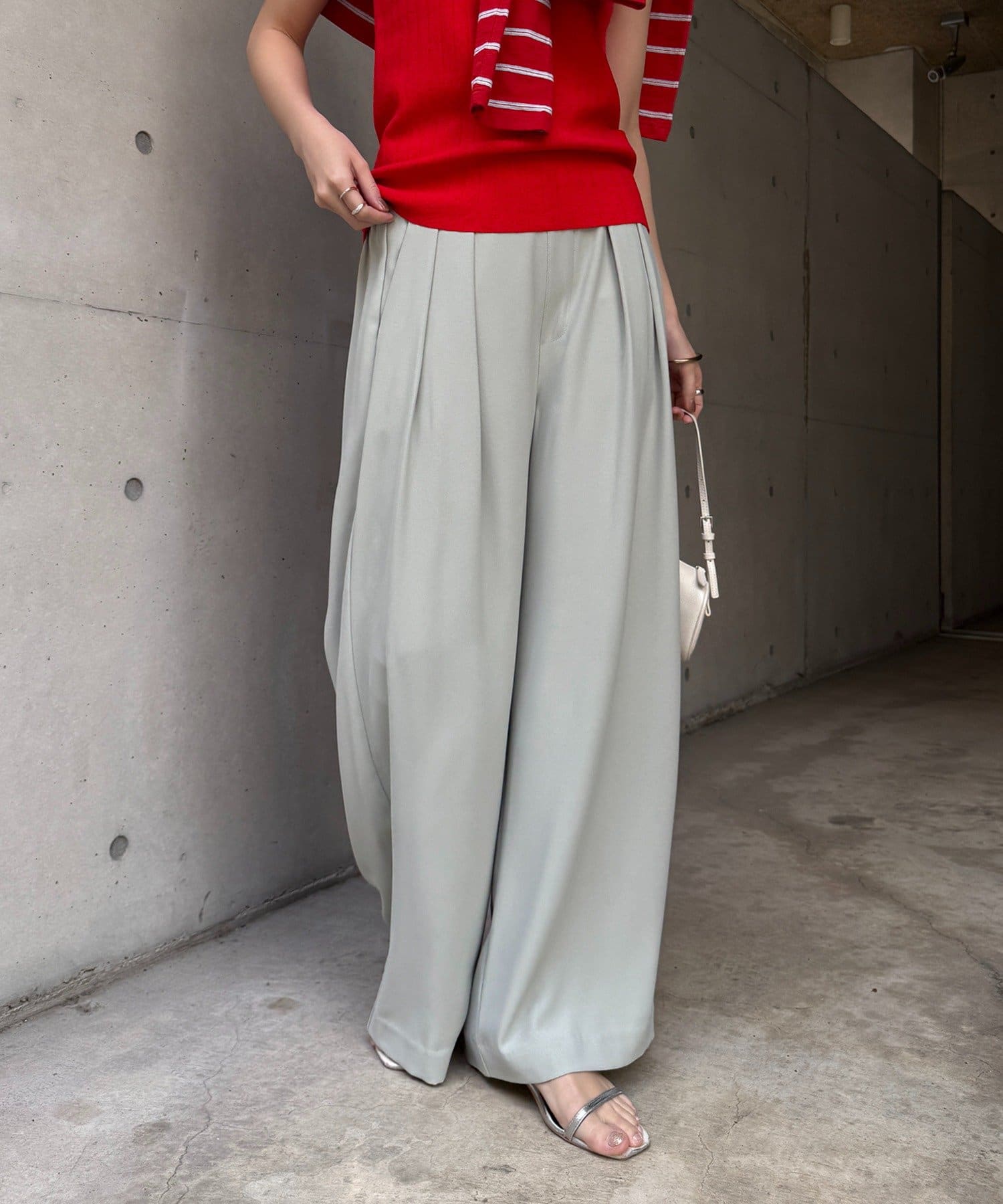 フロントに施したツータックがマイナス3キロ見えの秘訣で、すとんと落ちるきれいなシルエットを演出。