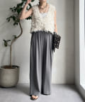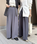 ゆったりと脚のラインを拾わず、ウエストはバックゴム仕様で履き心地はイージー。