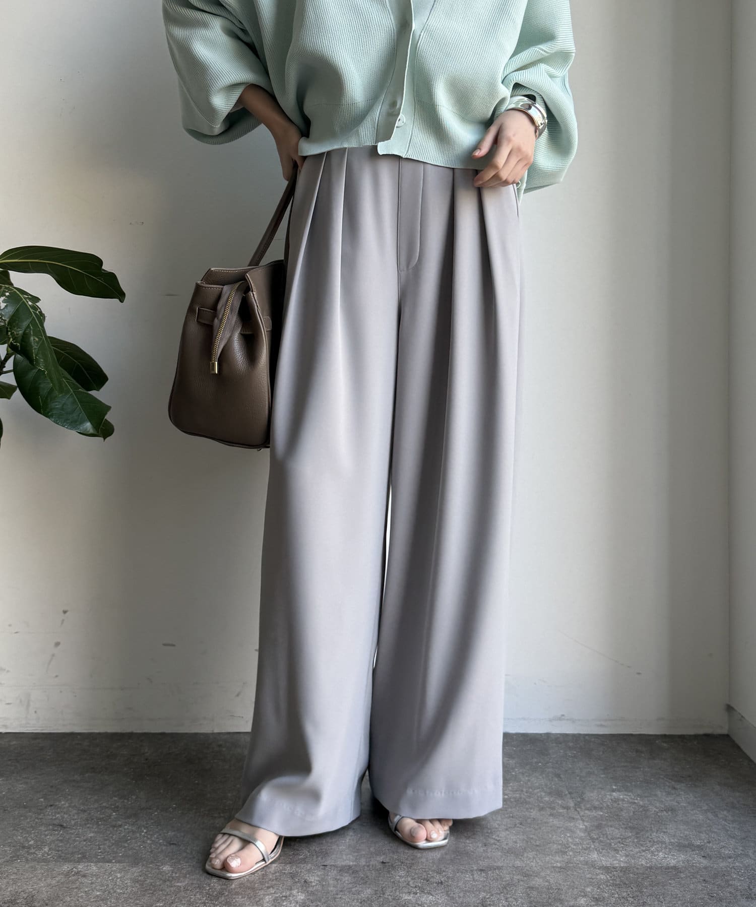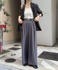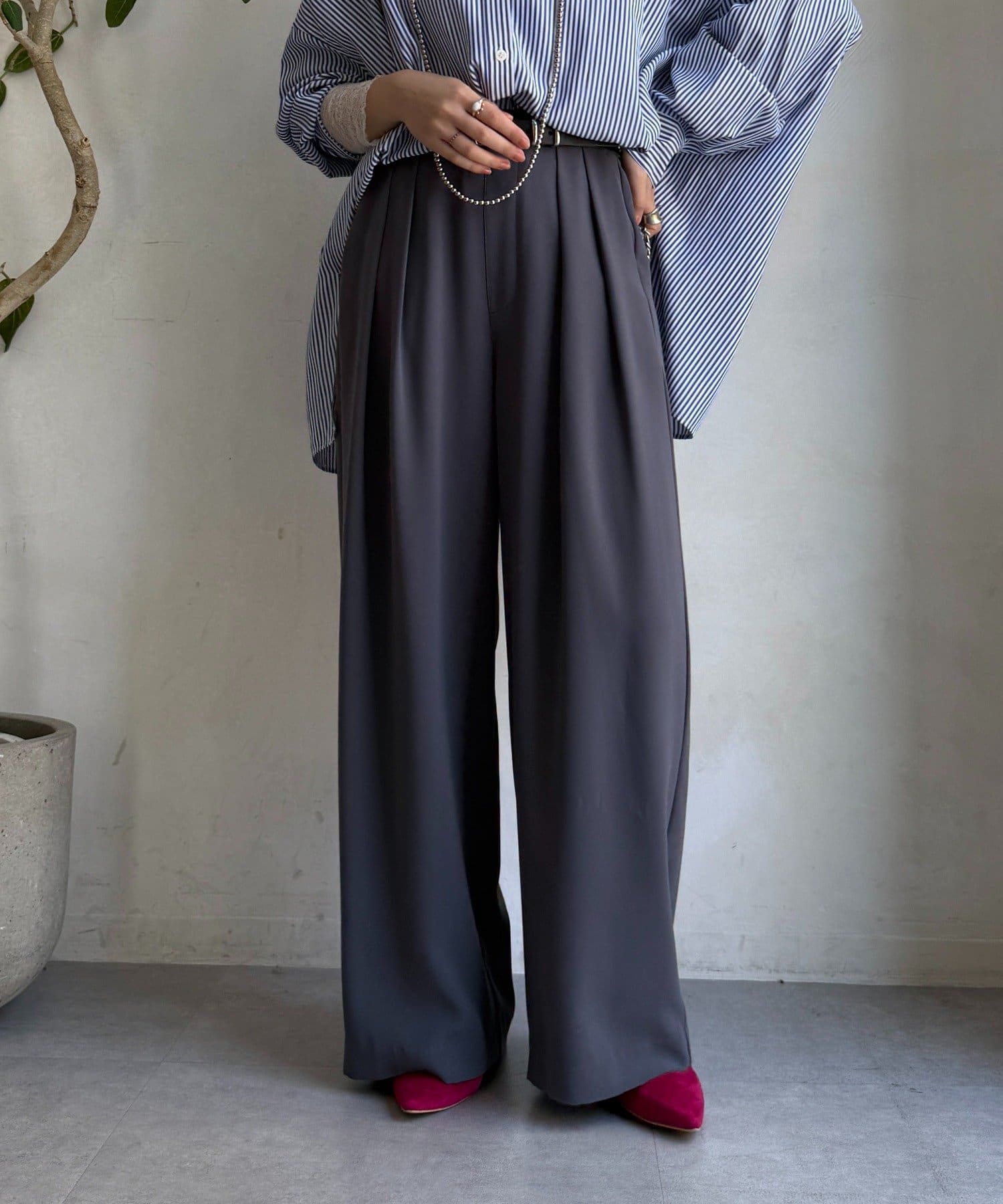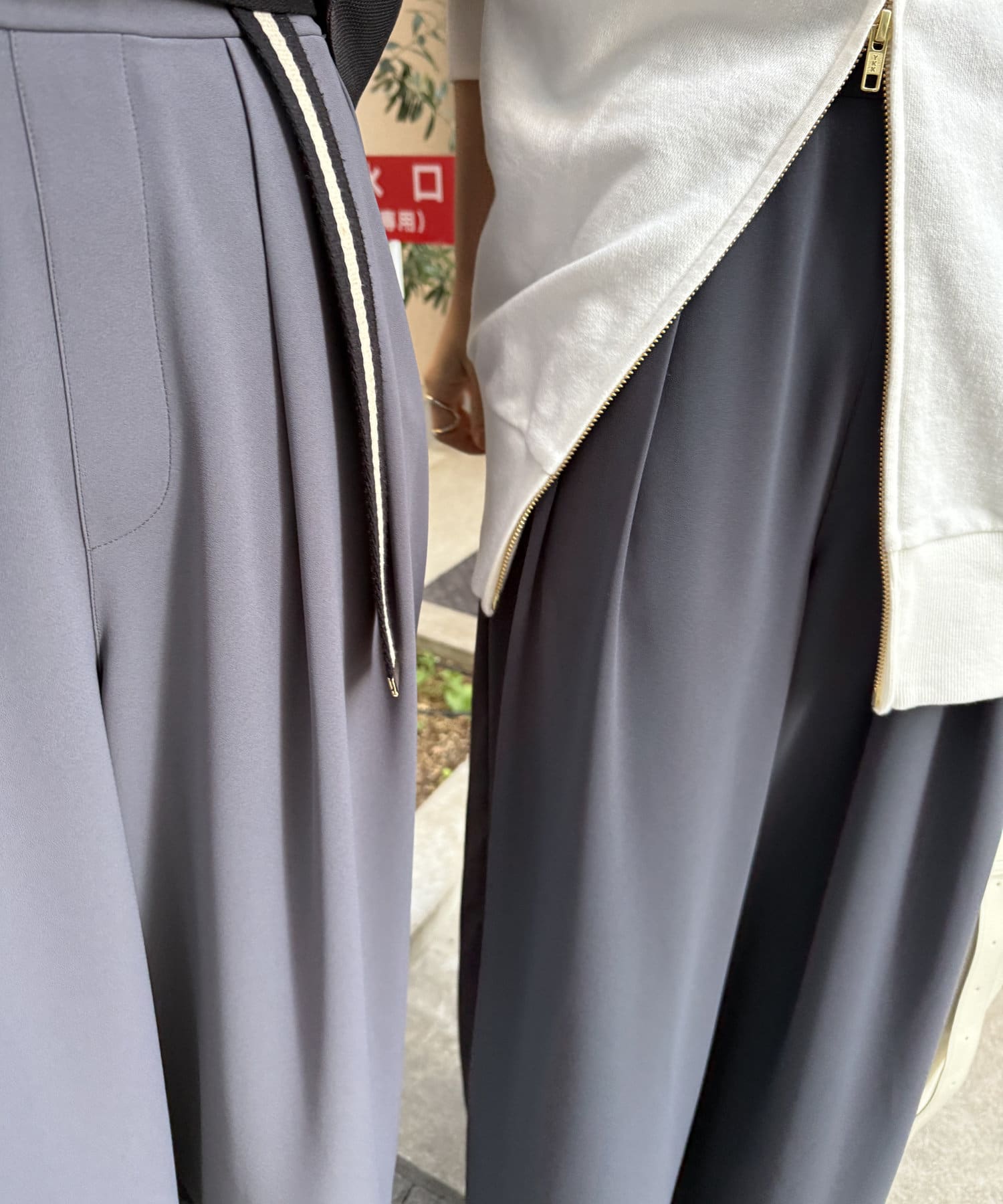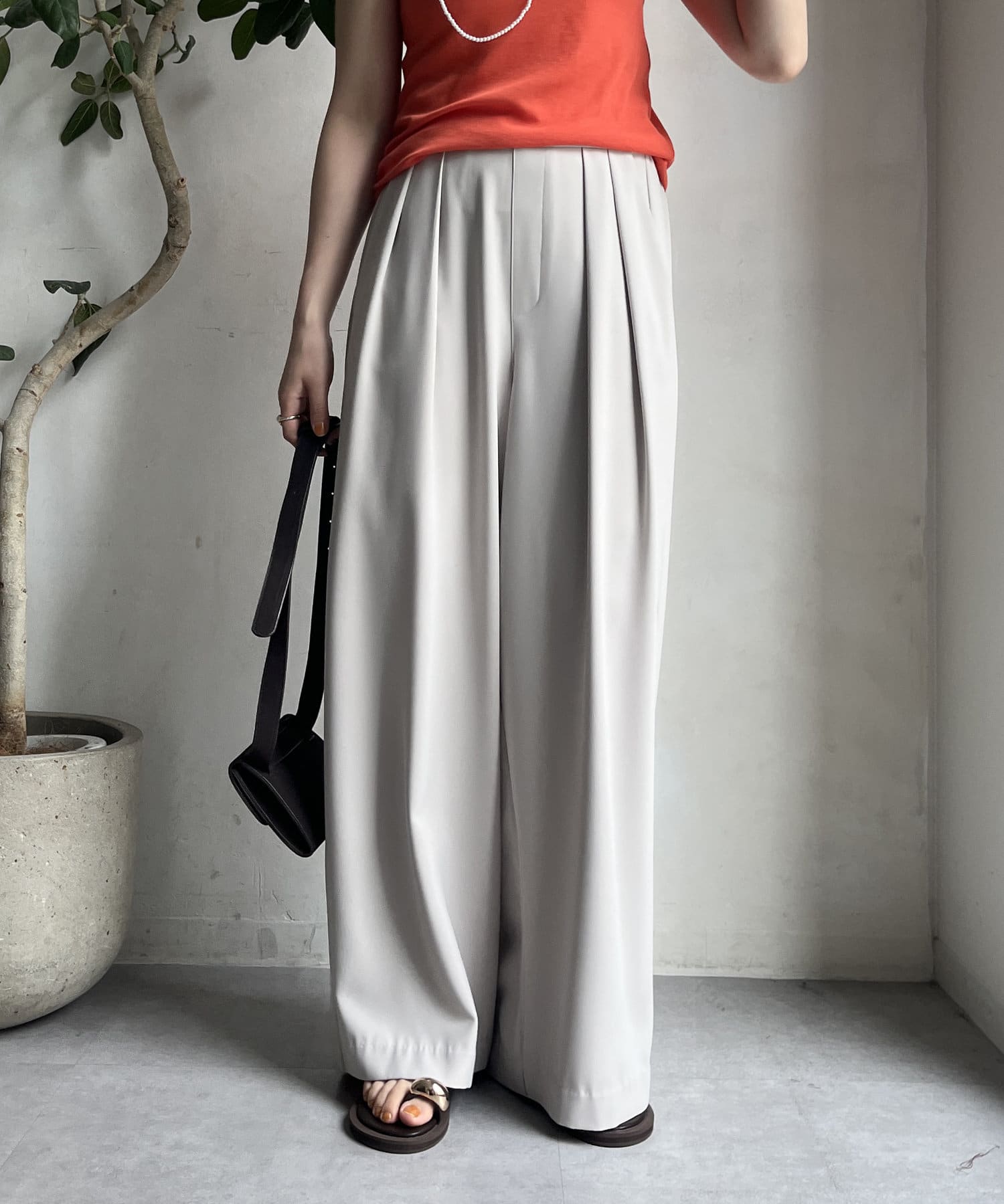 フロントに施したツータックがマイナス3キロ見えの秘訣で、すとんと落ちるきれいなシルエットを演出。