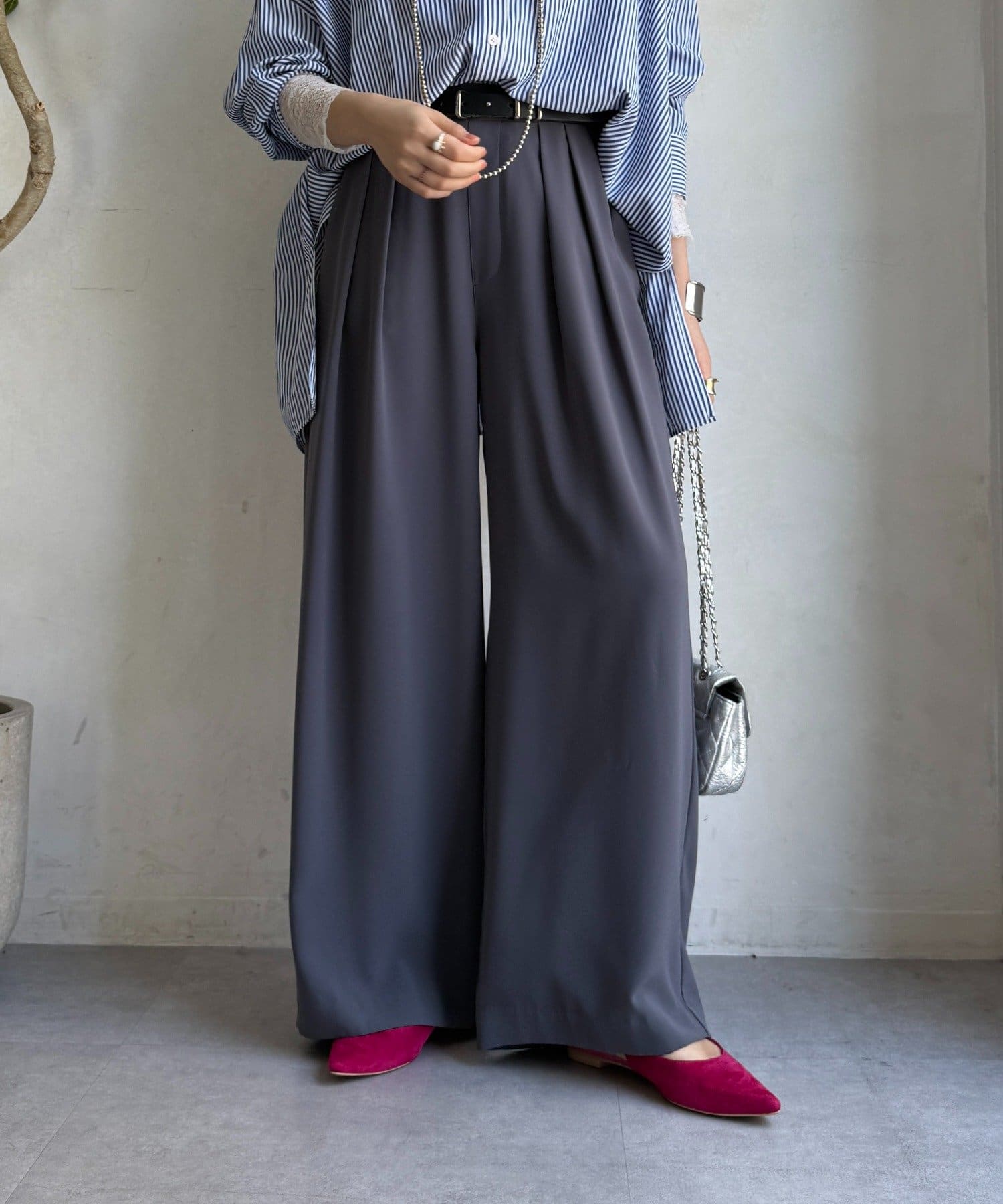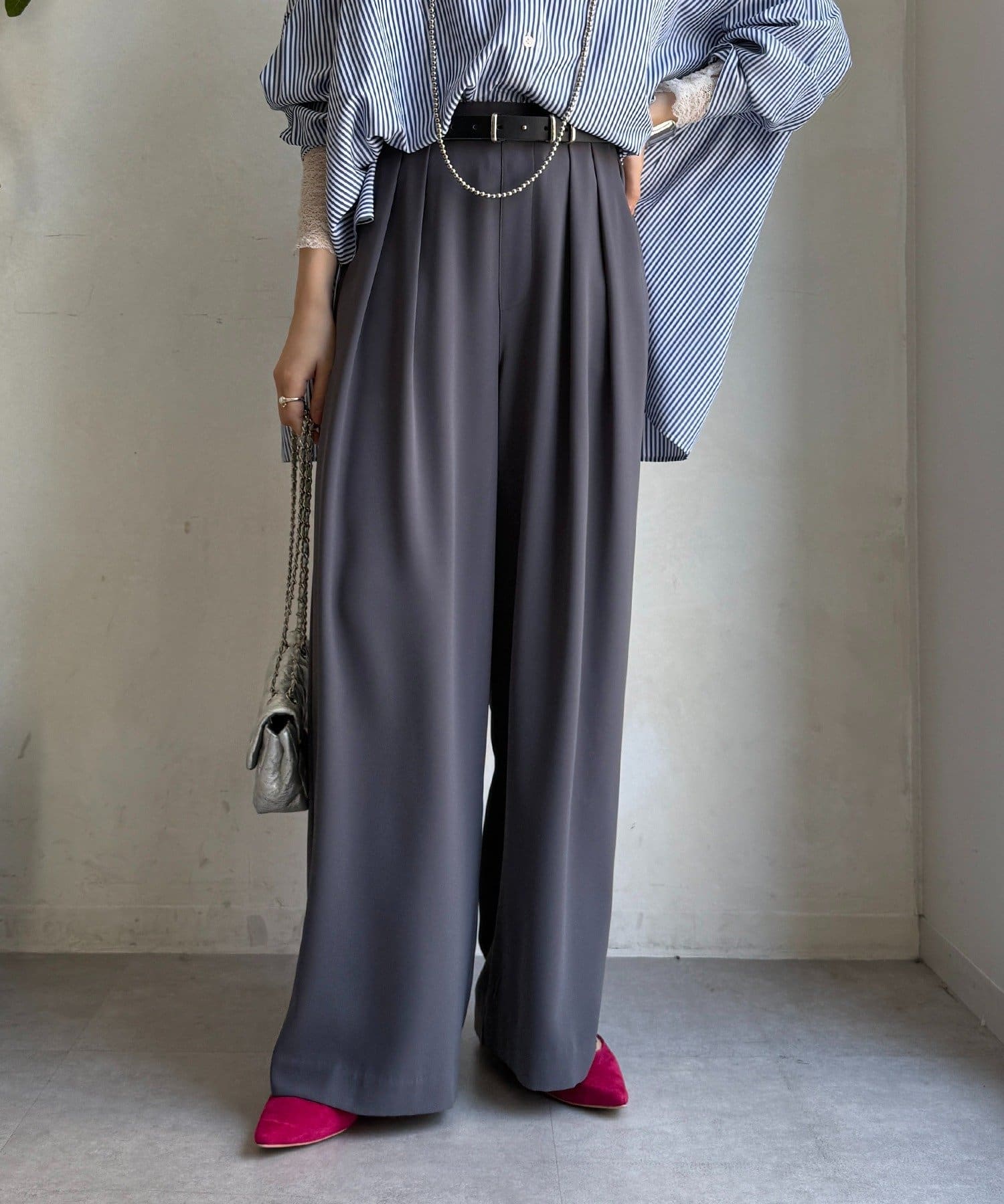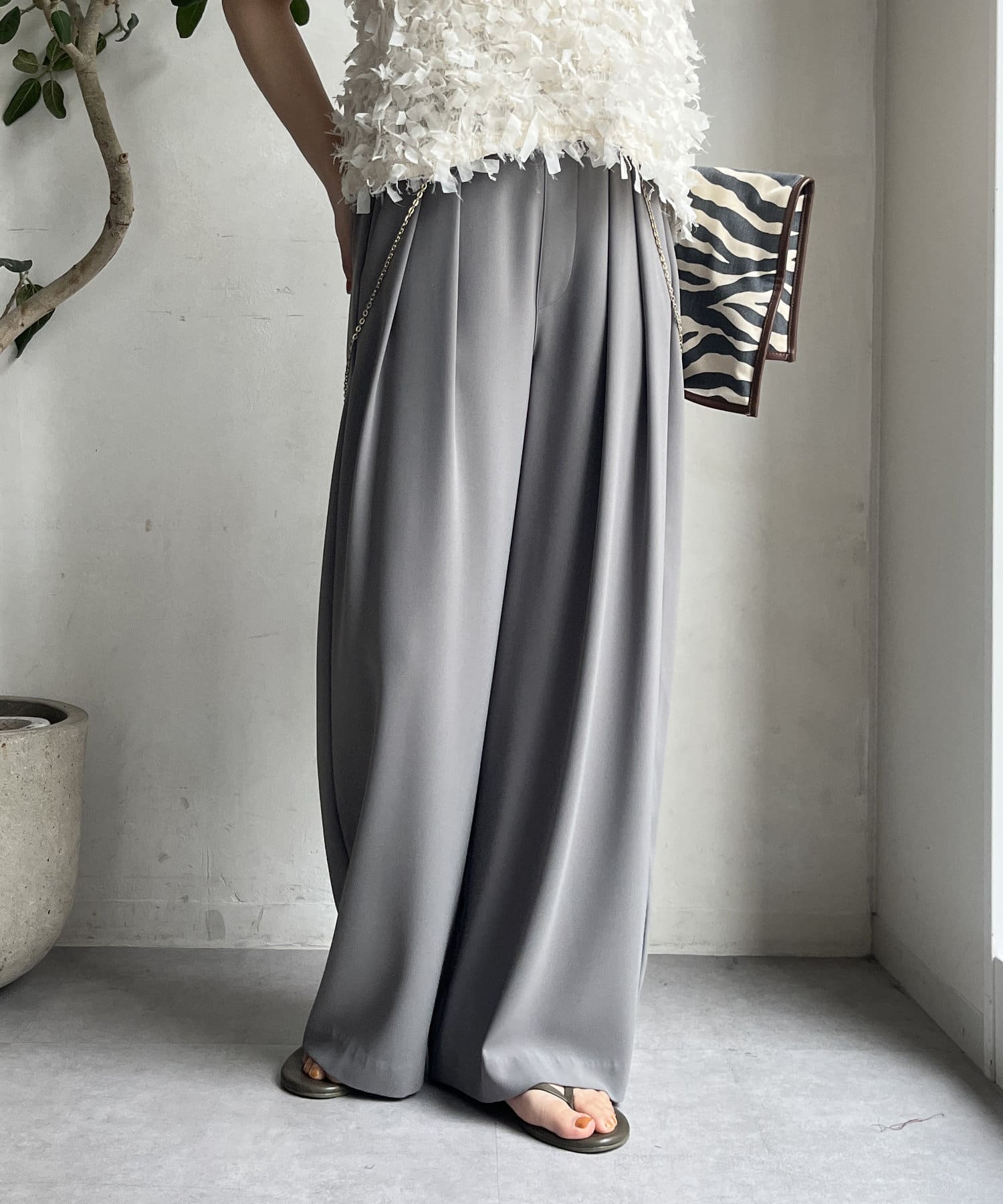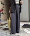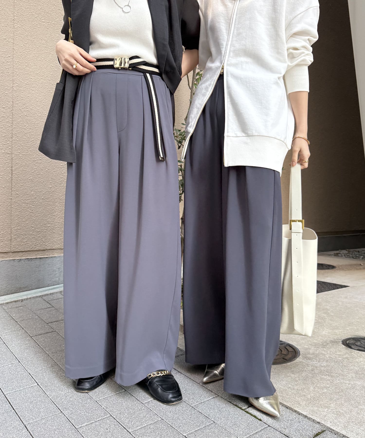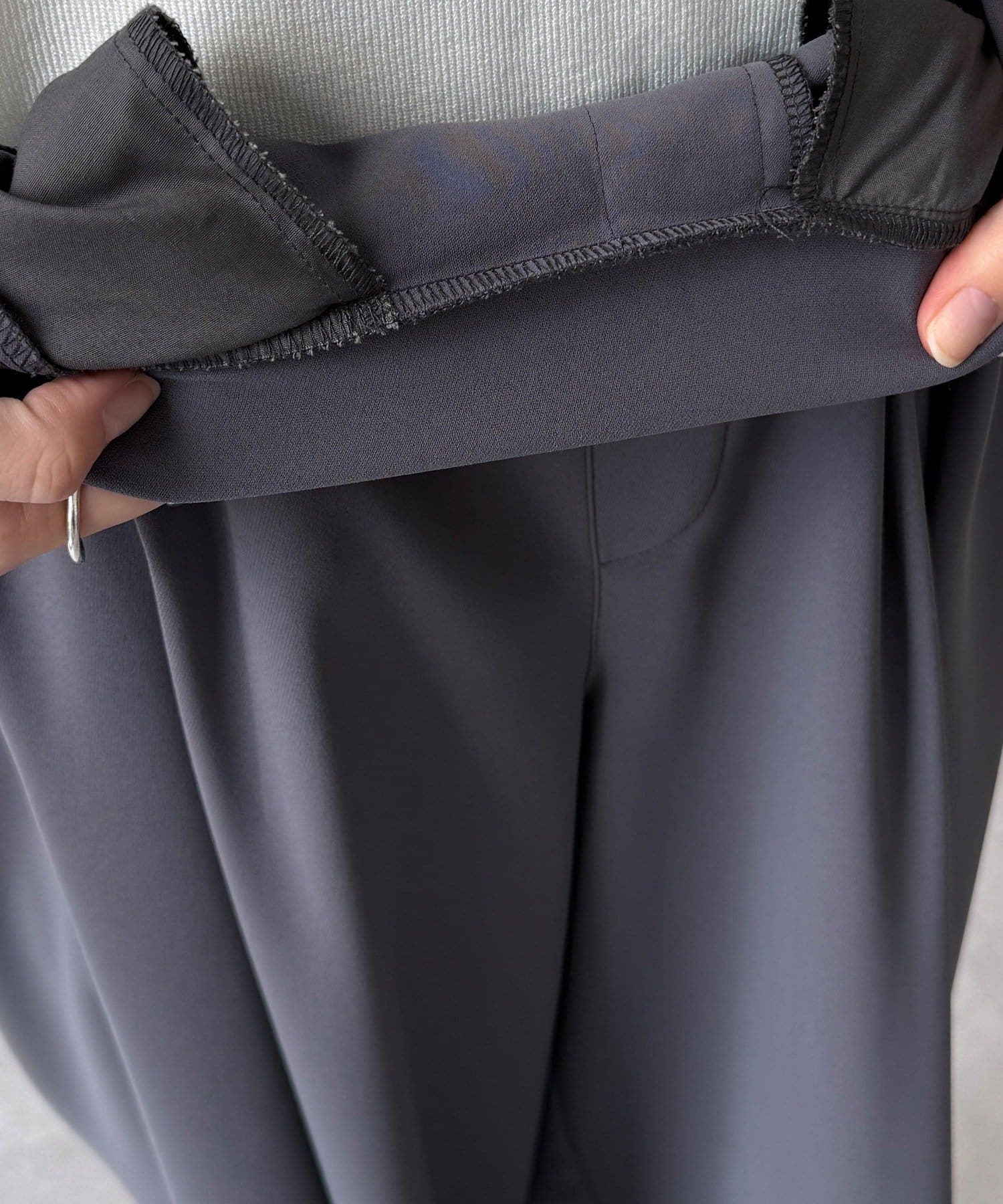 フロントに施したツータックがマイナス3キロ見えの秘訣で、すとんと落ちるきれいなシルエットを演出。