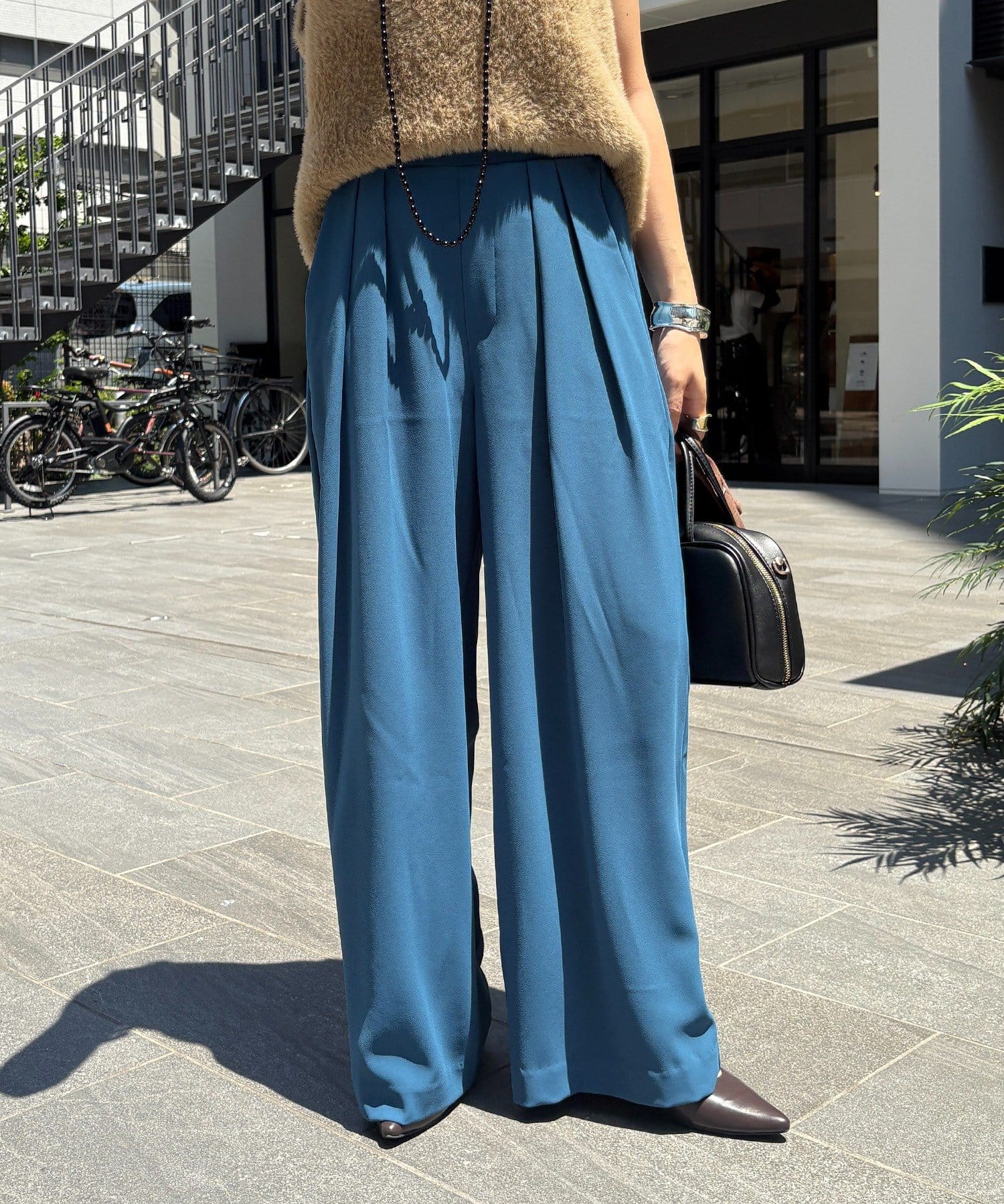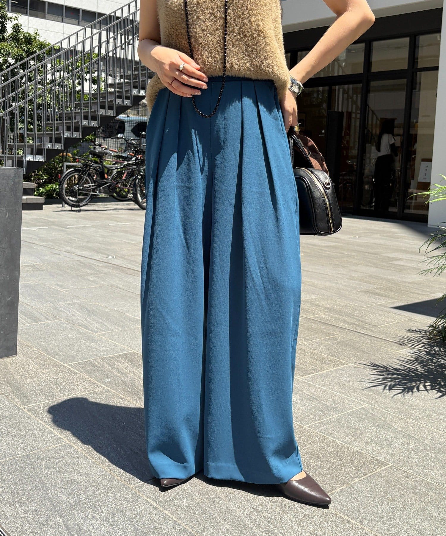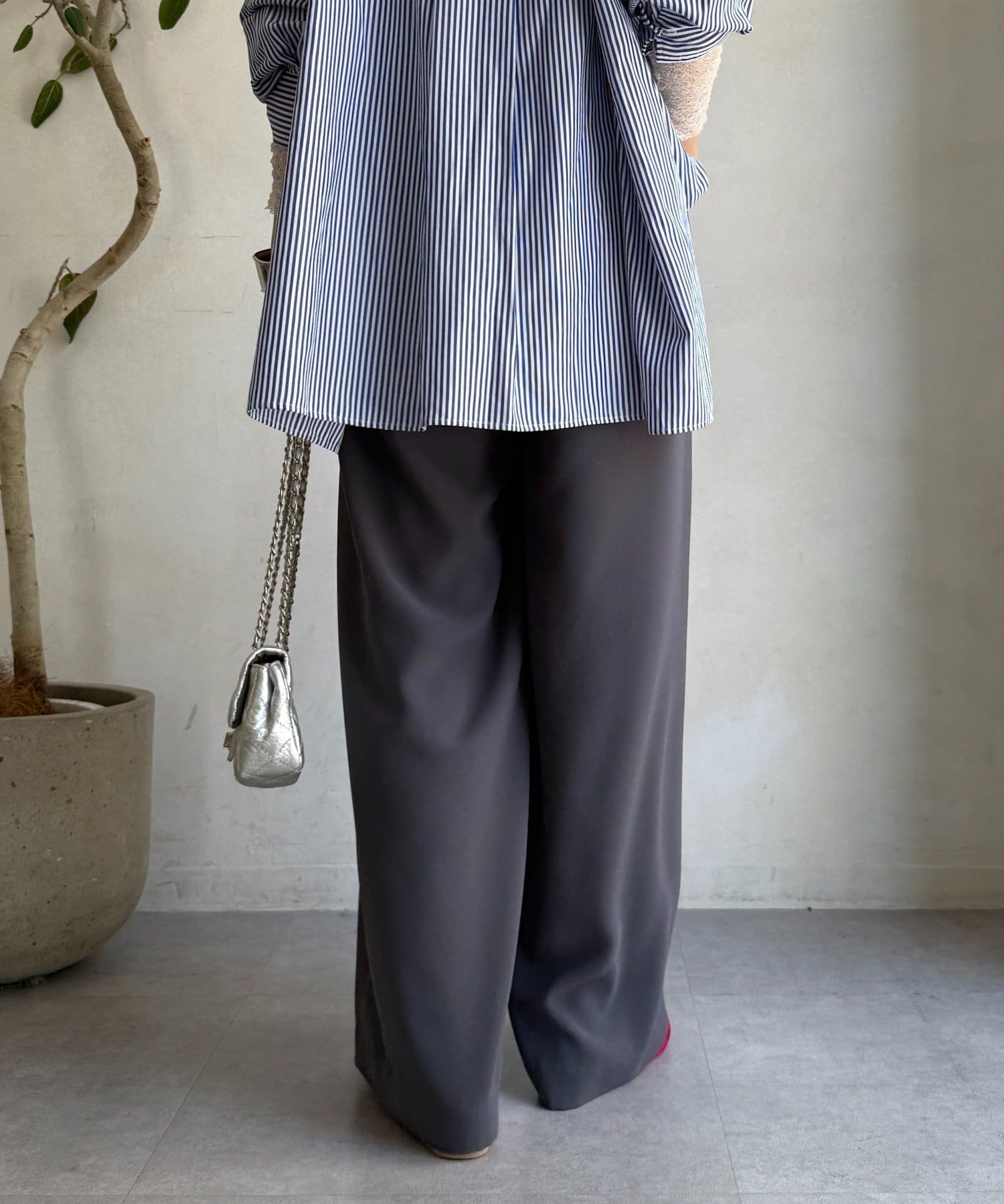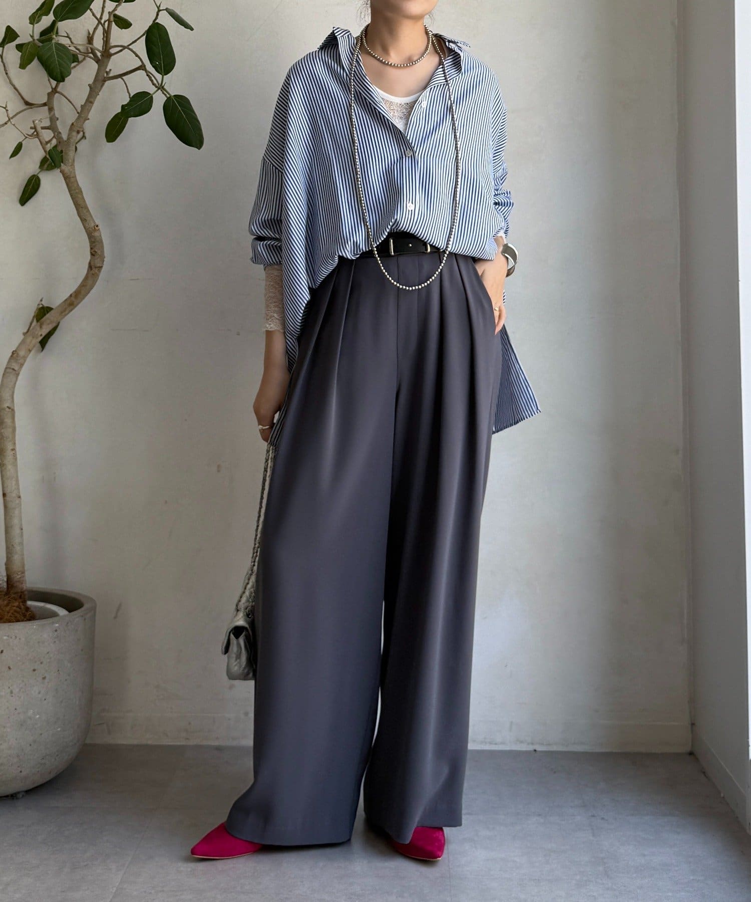 フロントに施したツータックがマイナス3キロ見えの秘訣で、すとんと落ちるきれいなシルエットを演出。