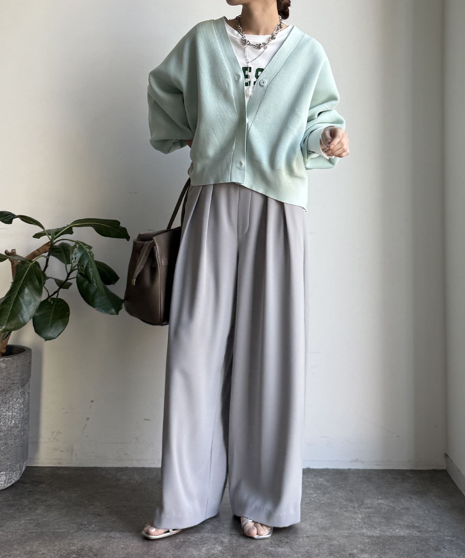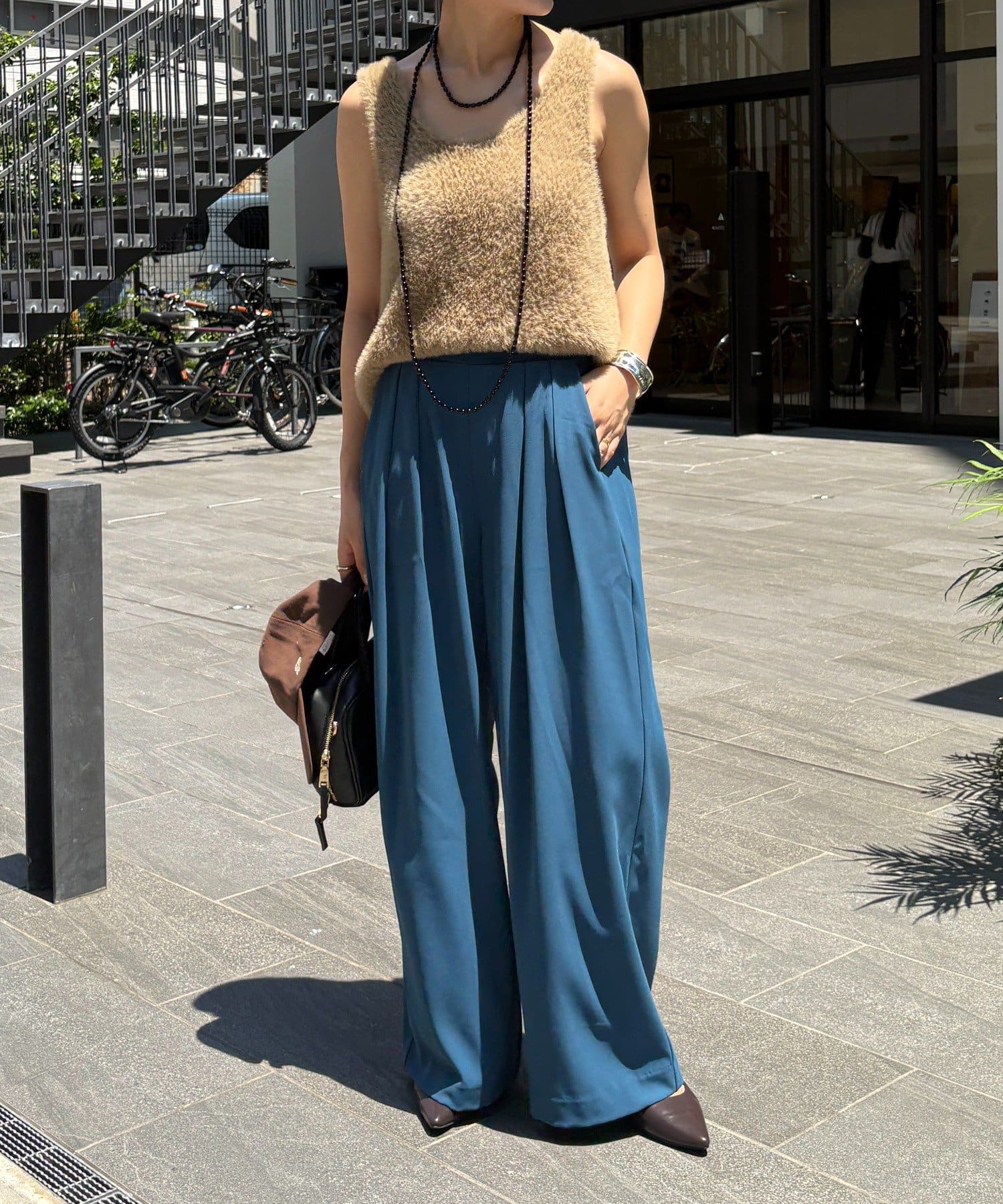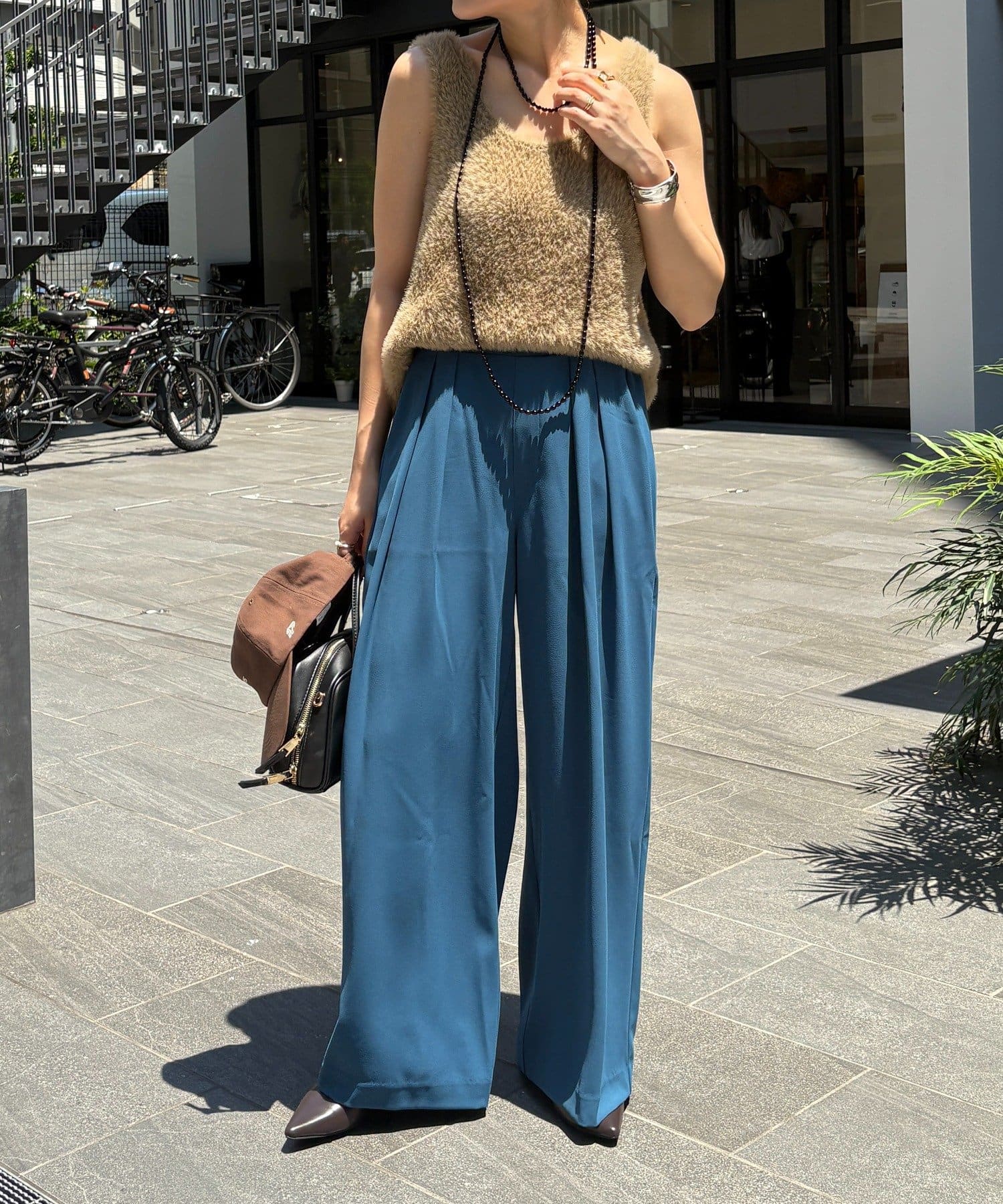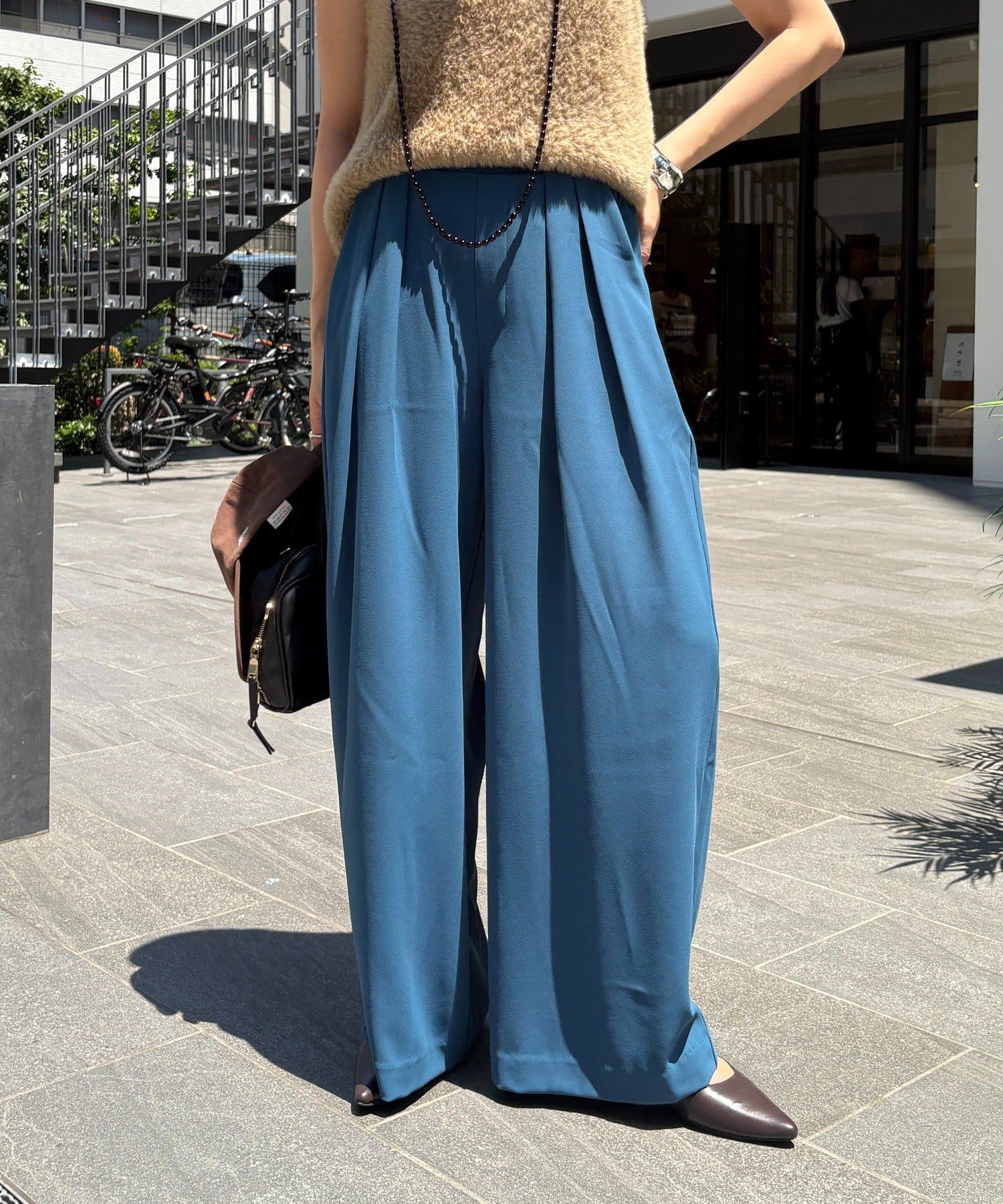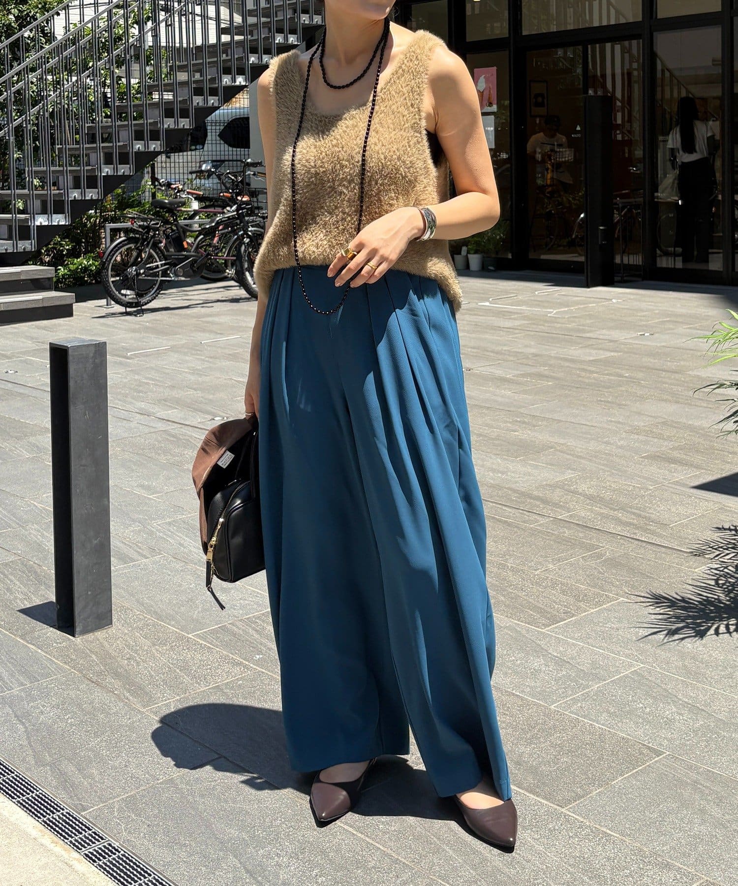 フロントに施したツータックがマイナス3キロ見えの秘訣で、すとんと落ちるきれいなシルエットを演出。
