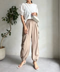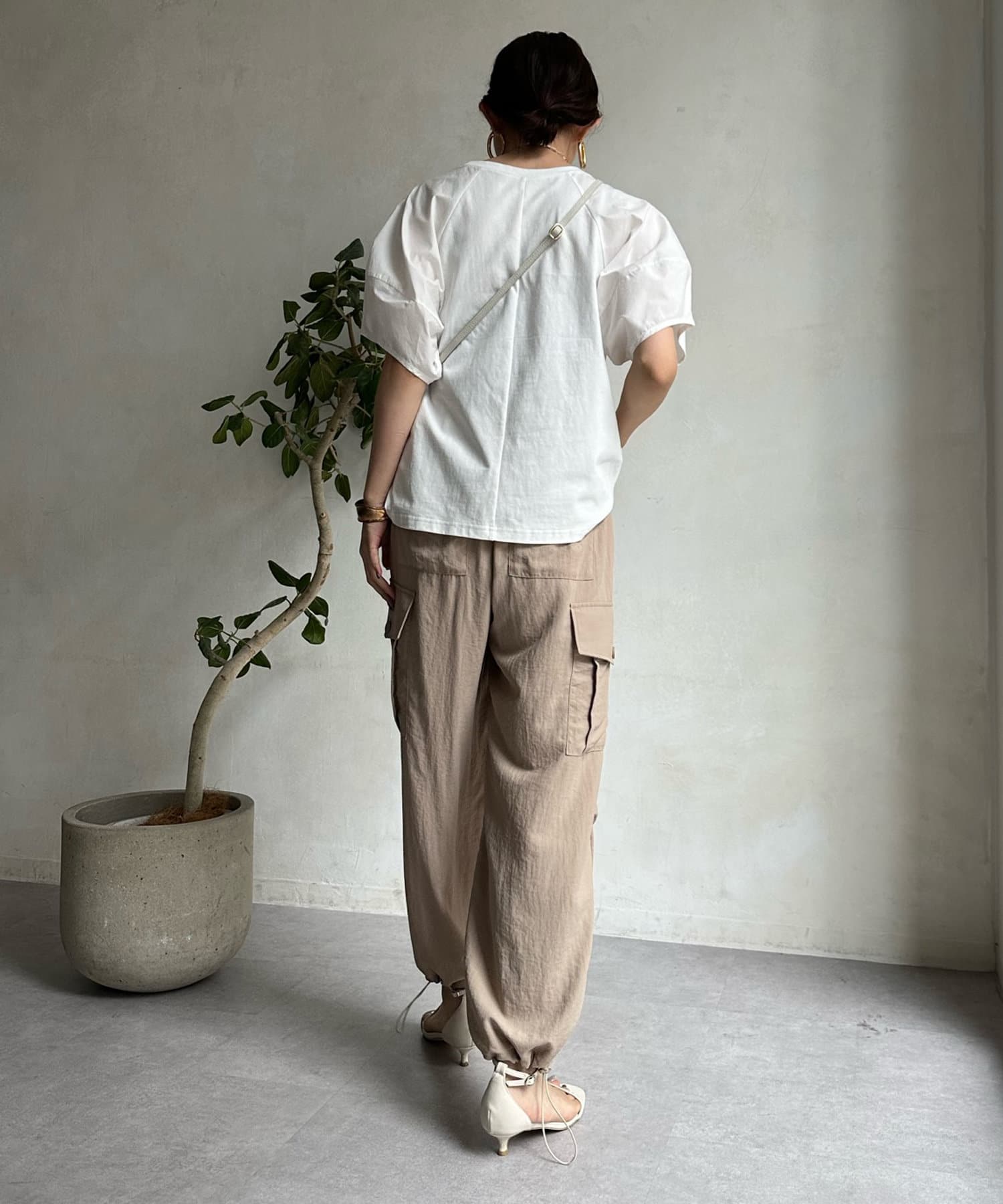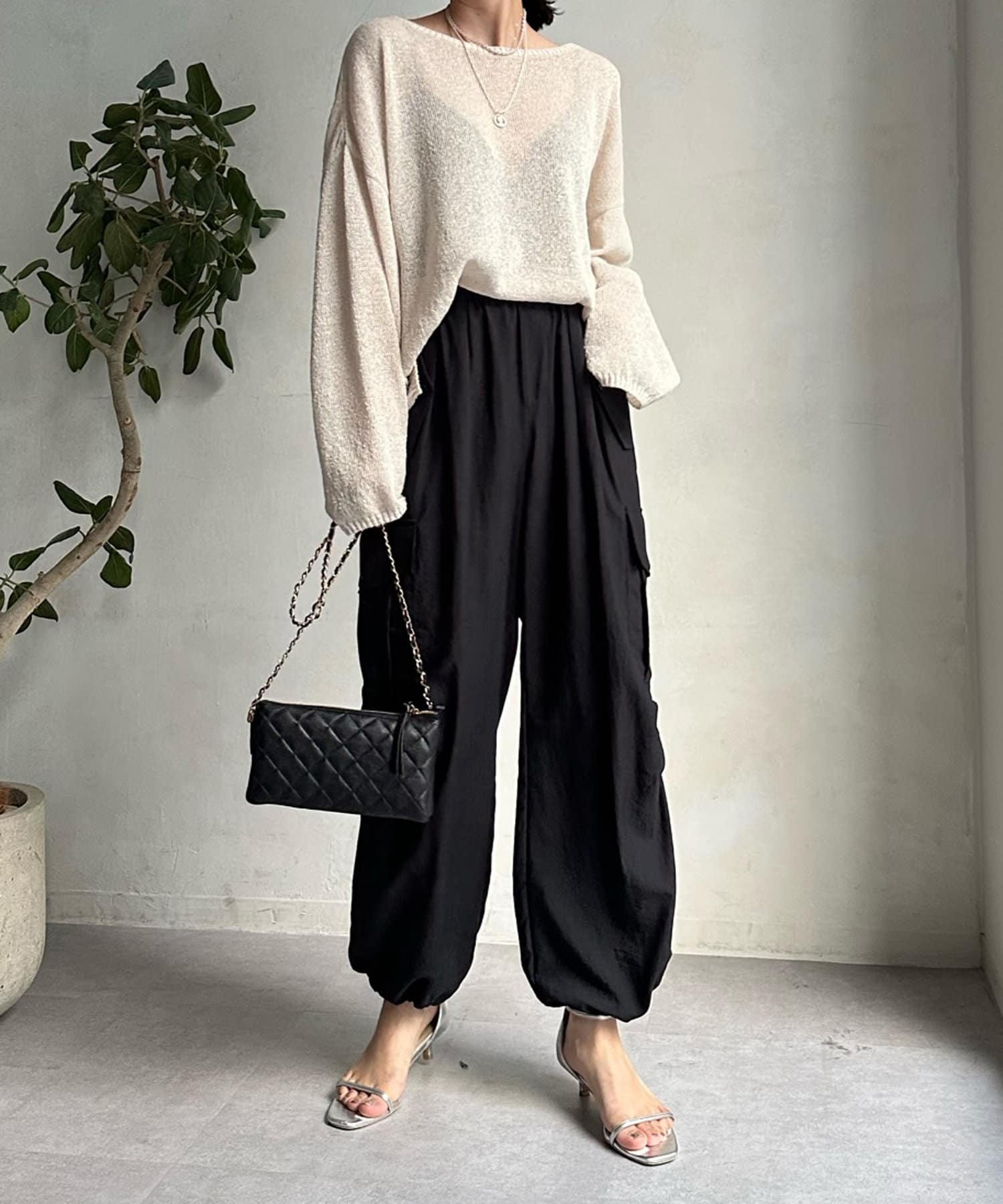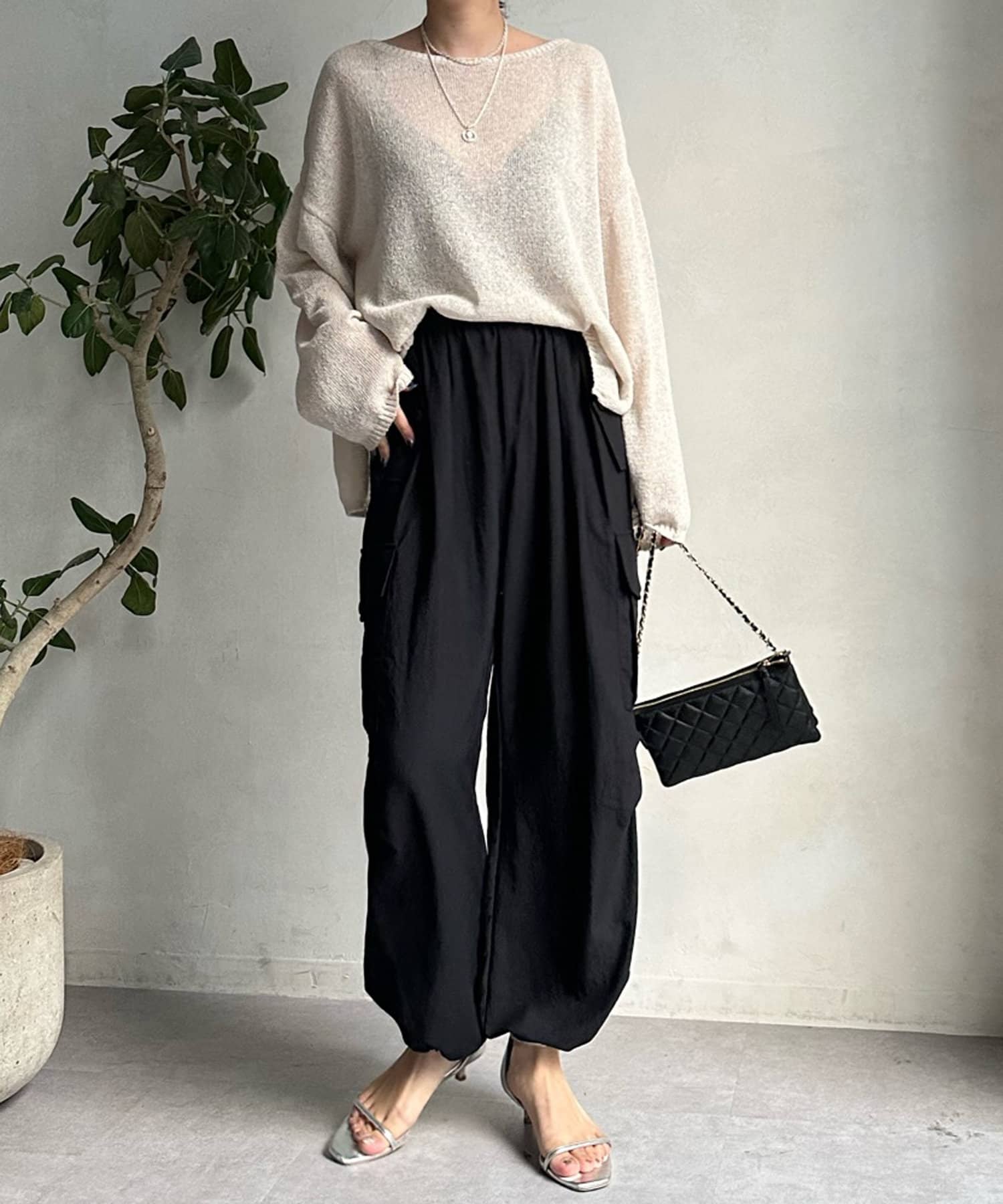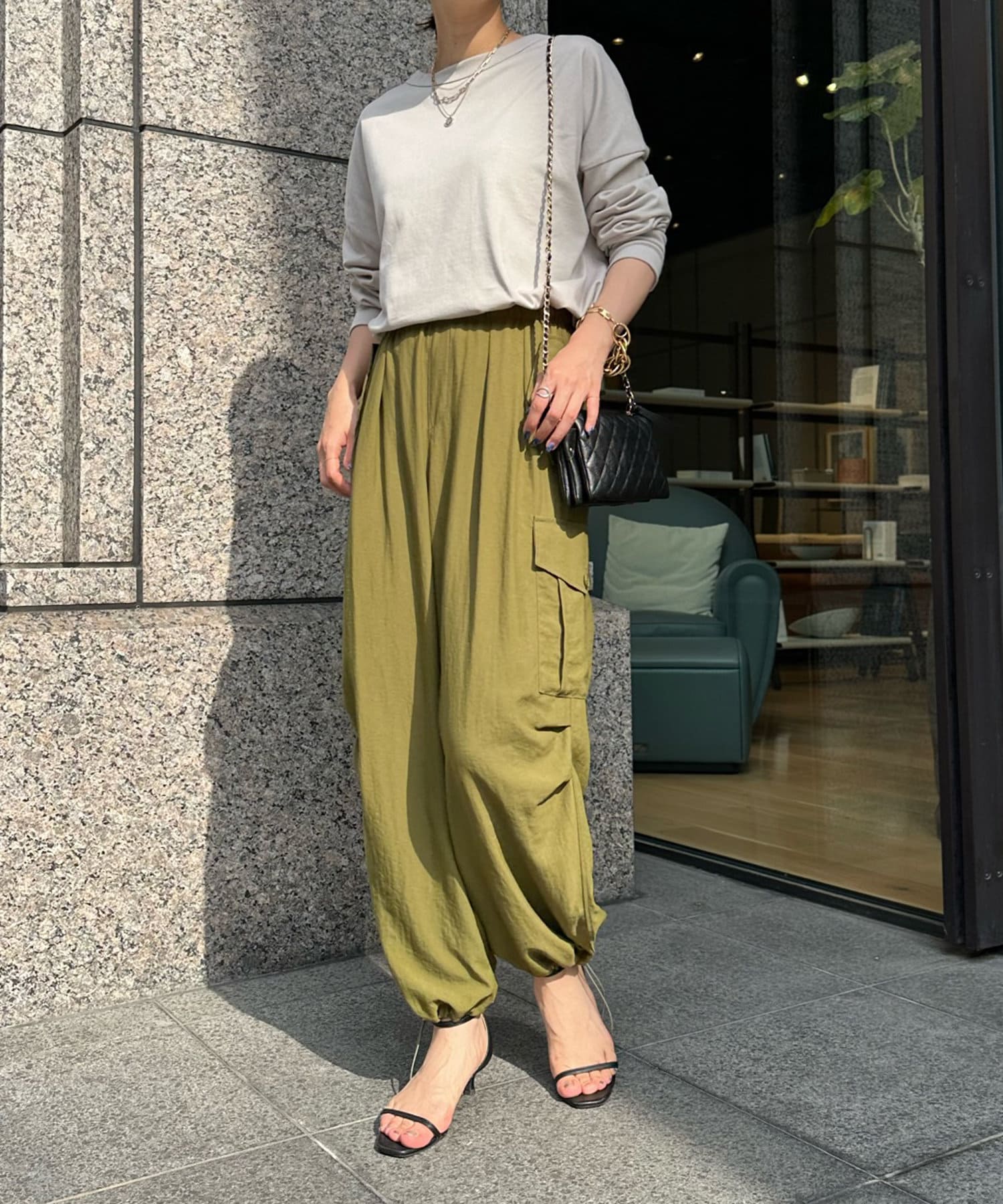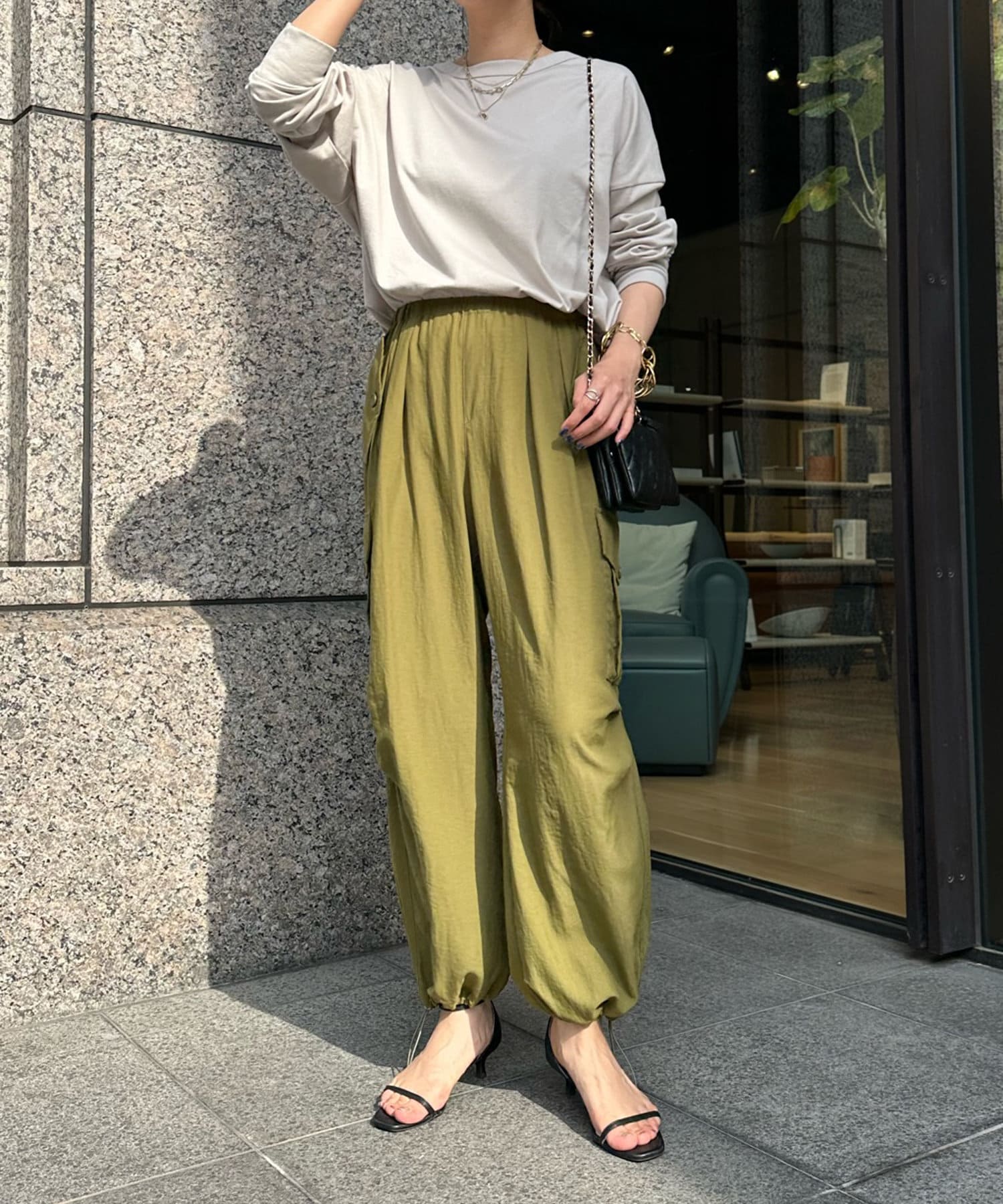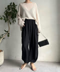 ラインを拾わないふっくらとボリューム感があるワイドシルエットに加え、