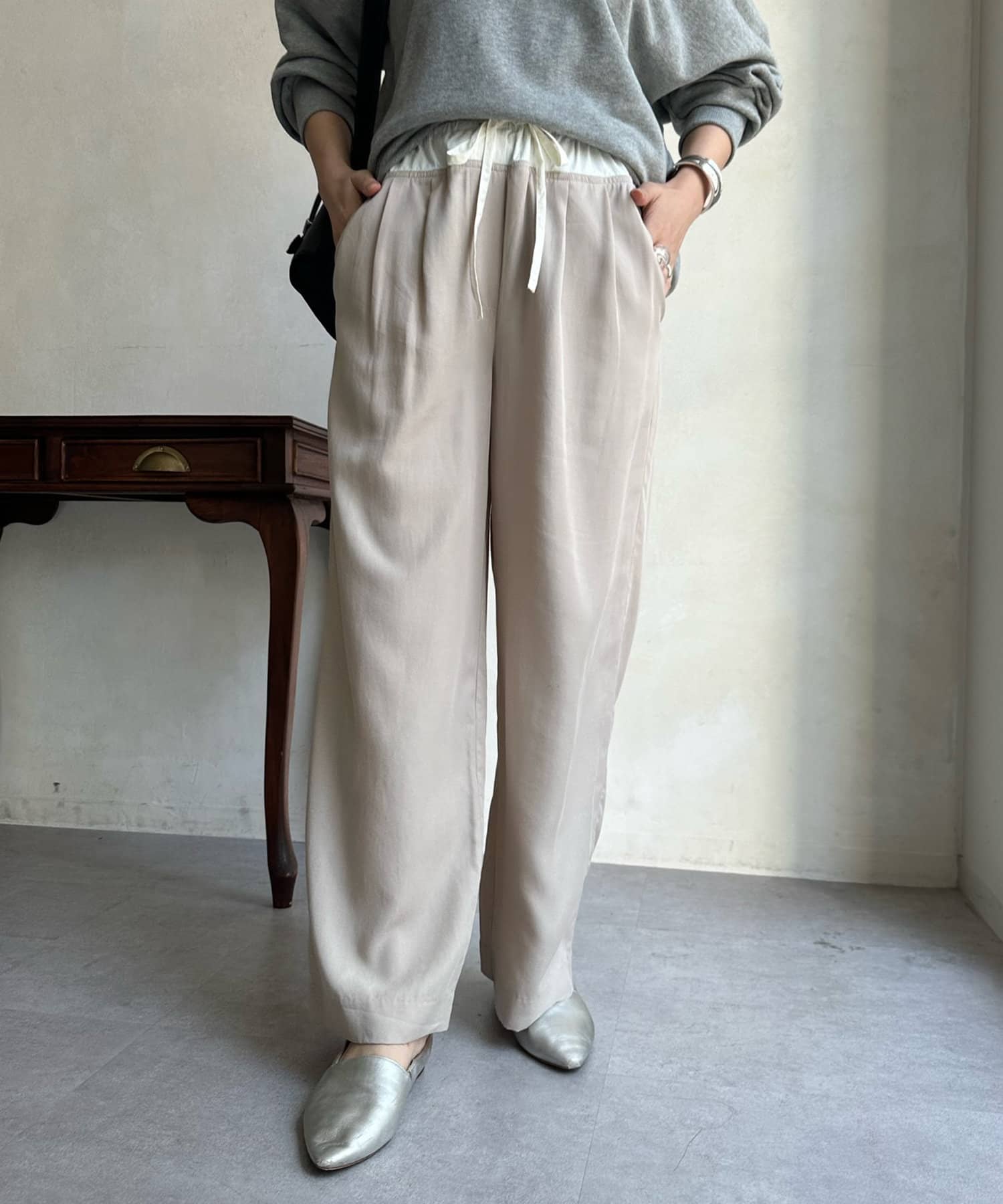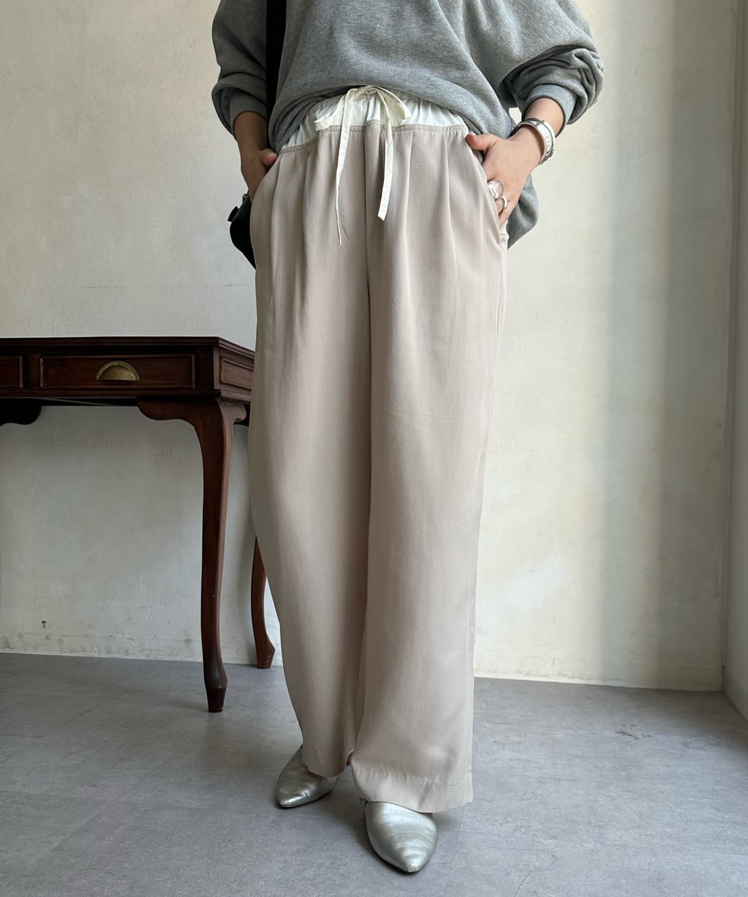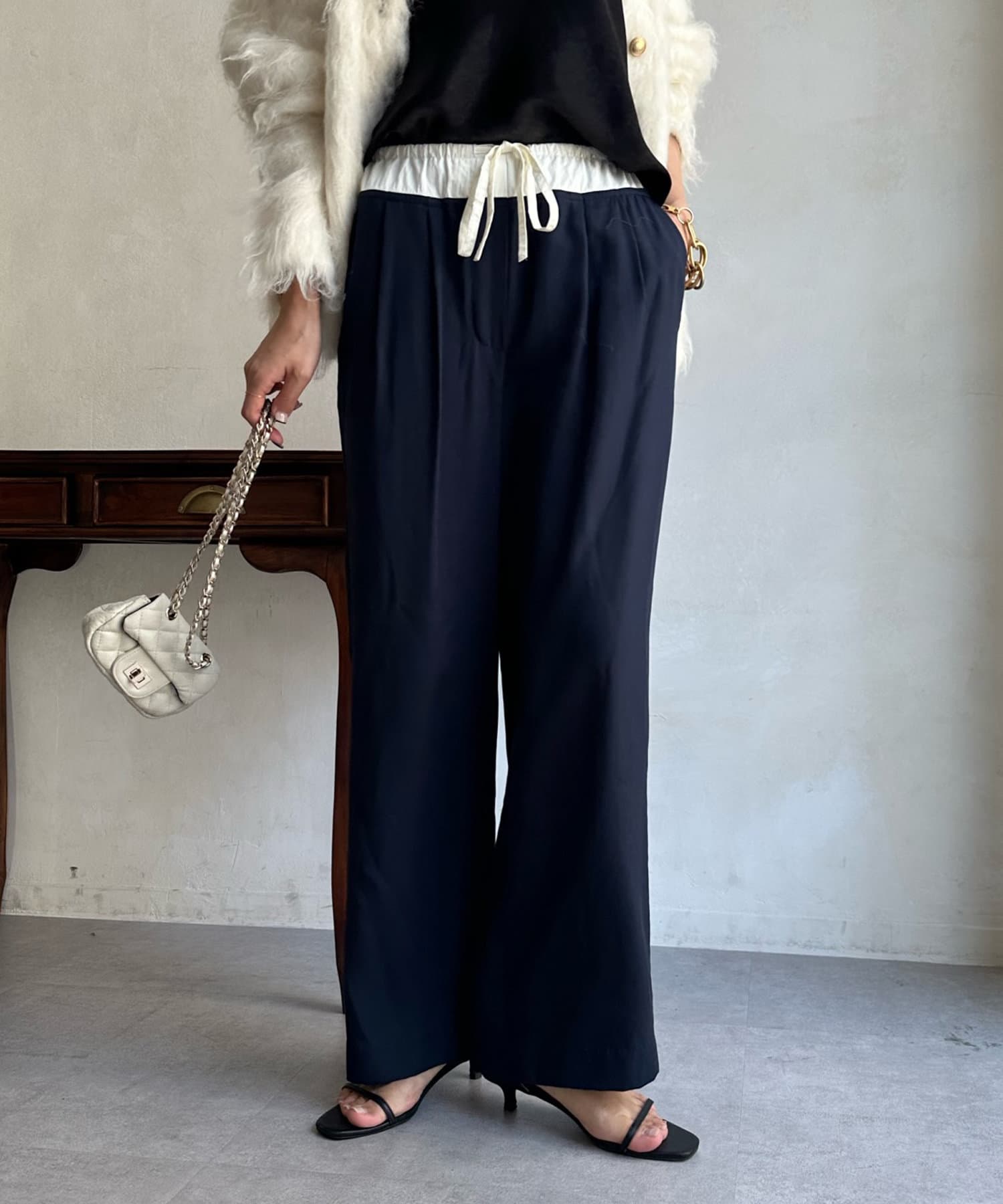 ワイドシルエットで、ウエストの切替デザインが特徴的なパンツです!