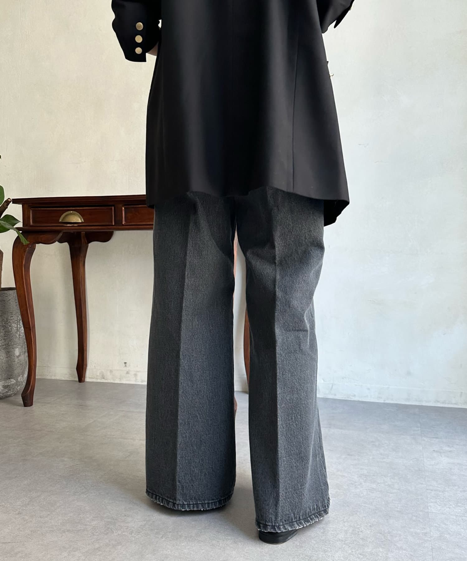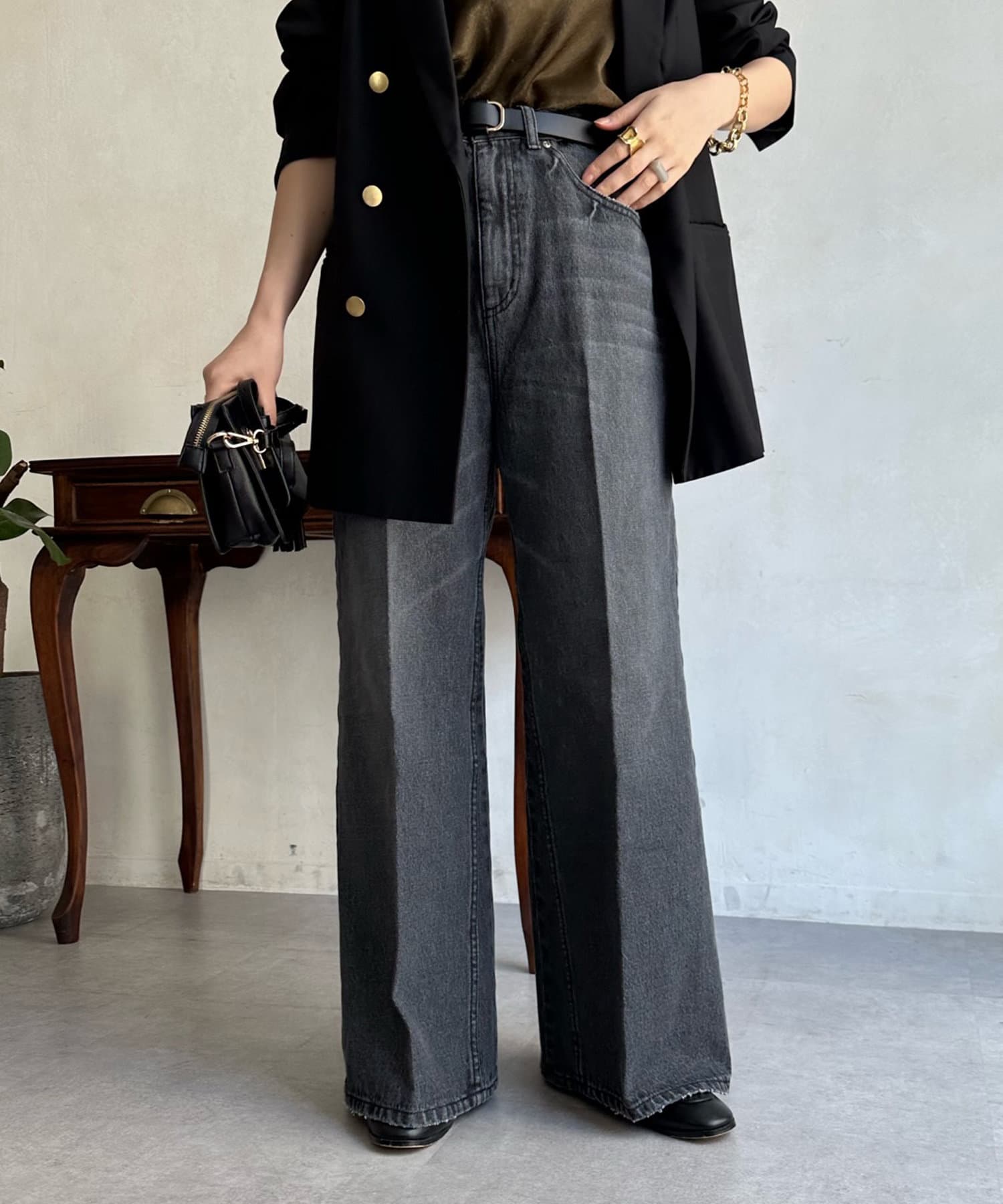 ワイドデニムの心地良さを味わいながら、スタイルアップにも貢献する理想的なデザインのデニム。