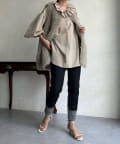 裾の折り返し風のデザインは前後で高さを少し違えることで