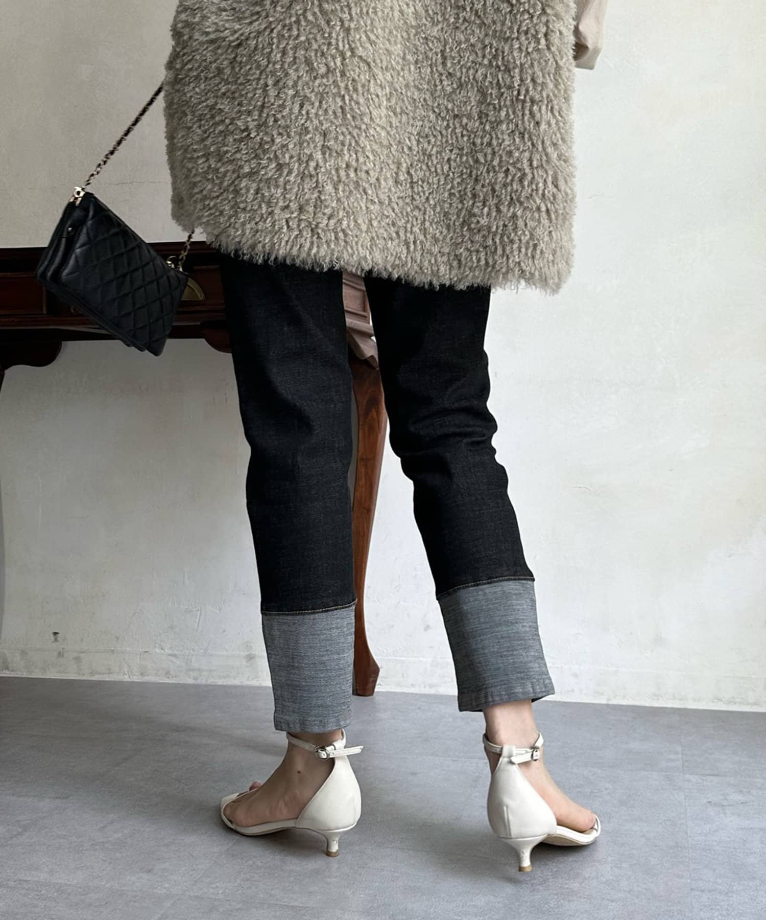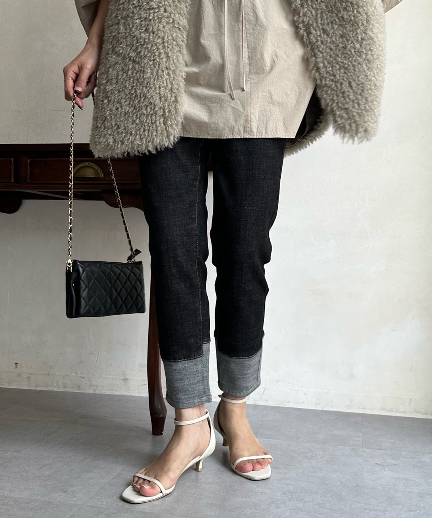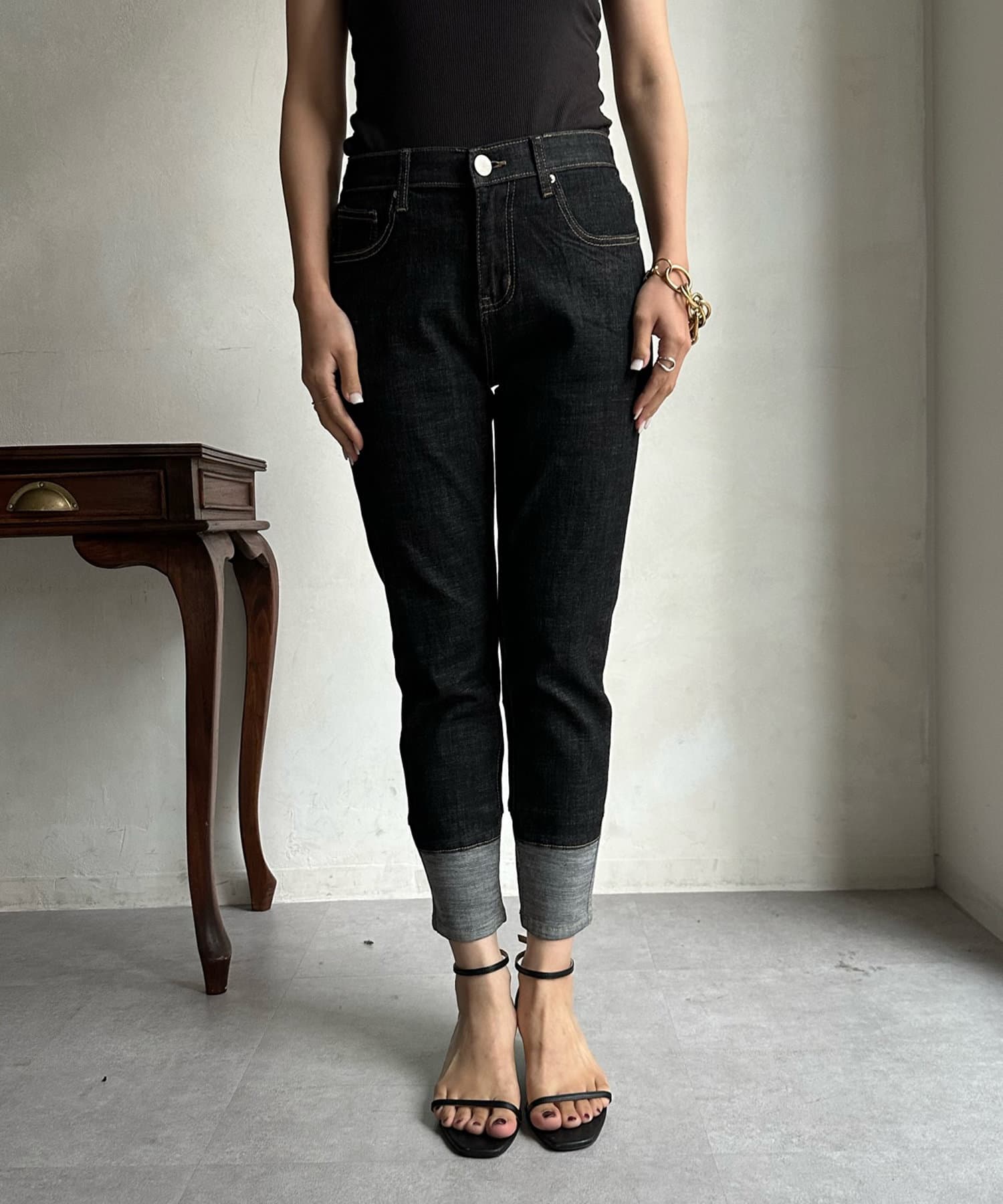【INDIMARK】【WEB限定】折り返し風デザインボーイフレンドデニム