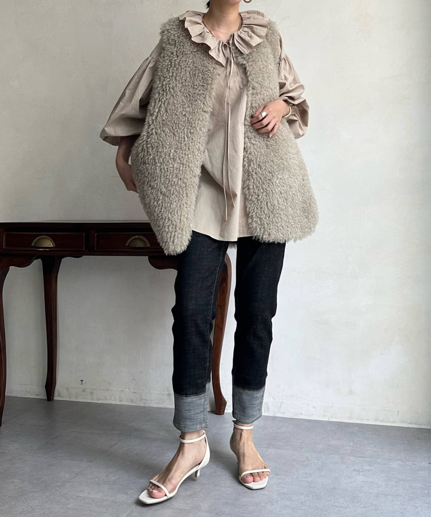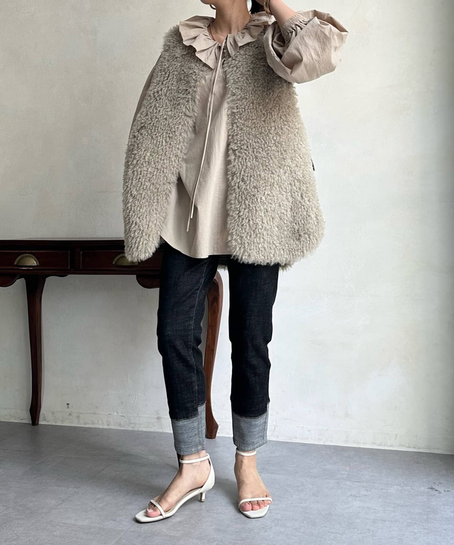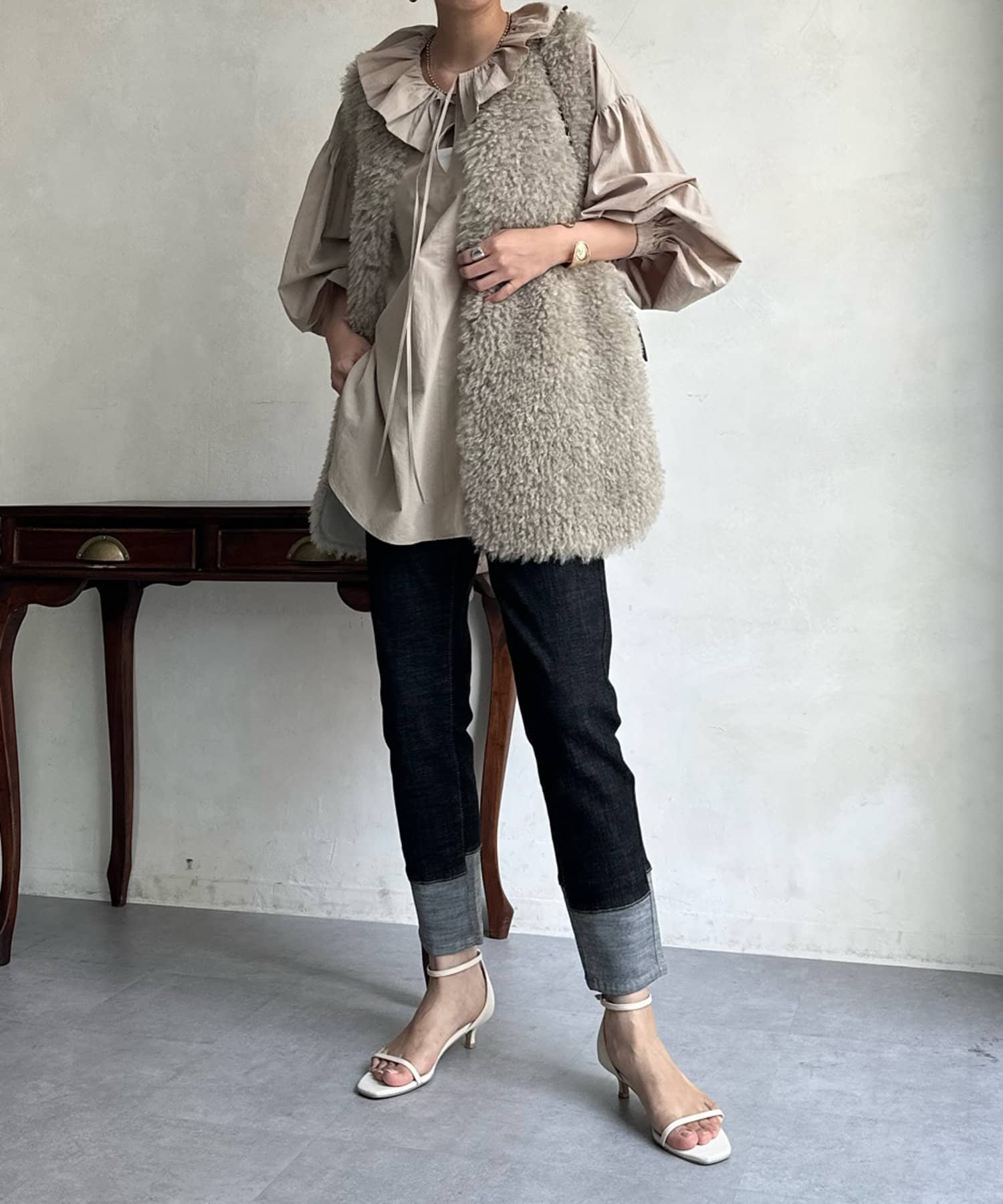 【INDIMARK】【WEB限定】折り返し風デザインボーイフレンドデニム
