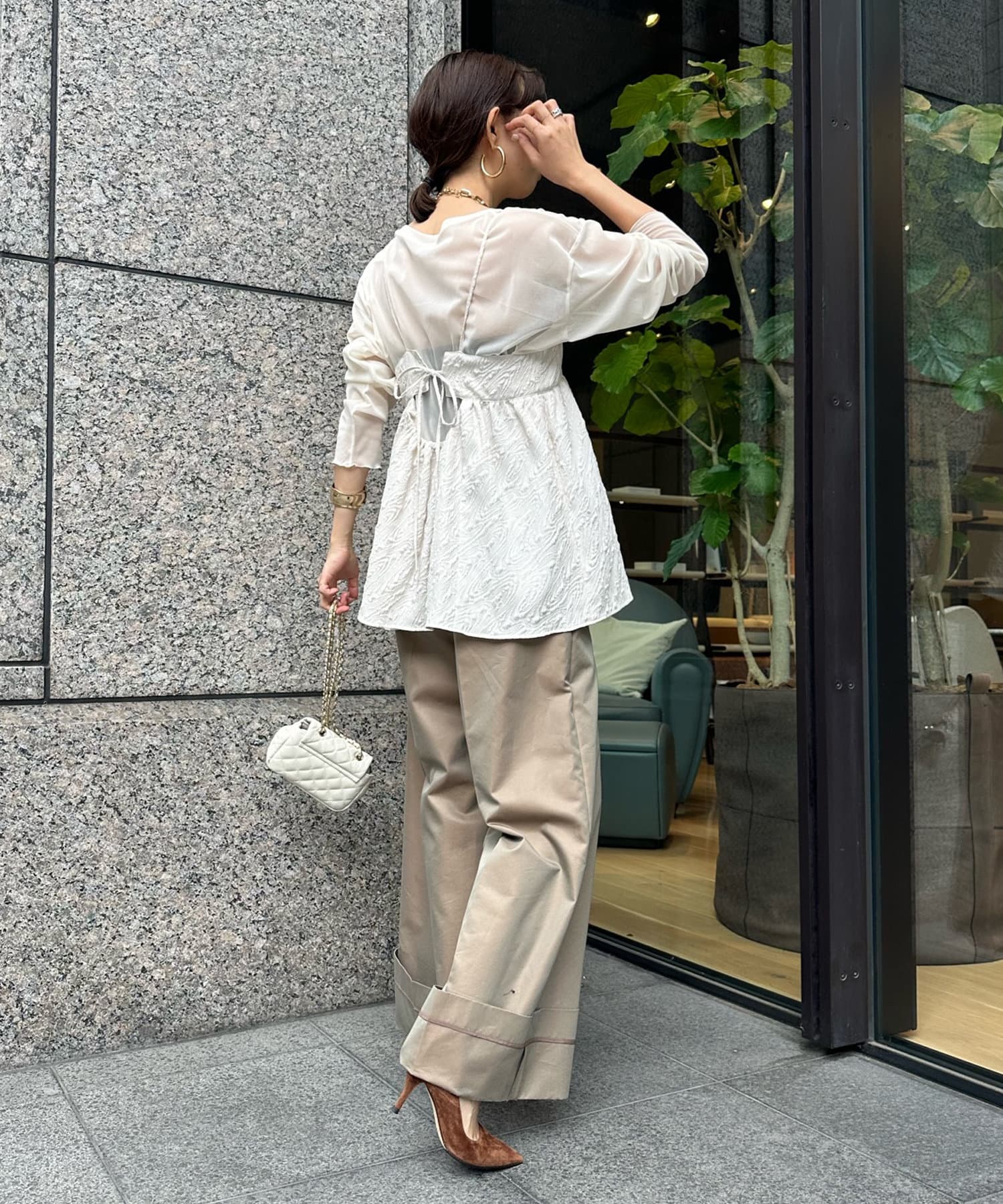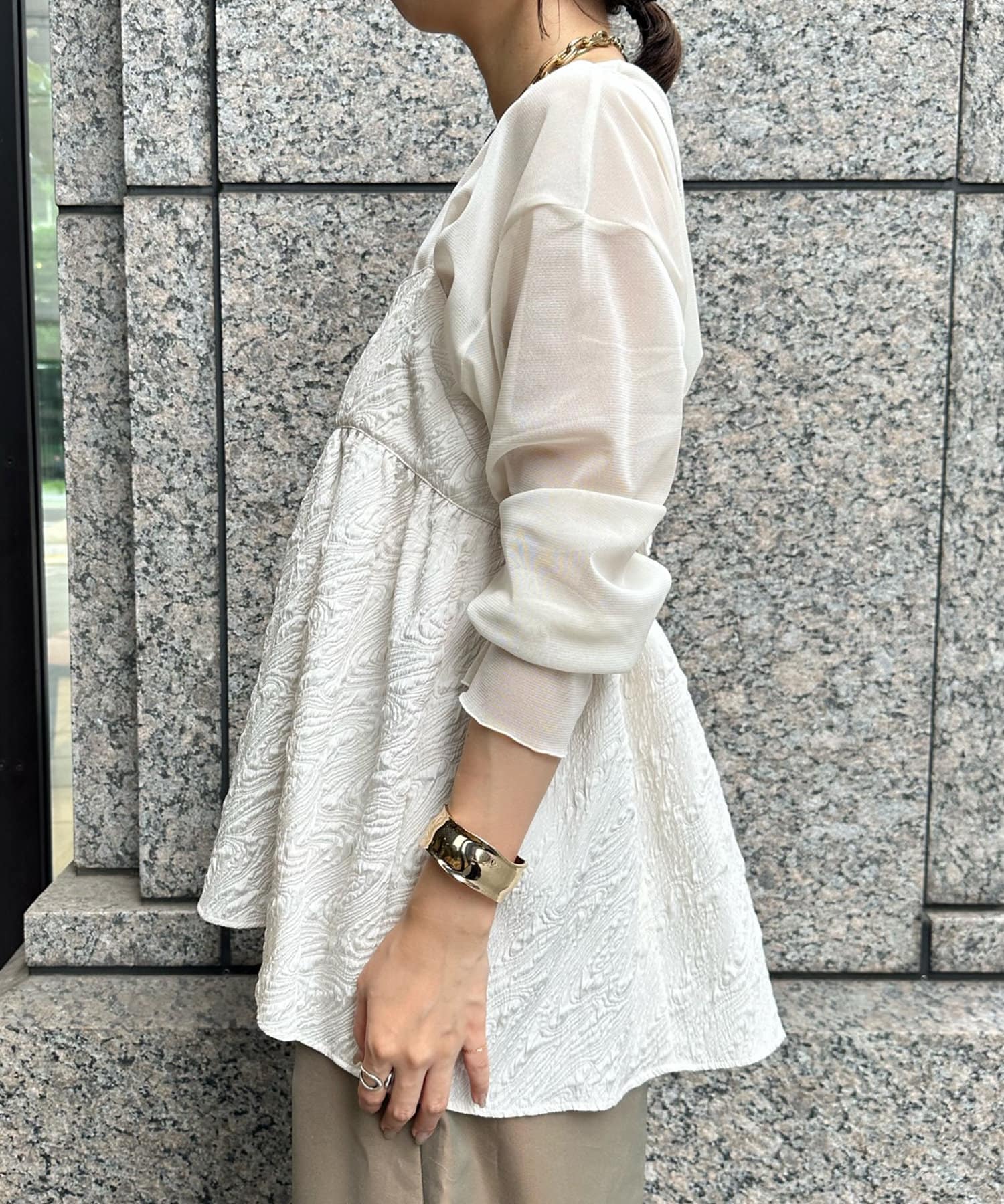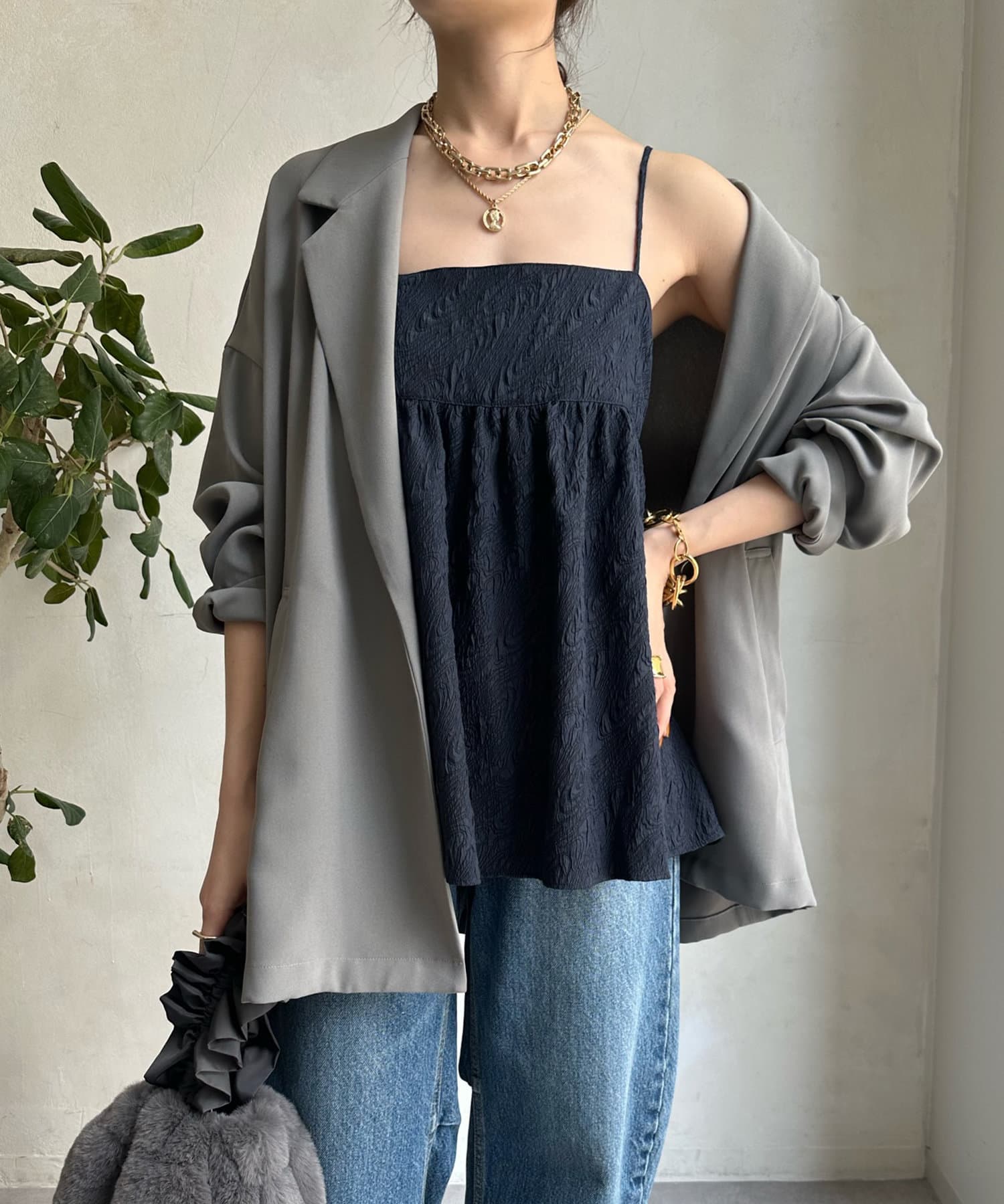 表面感のあるジャガード素材が今らしさをぐっと引き上げます。