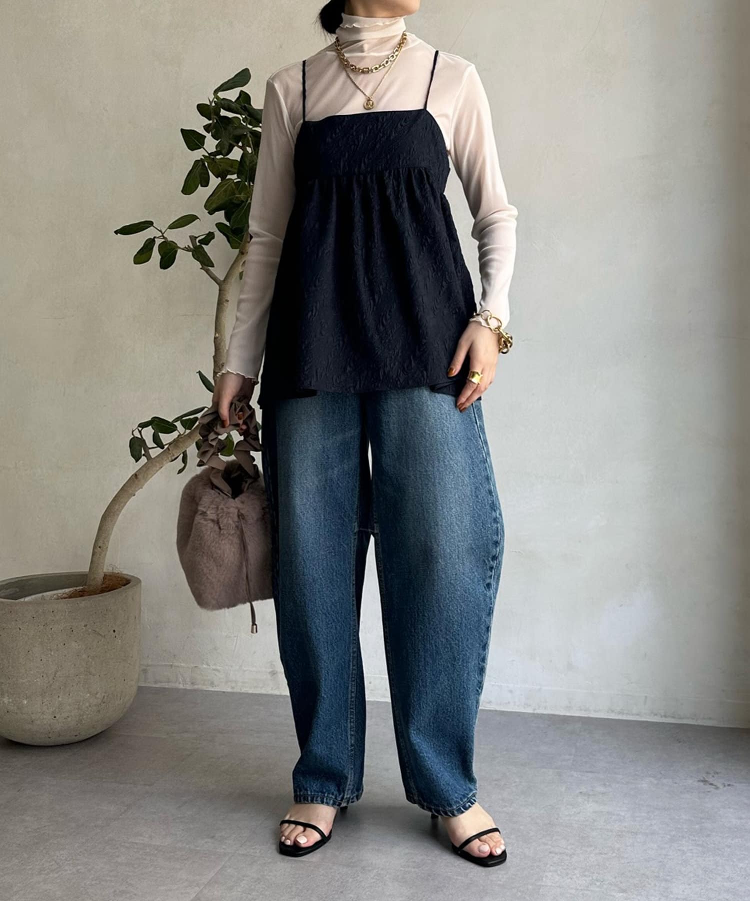 ・トレンドのペプラムキャミ