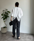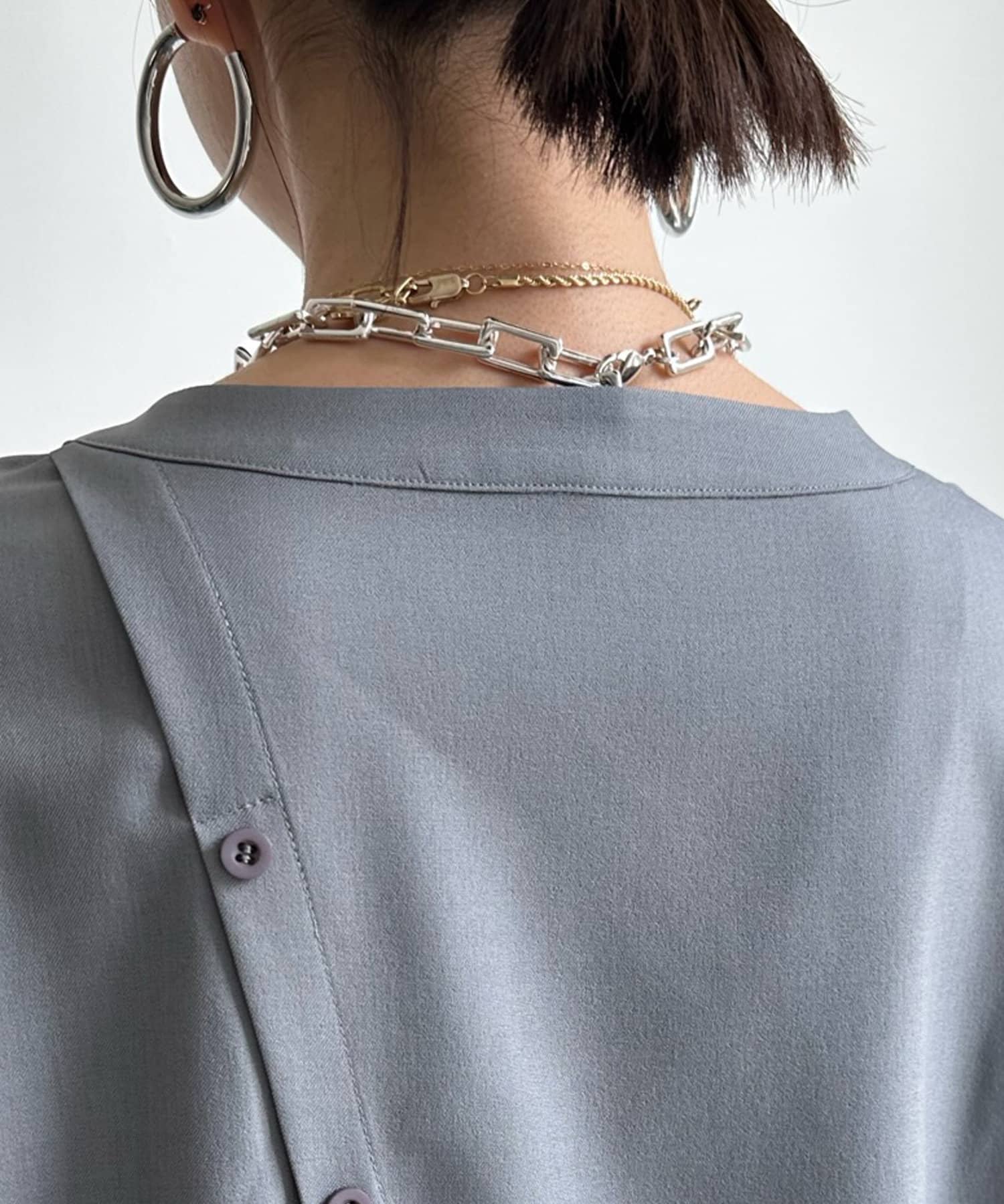 首元はスキッパーデザインに、バックスタイルはボタンでデザインをプラス。
