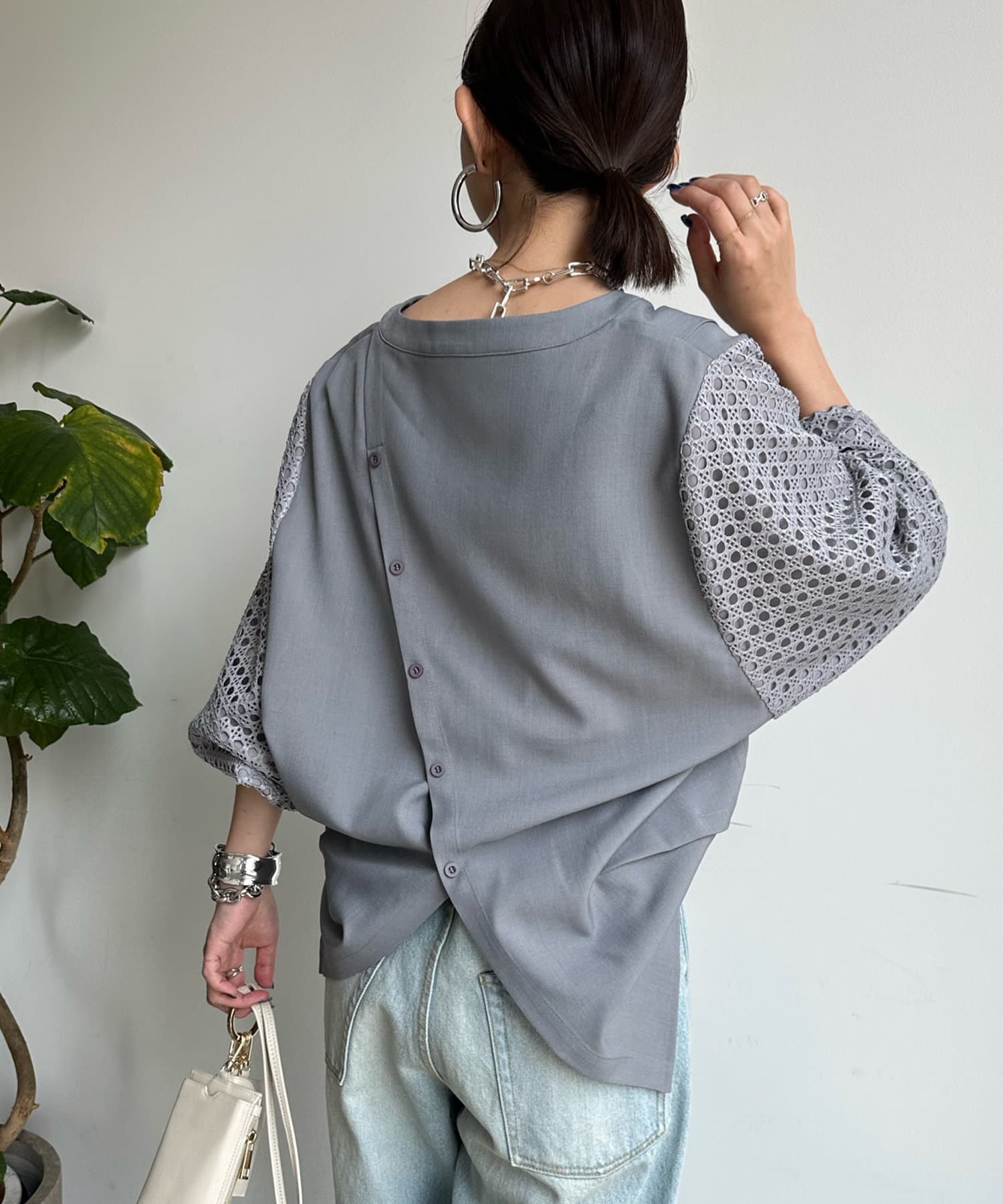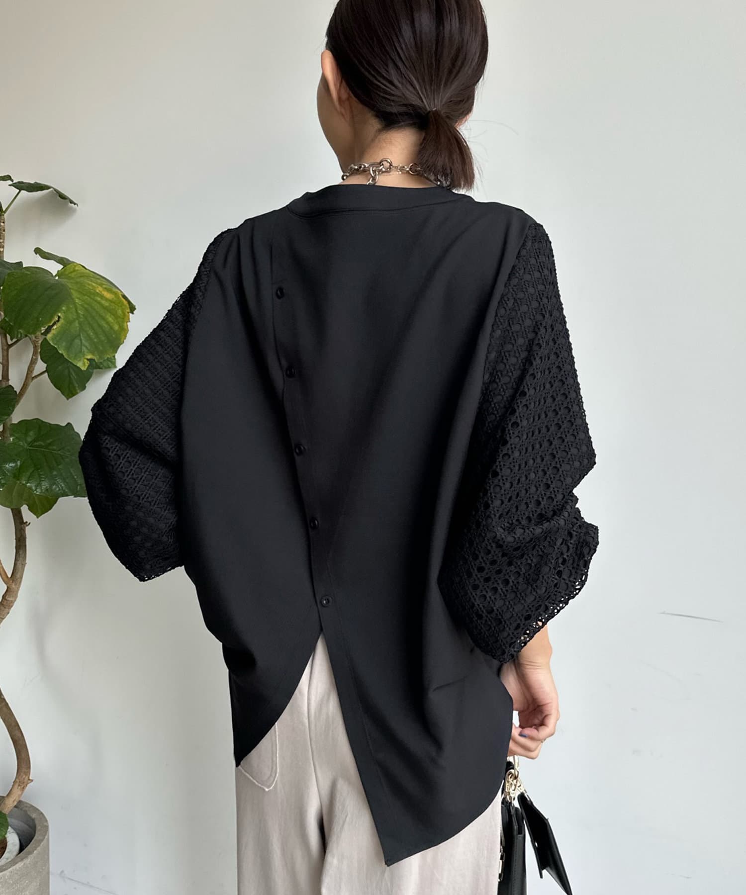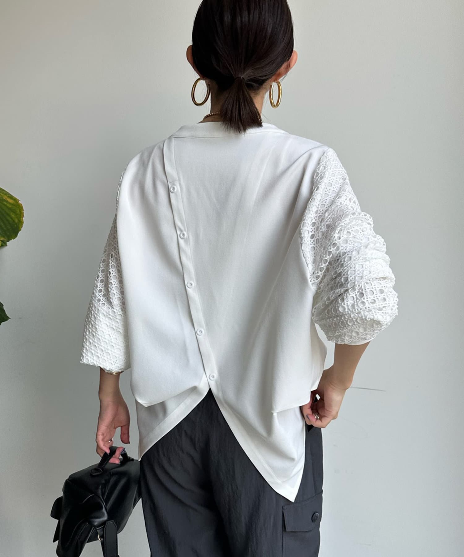 【一部WEB限定カラー】バックボタン袖レースブラウス