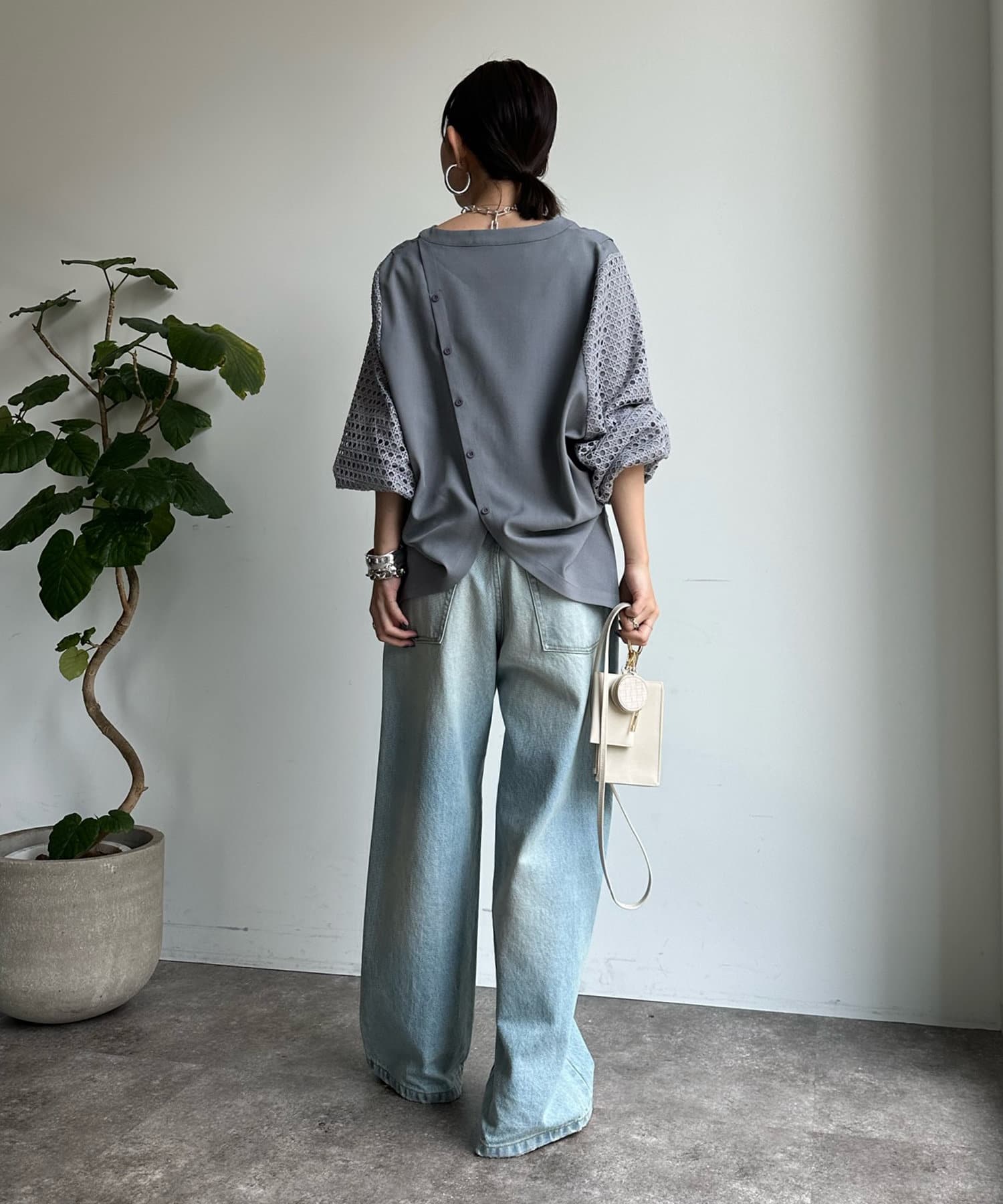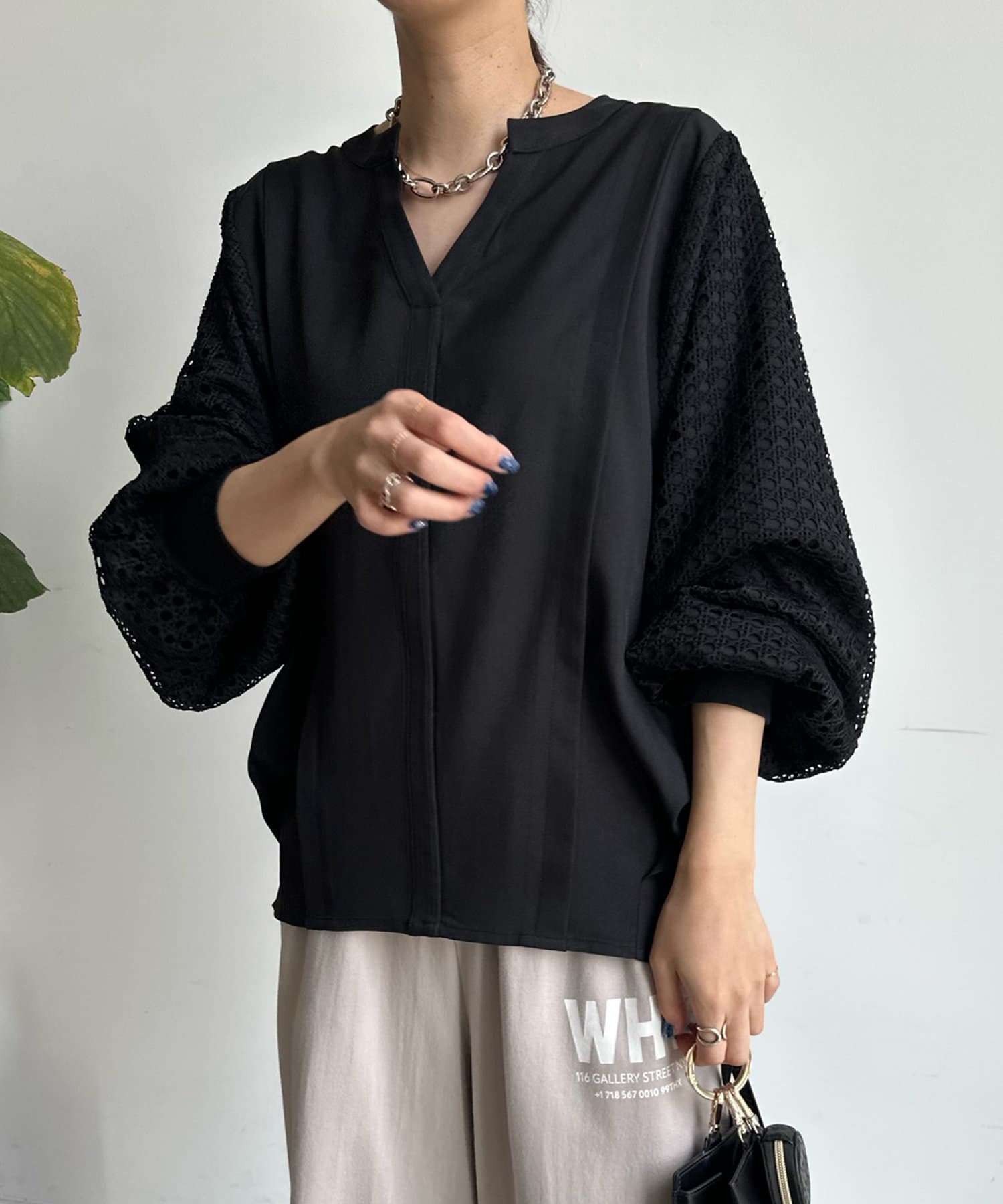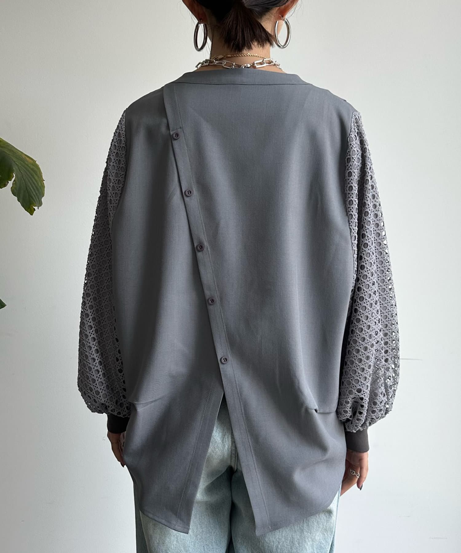 【一部WEB限定カラー】バックボタン袖レースブラウス