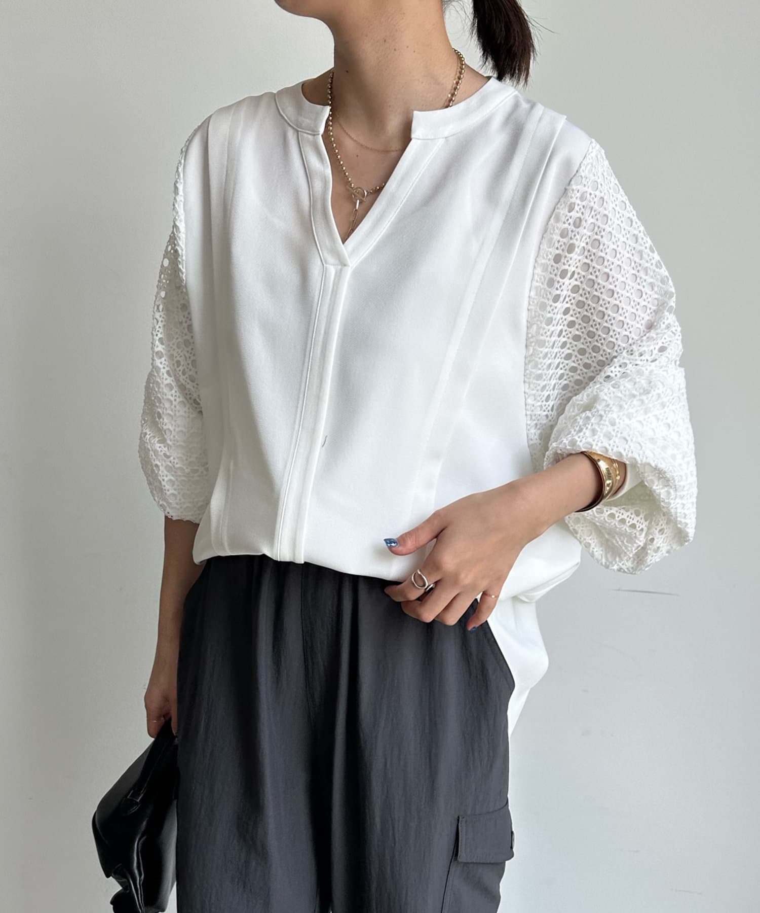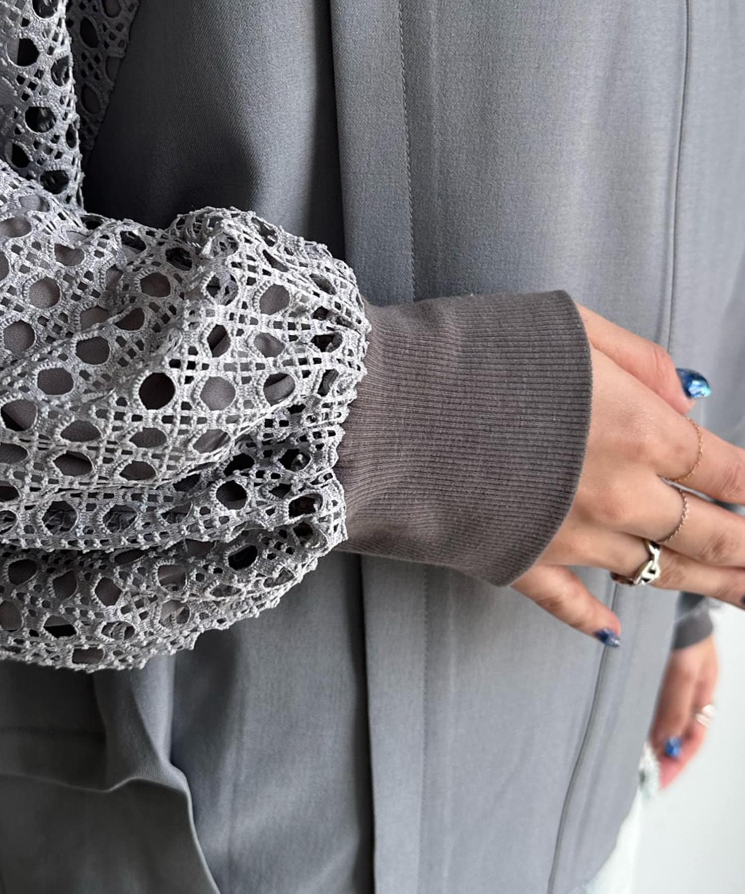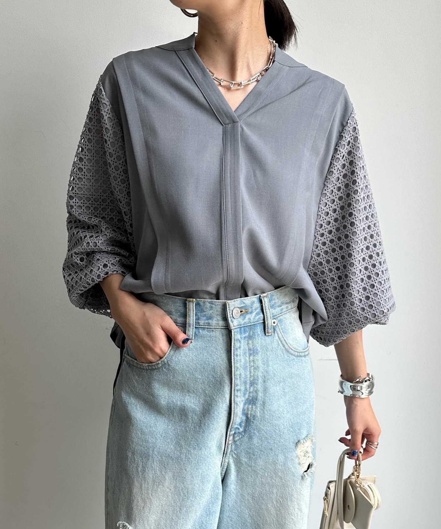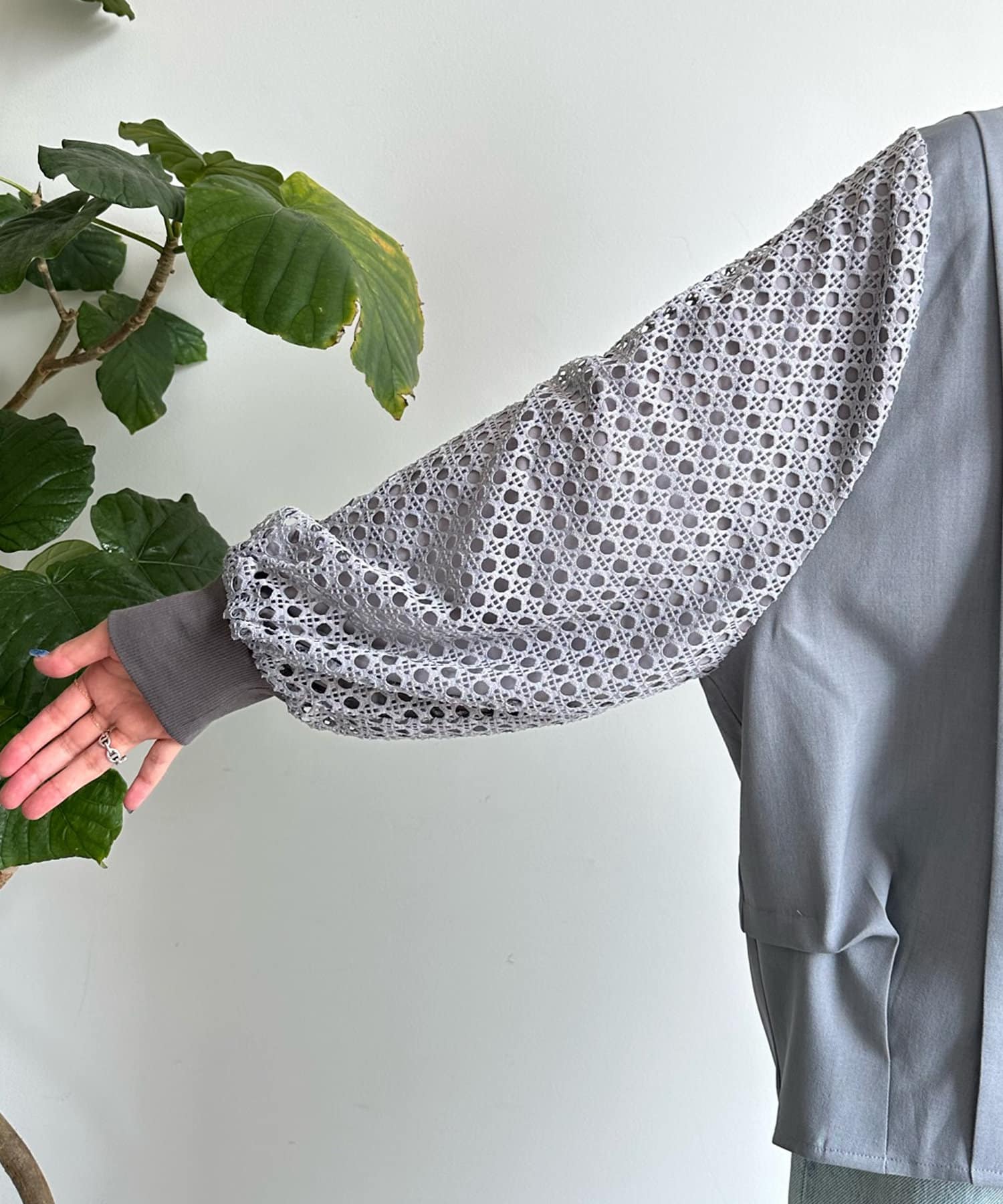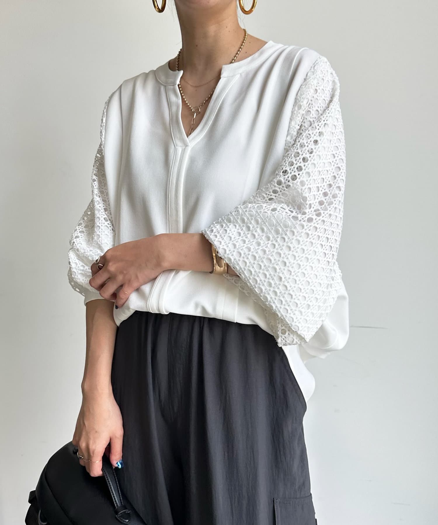 また、お袖のみレース素材に切り替えることで抜け感のある印象に。