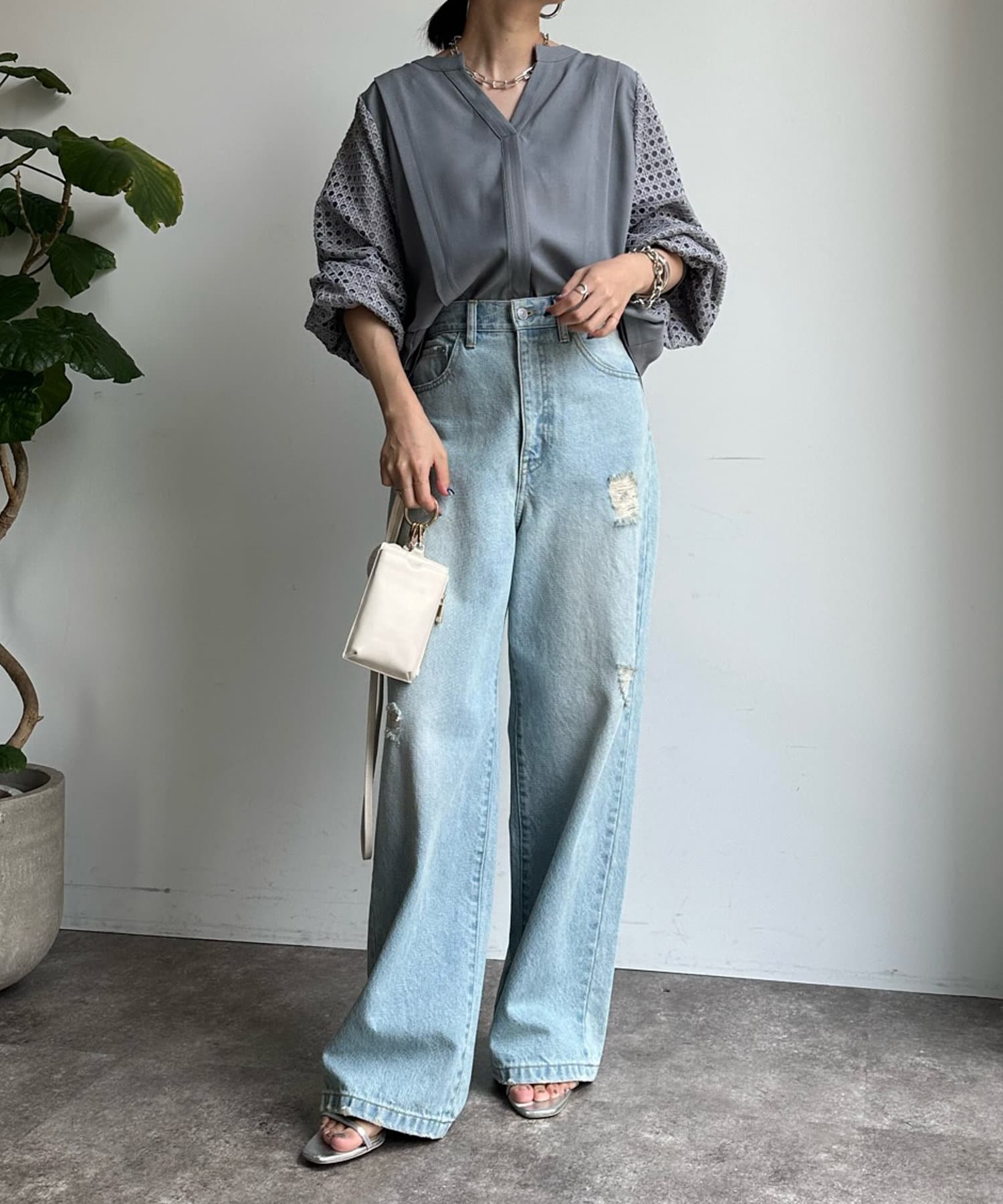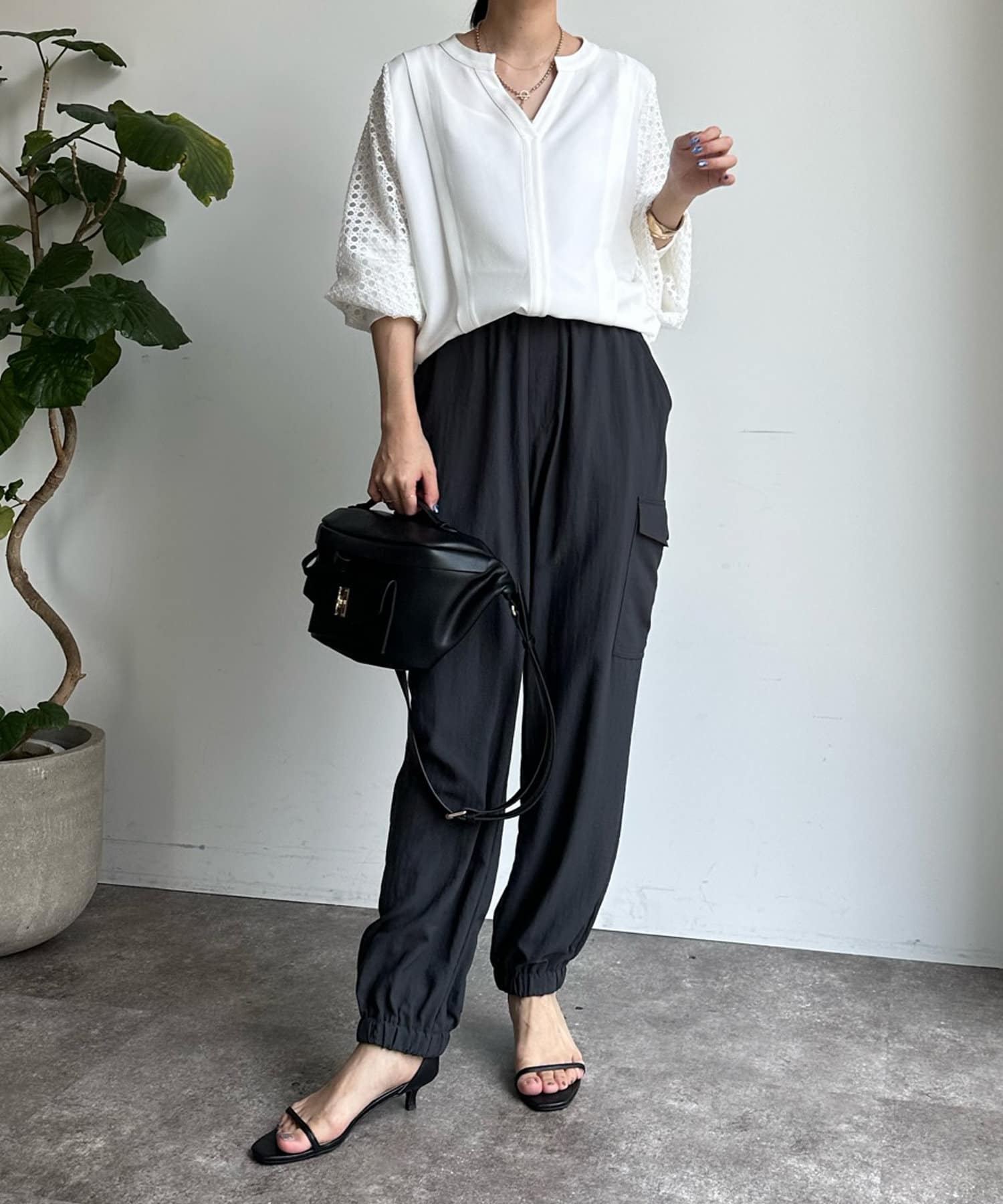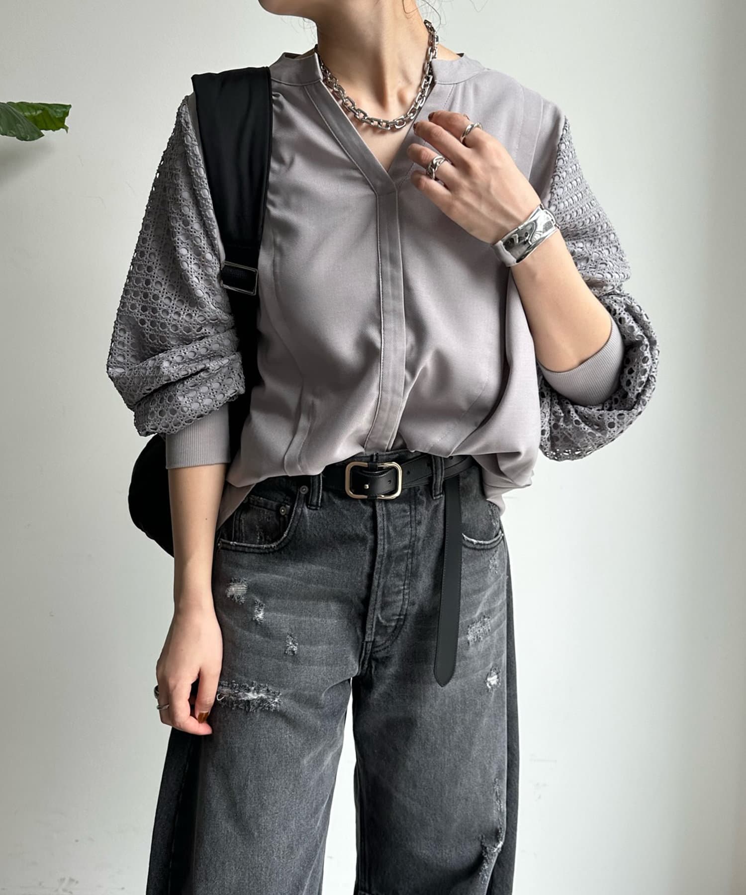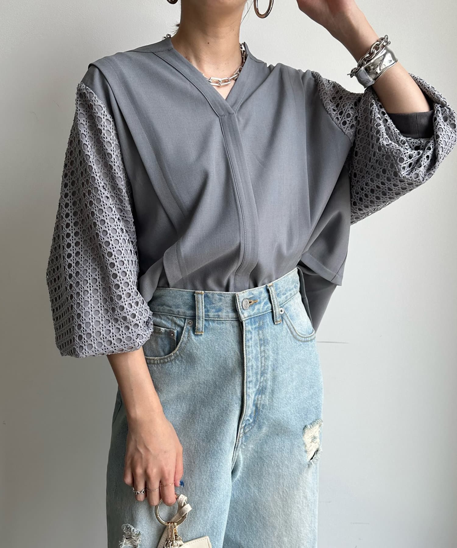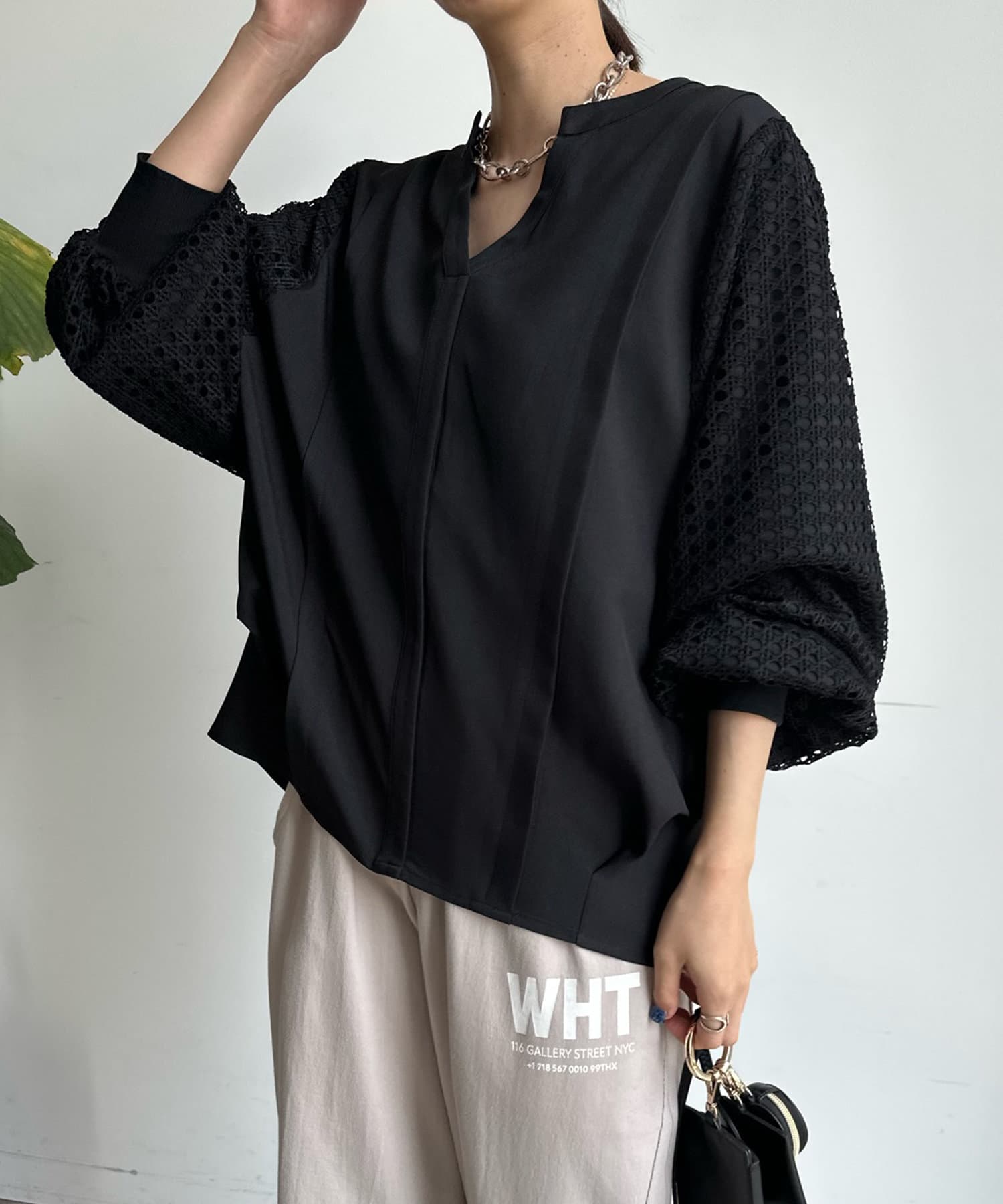 また、お袖のみレース素材に切り替えることで抜け感のある印象に。
