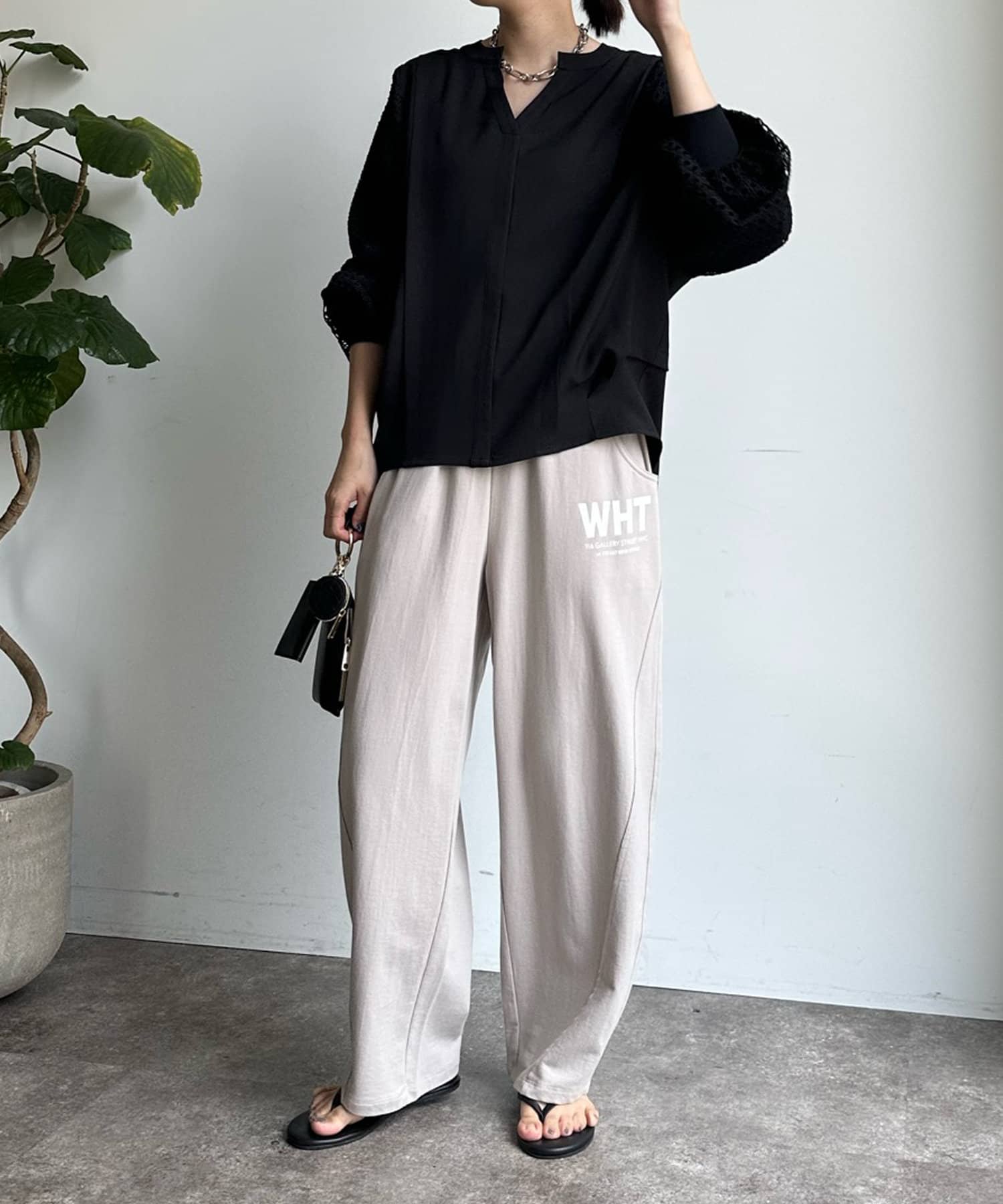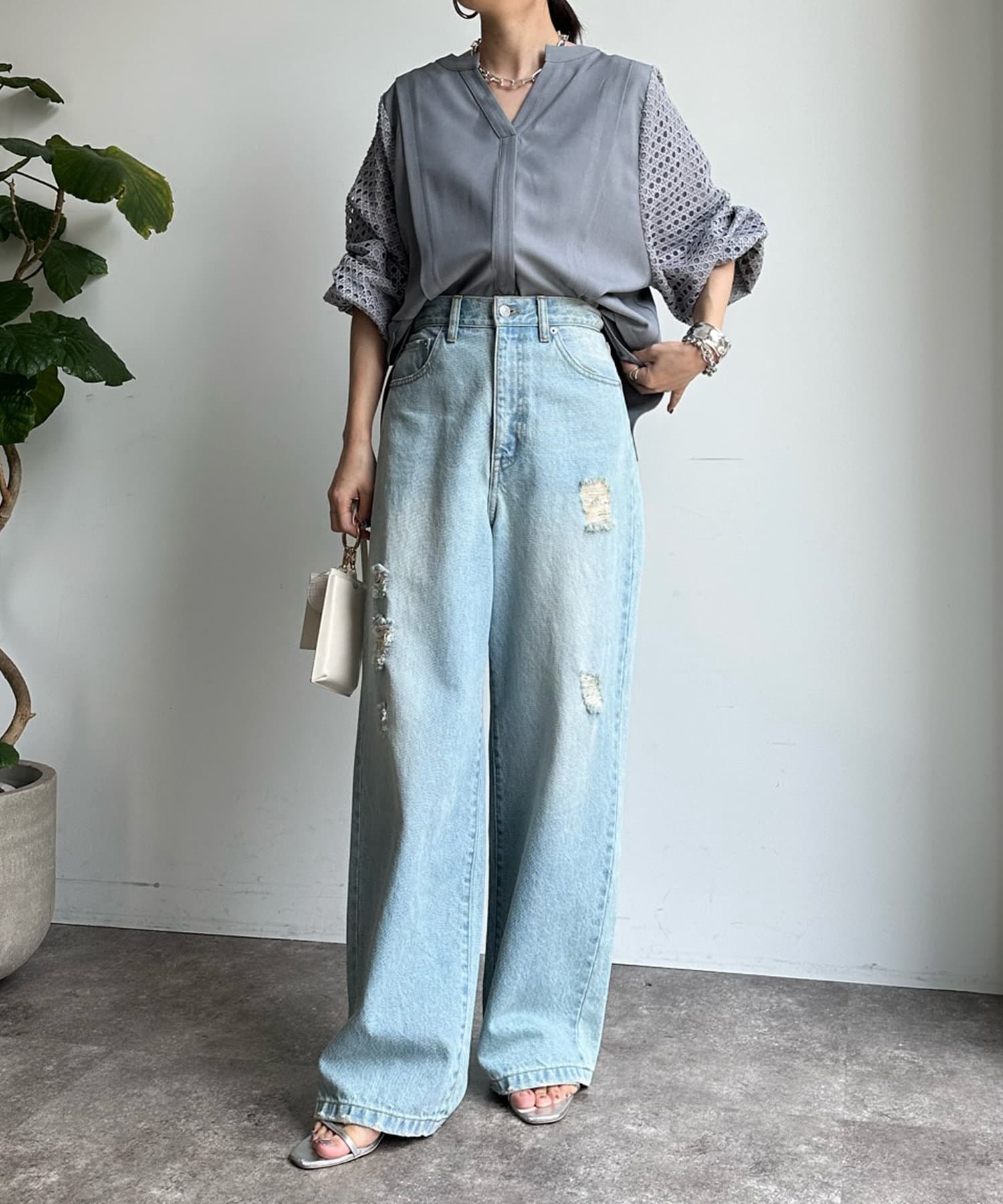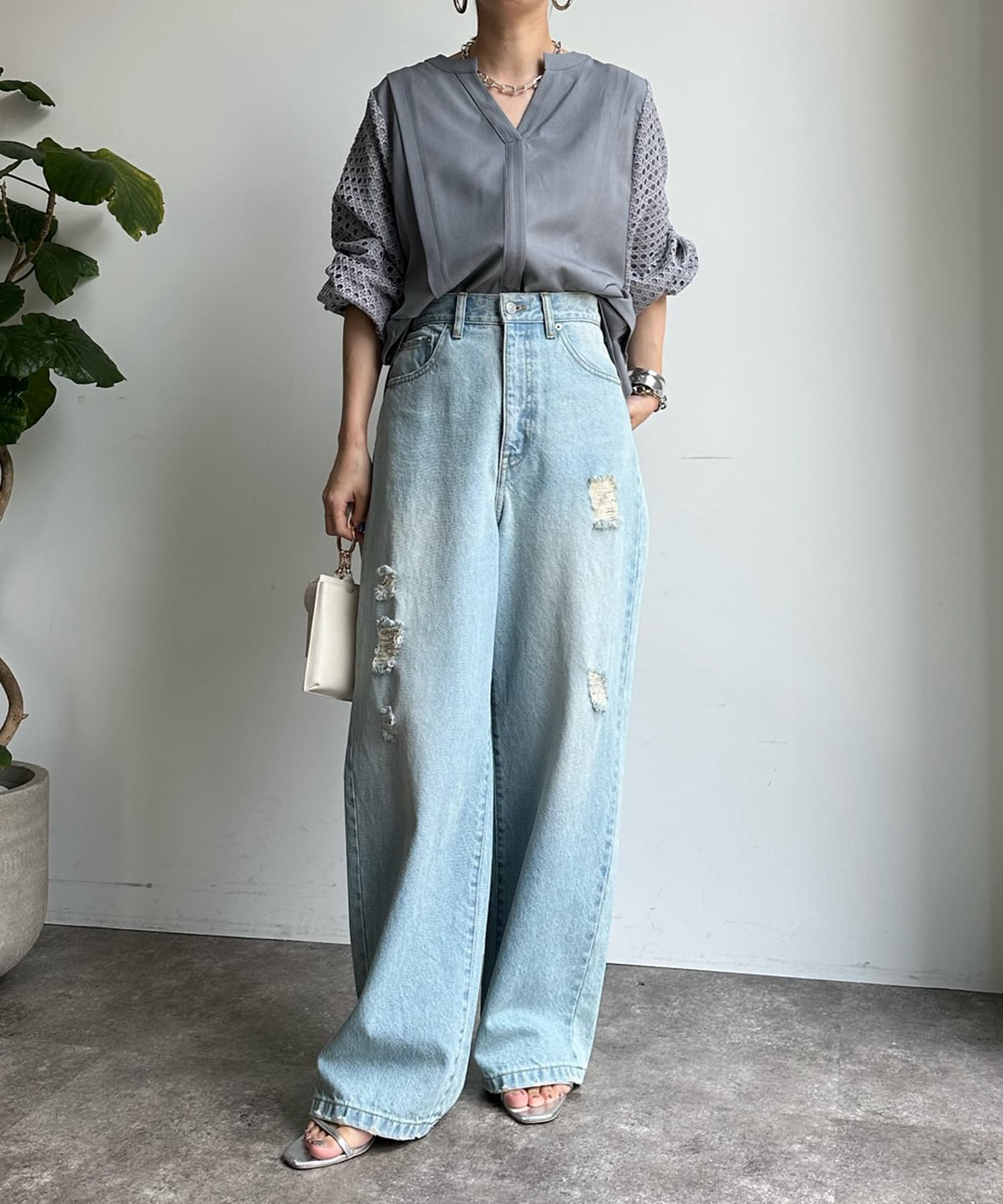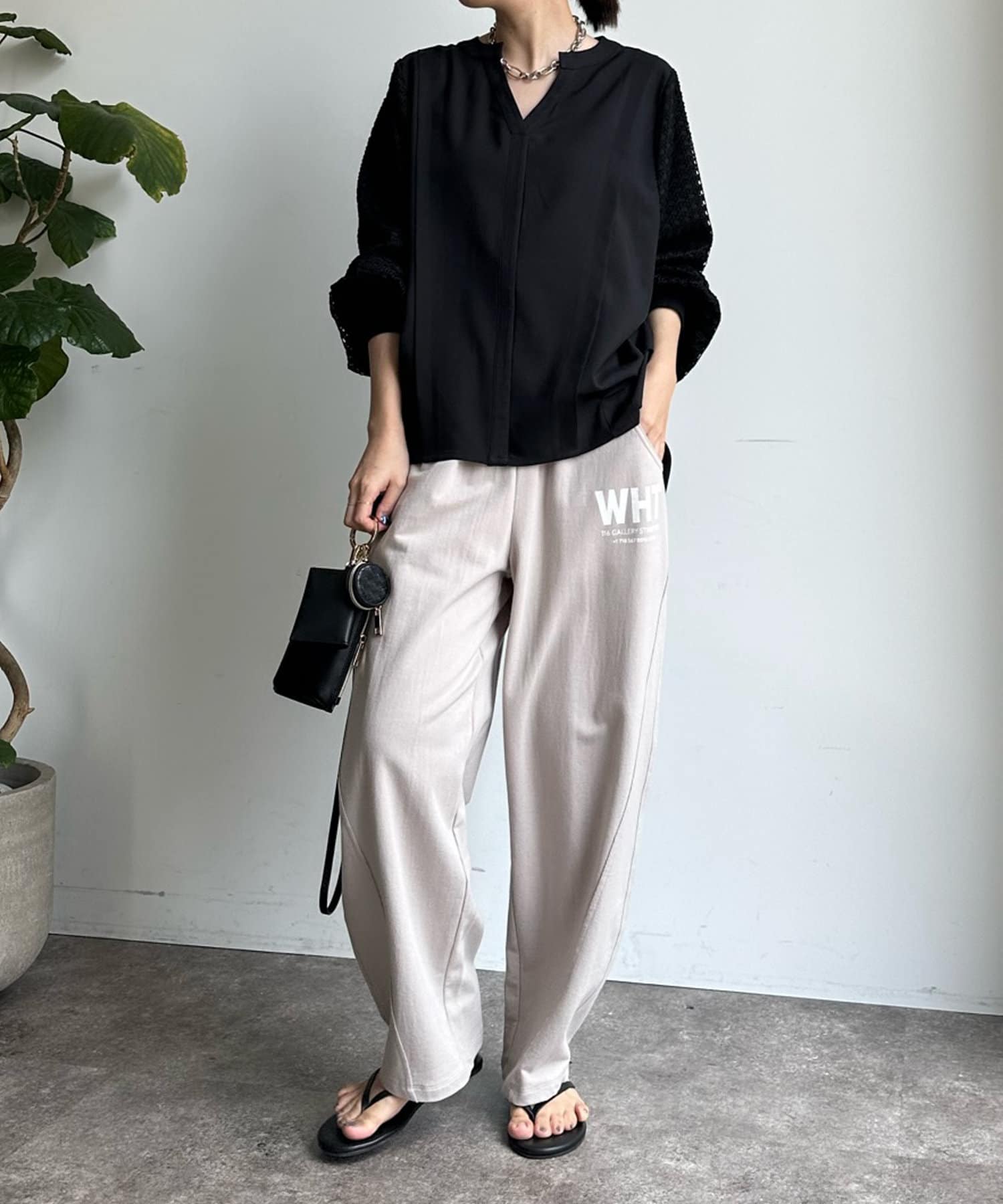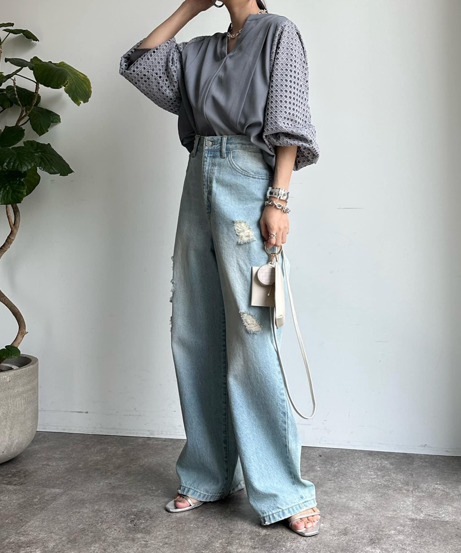 また、お袖のみレース素材に切り替えることで抜け感のある印象に。