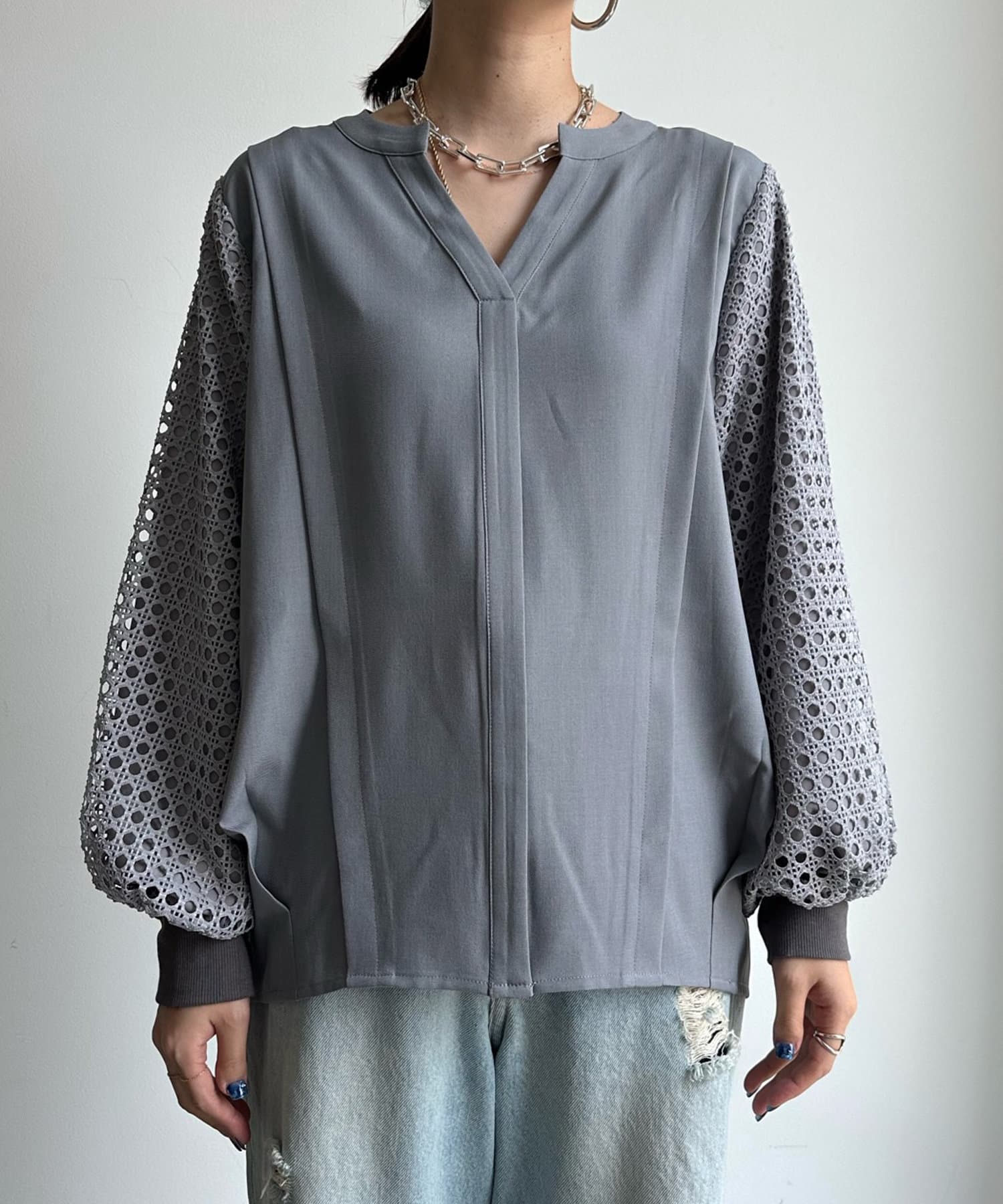 単色で一見シンプル見えするのに、拘りデザインがたっぷりの大人気ブラウスが袖部分が新しいレースデザインになり再登場!