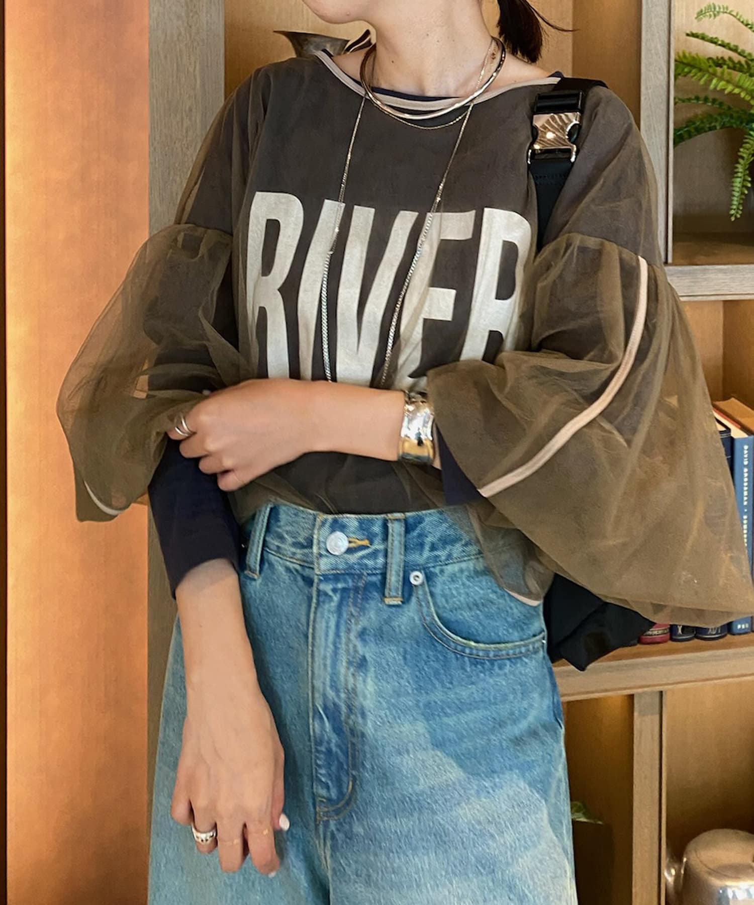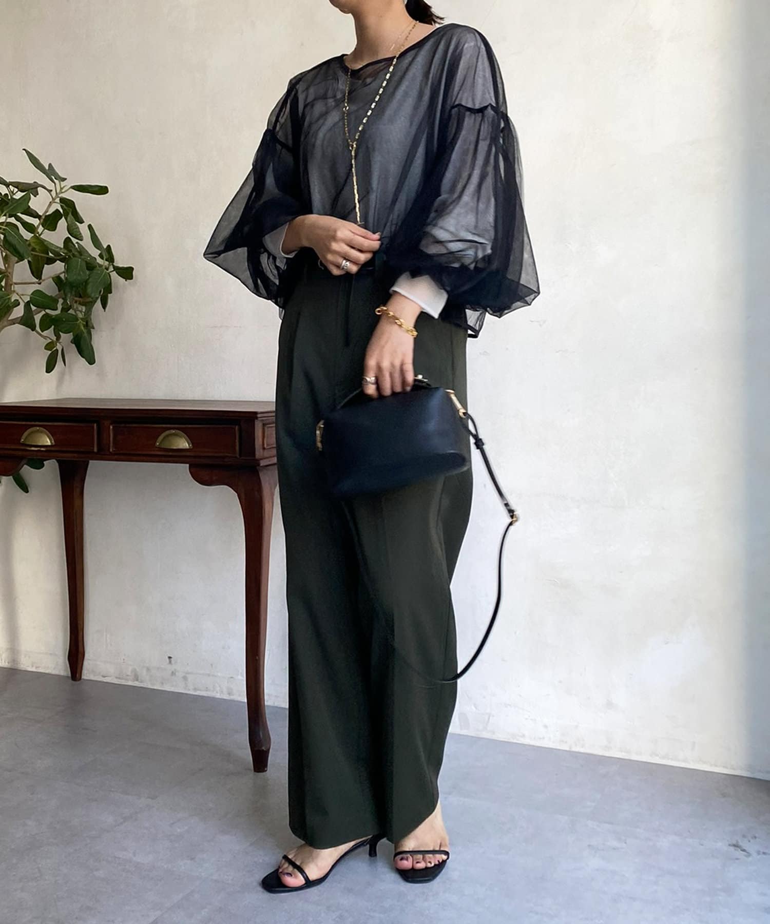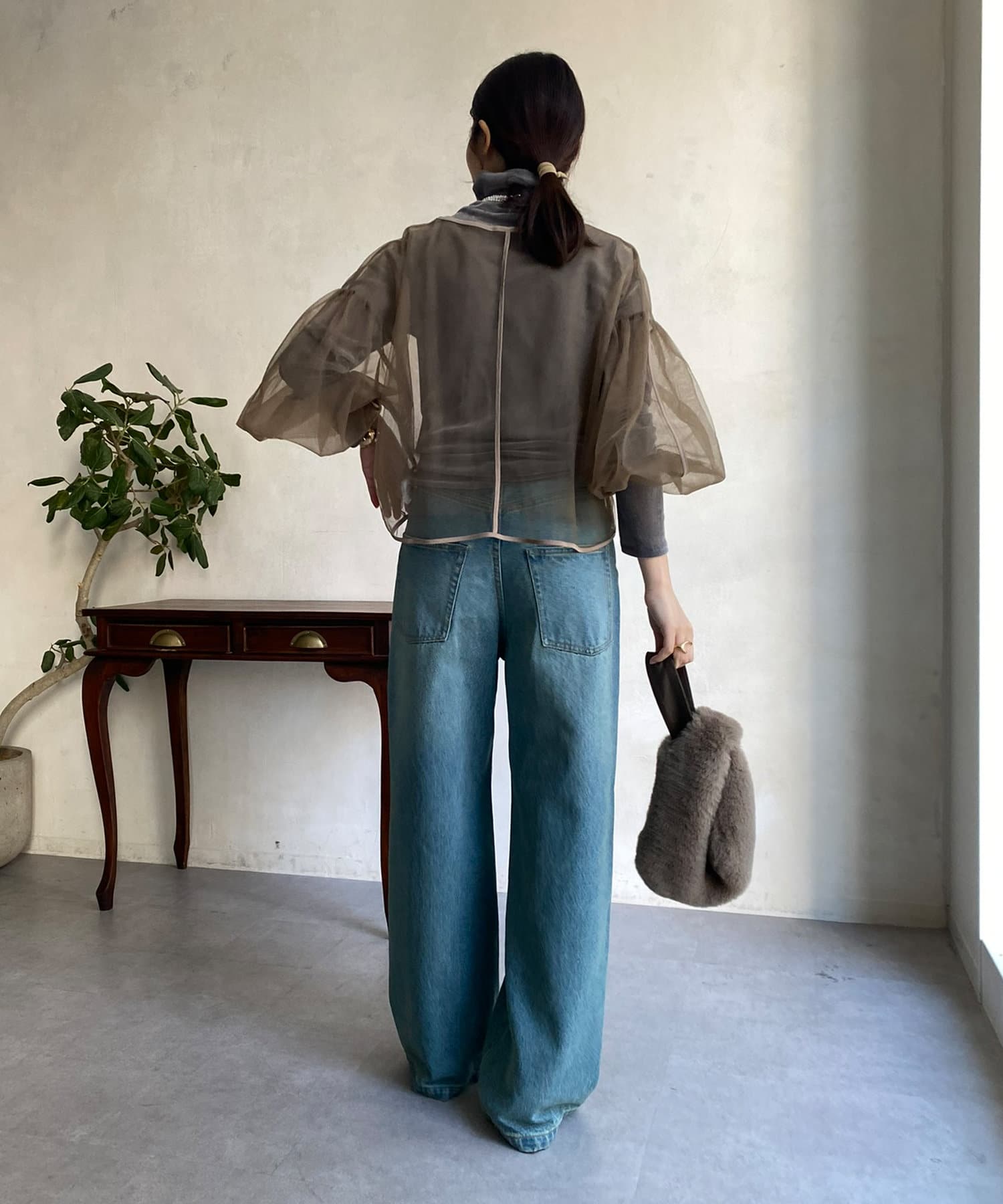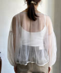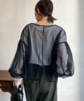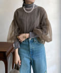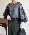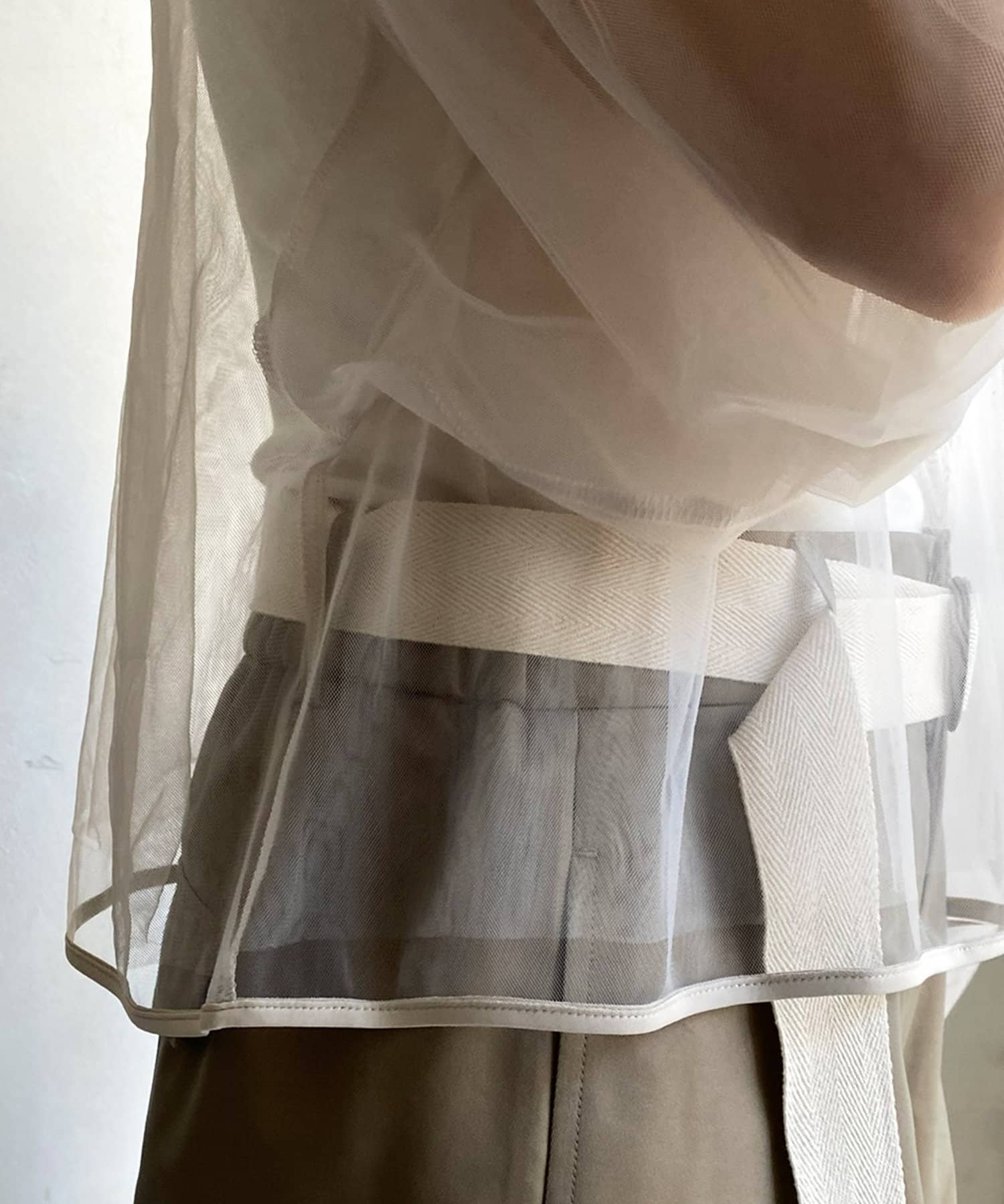 トレンドのシアー素材とボリューム袖を兼ね備えたチュールのブラウス。