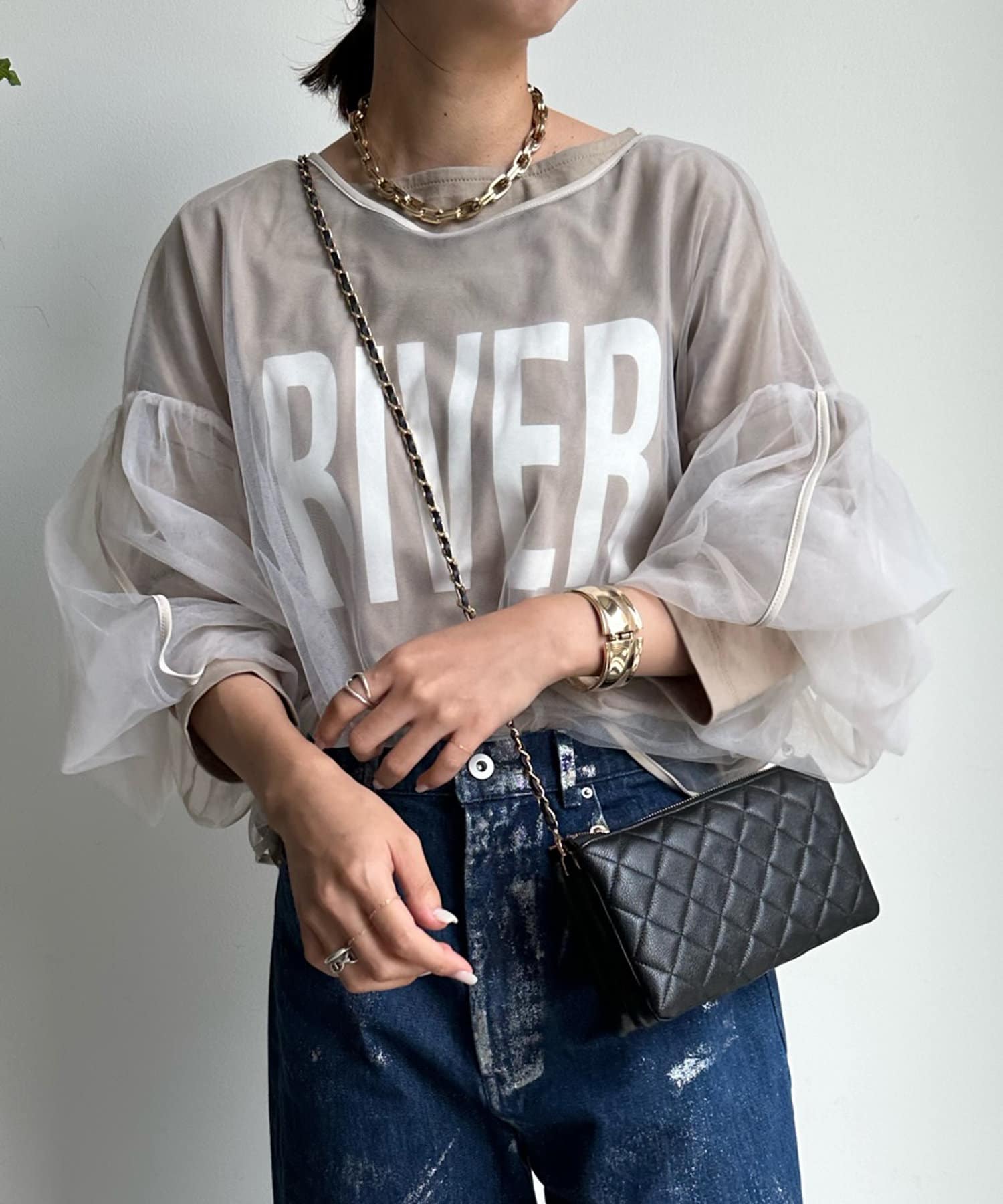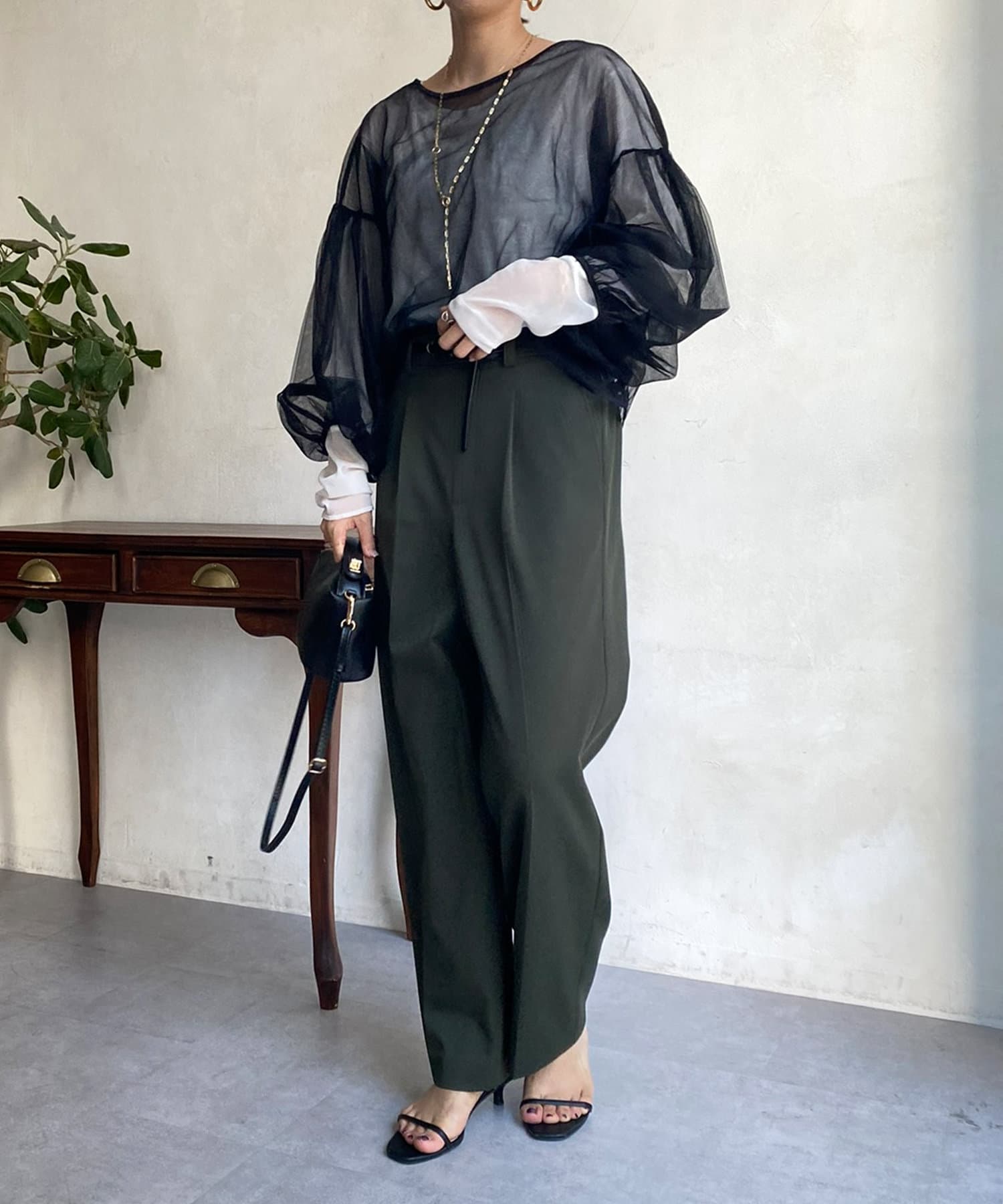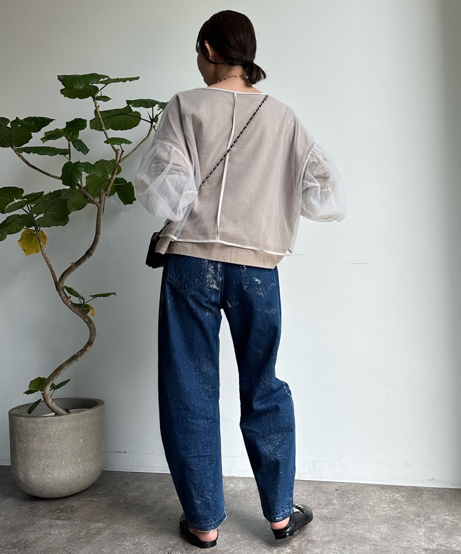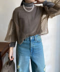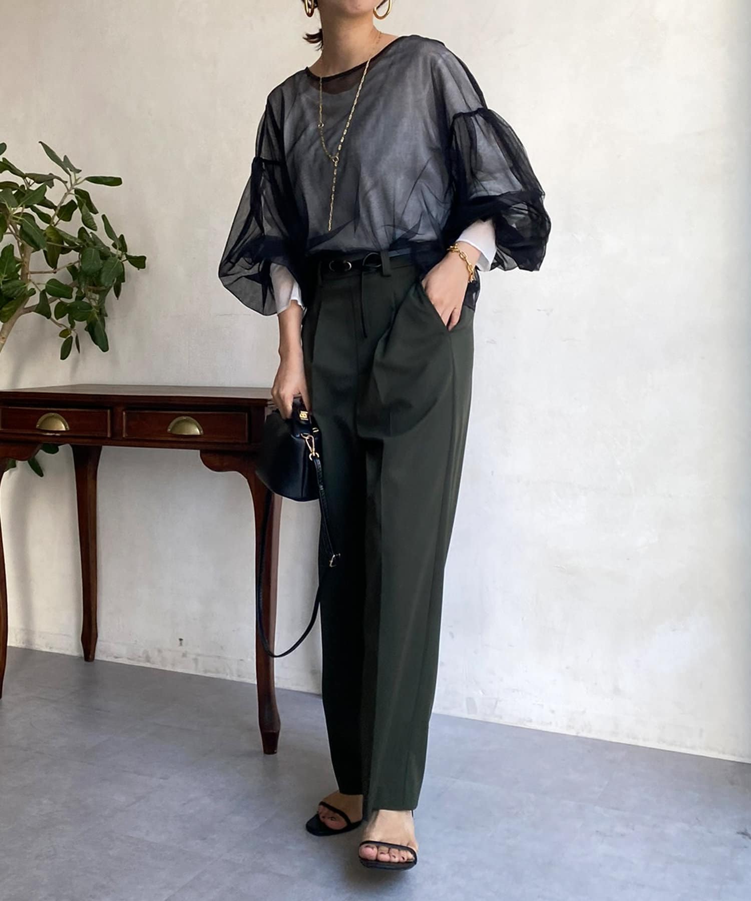 トレンドらしさをたくさん取り入れたチュールブラウス。