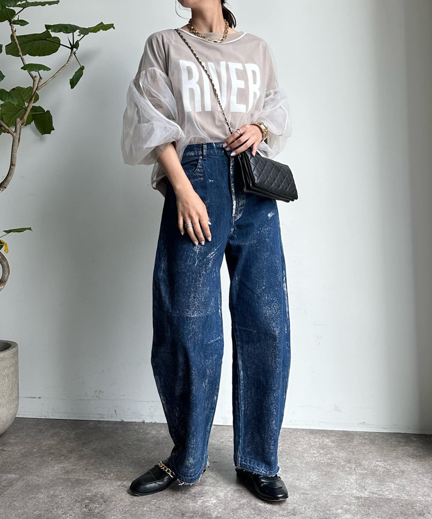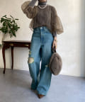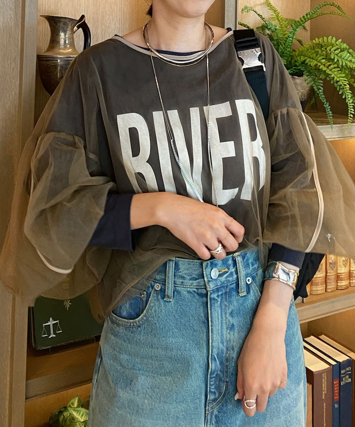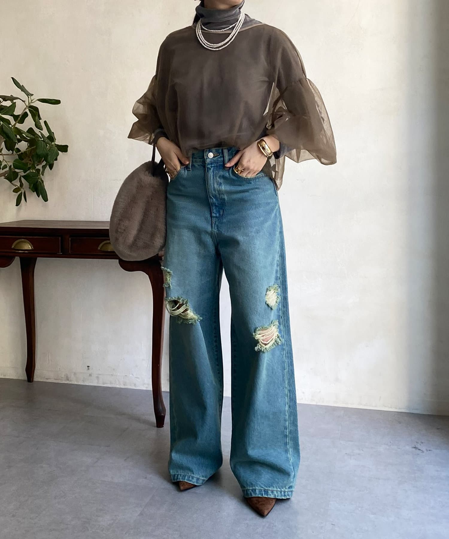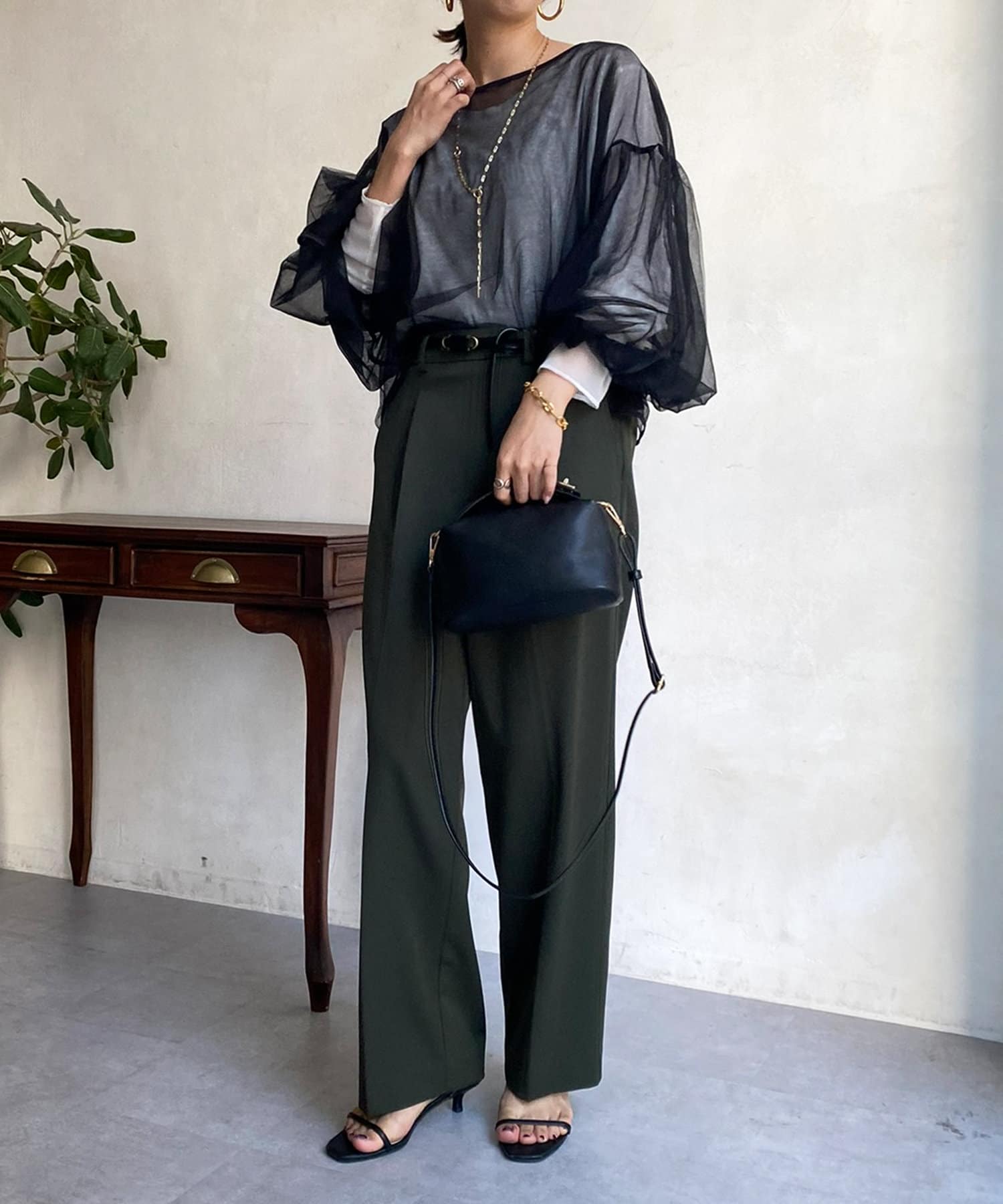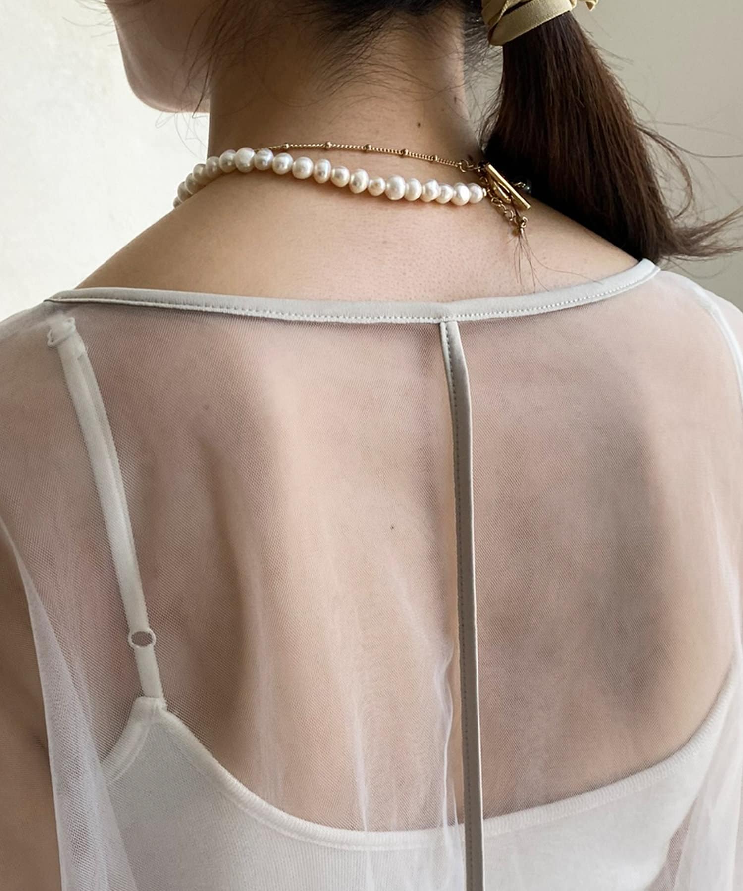 トレンドらしさをたくさん取り入れたチュールブラウス。