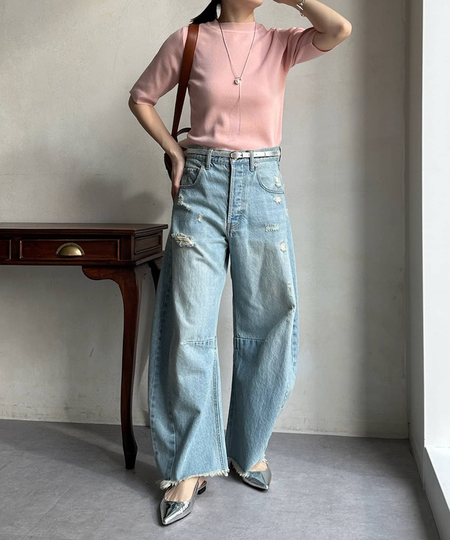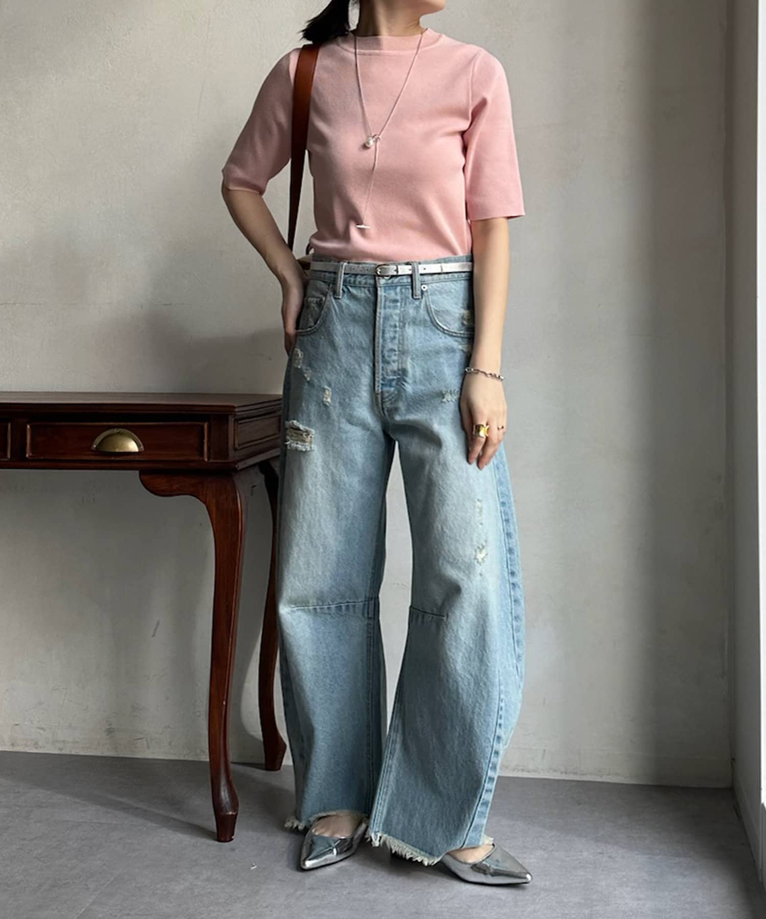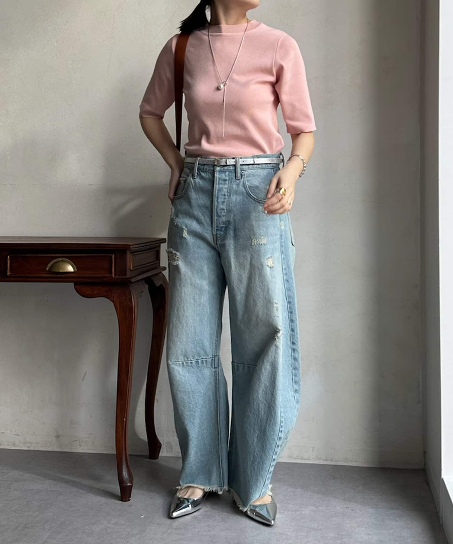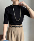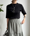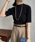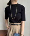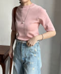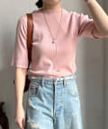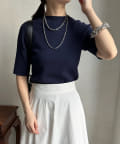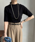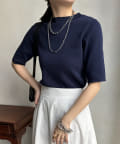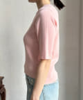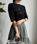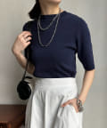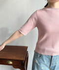 伸びやかで、薄手のニット素材を5分袖で仕上げ、長く着られる1枚に。