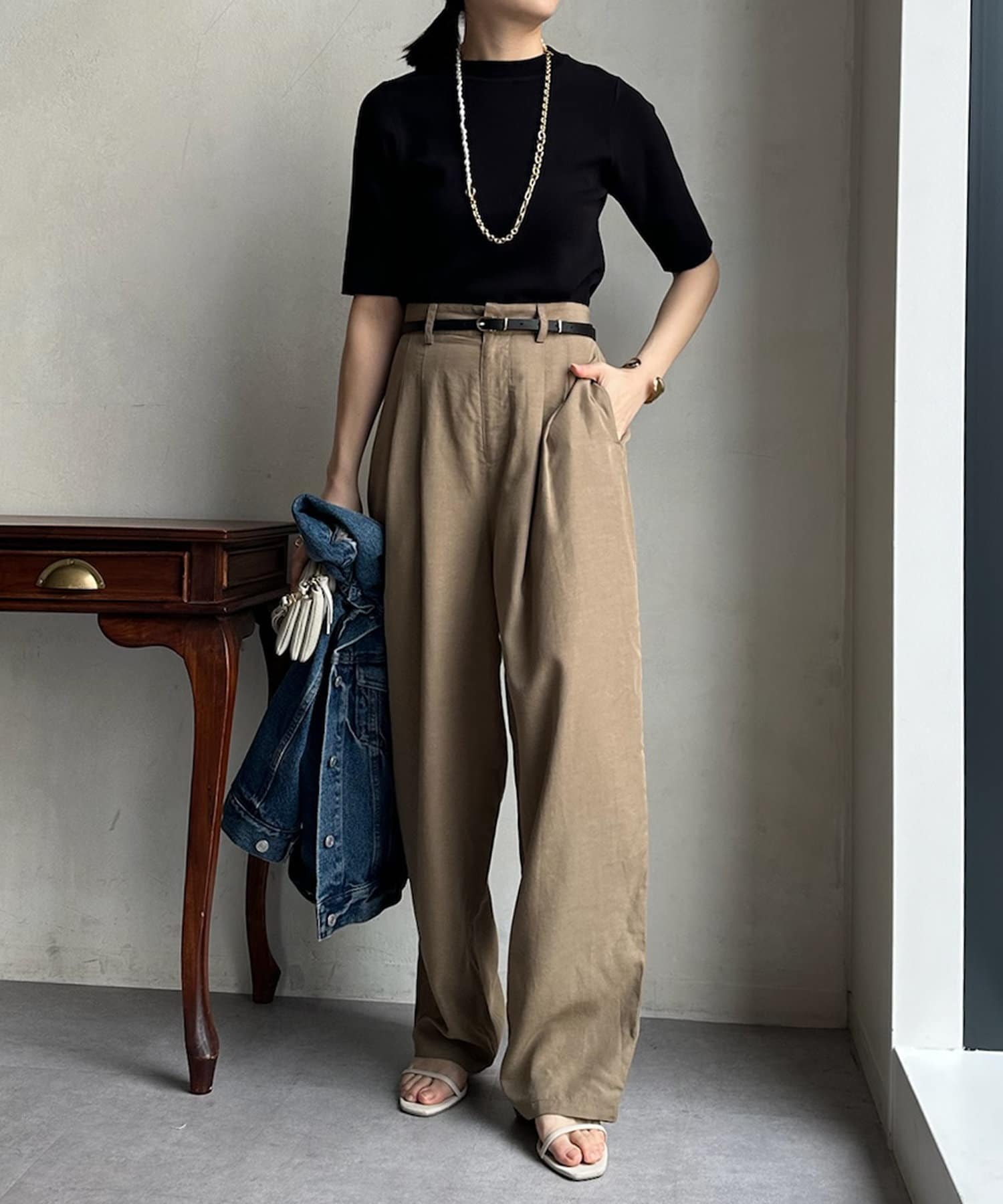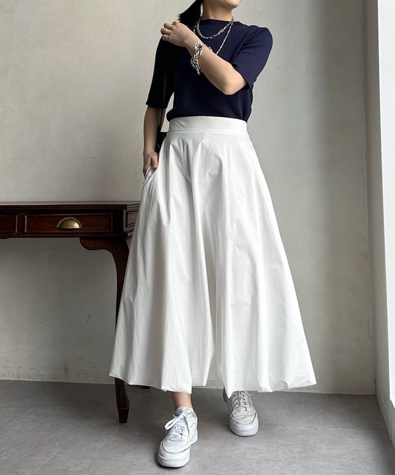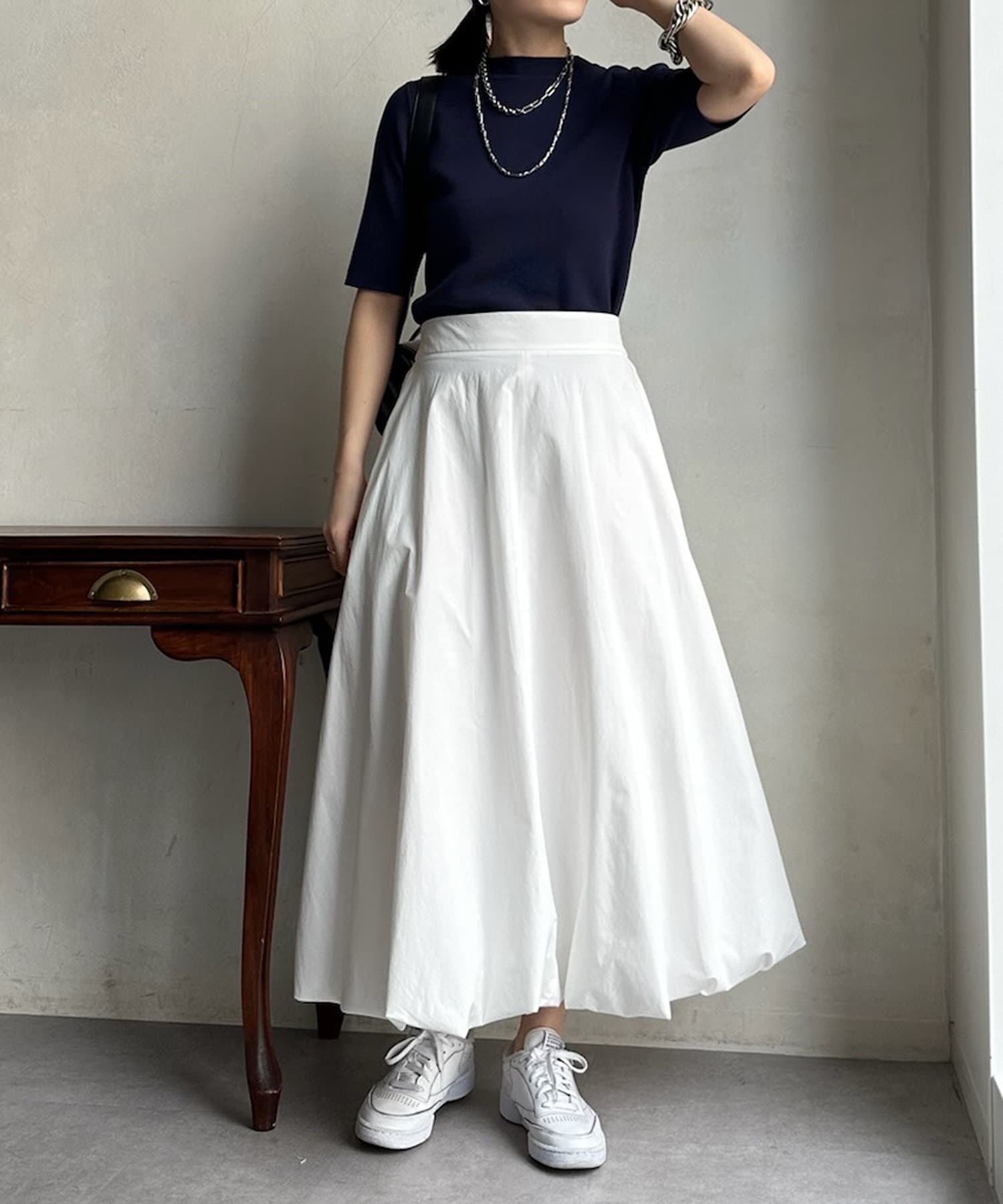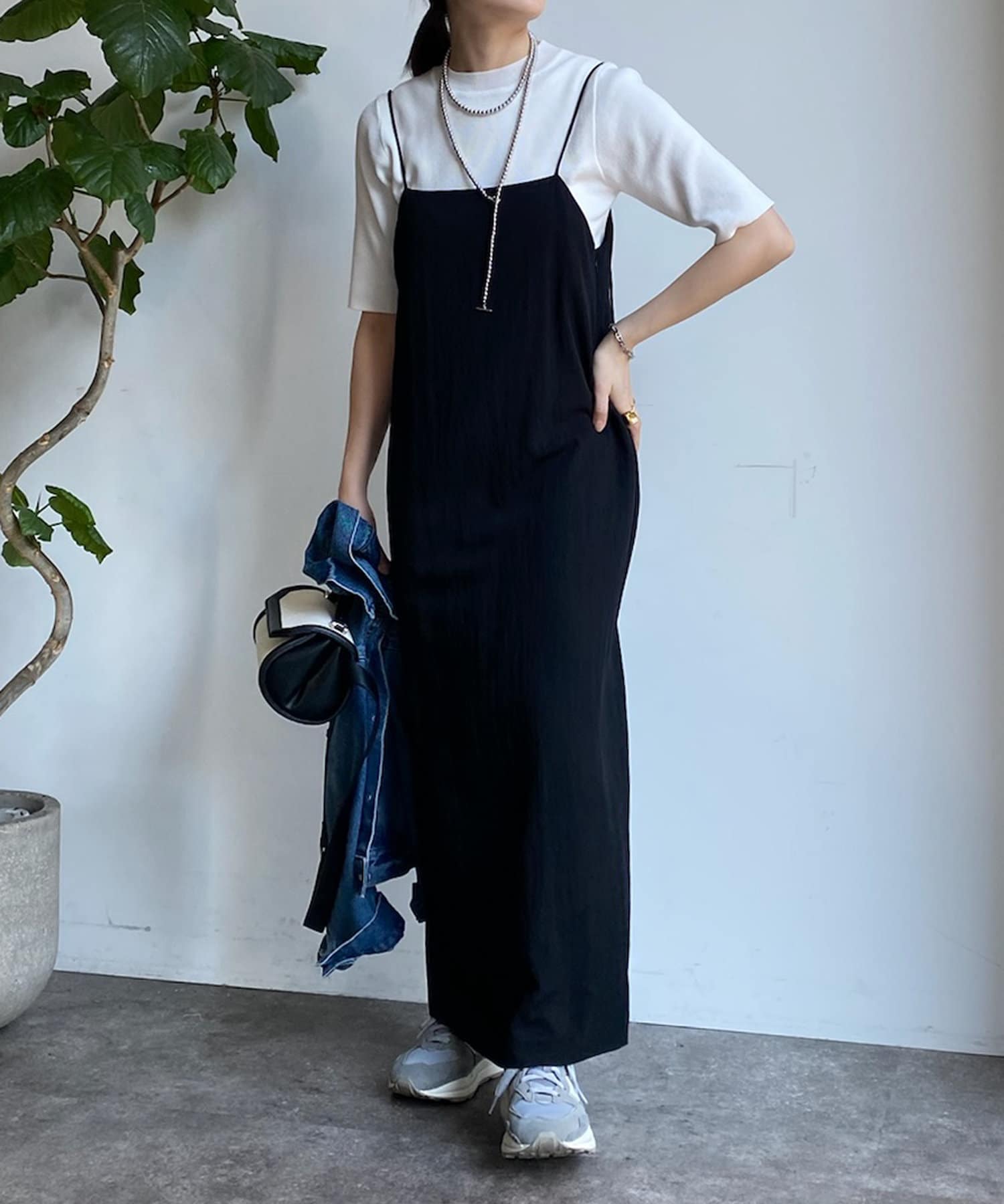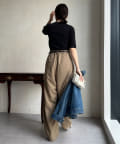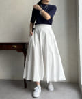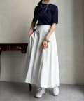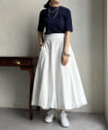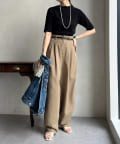 ピタピタとしすぎず、程よく身体から離れるシルエットが合わせやすく、オンオフどちらでも着られそう。
