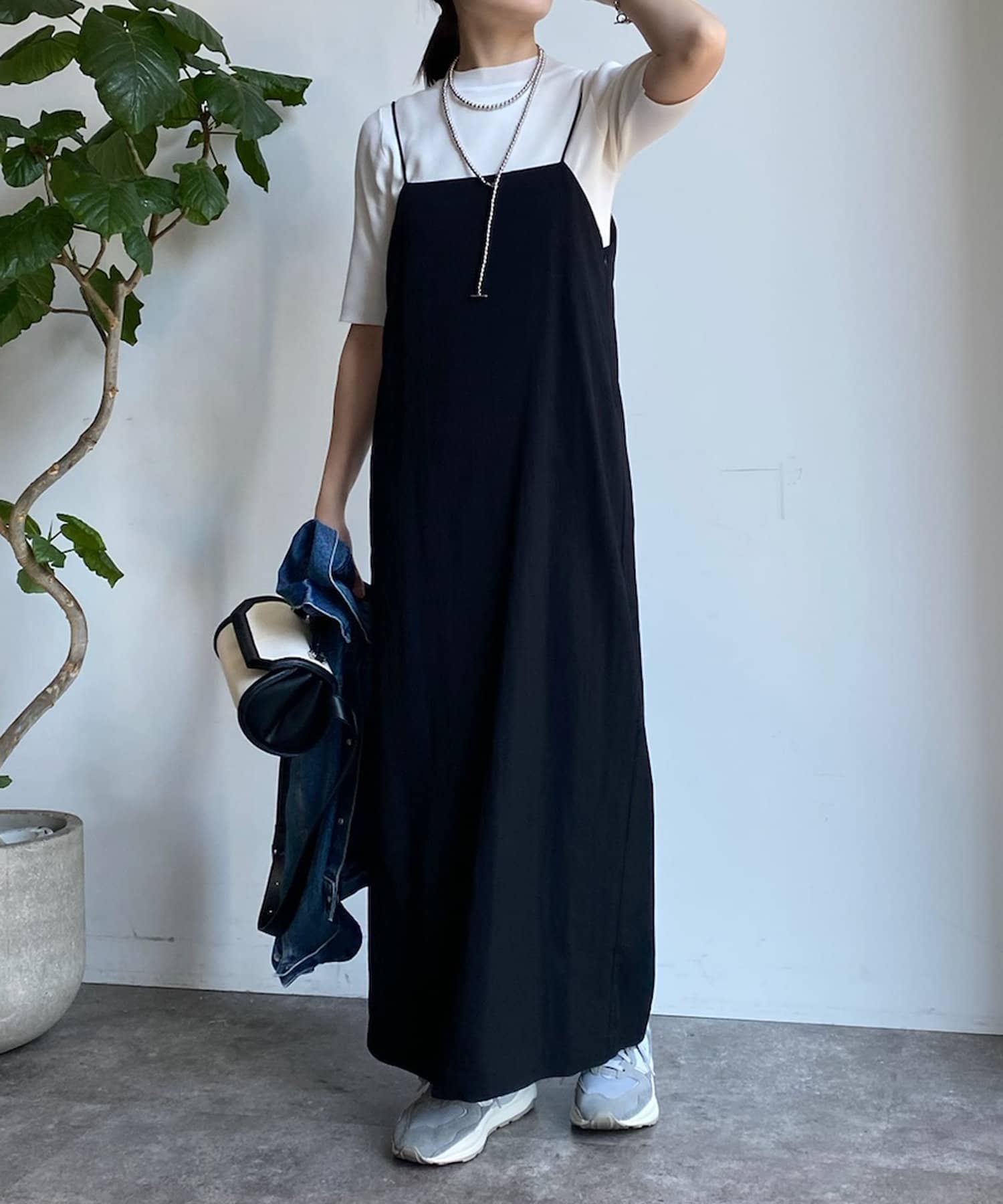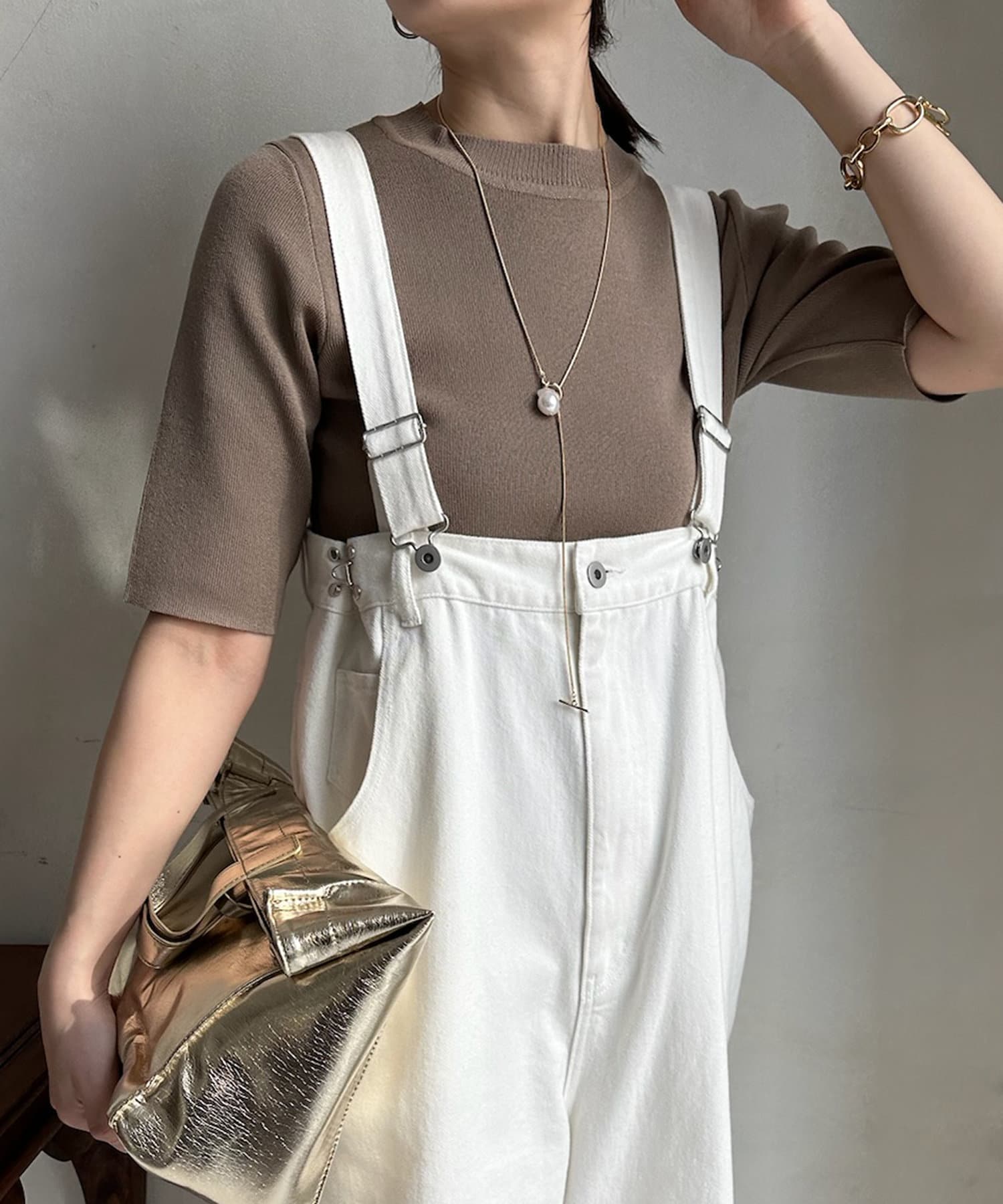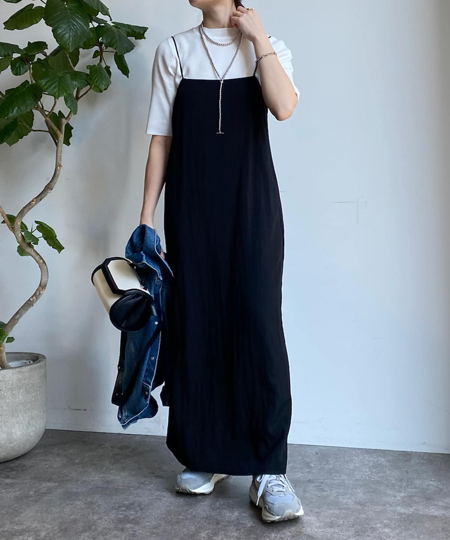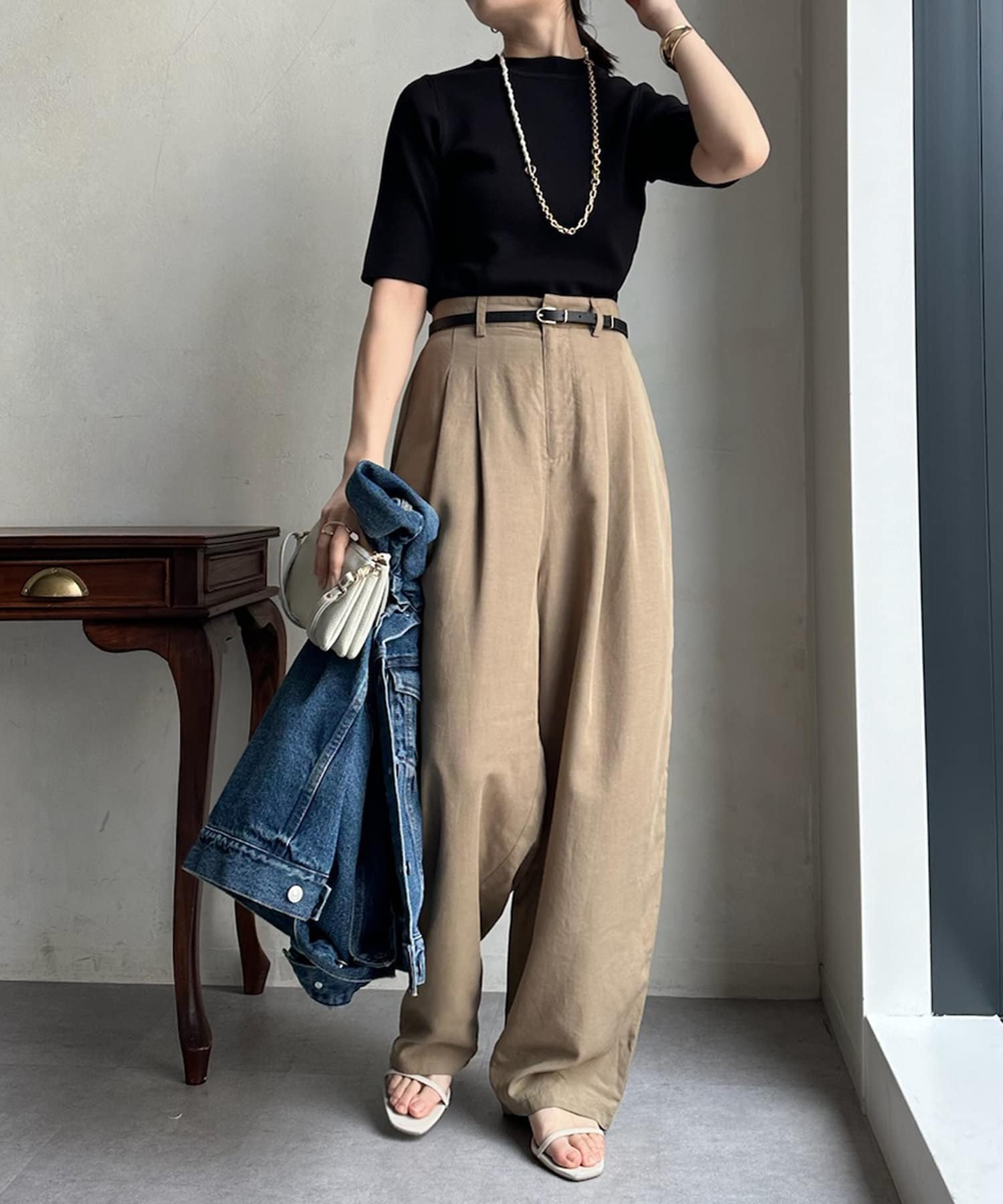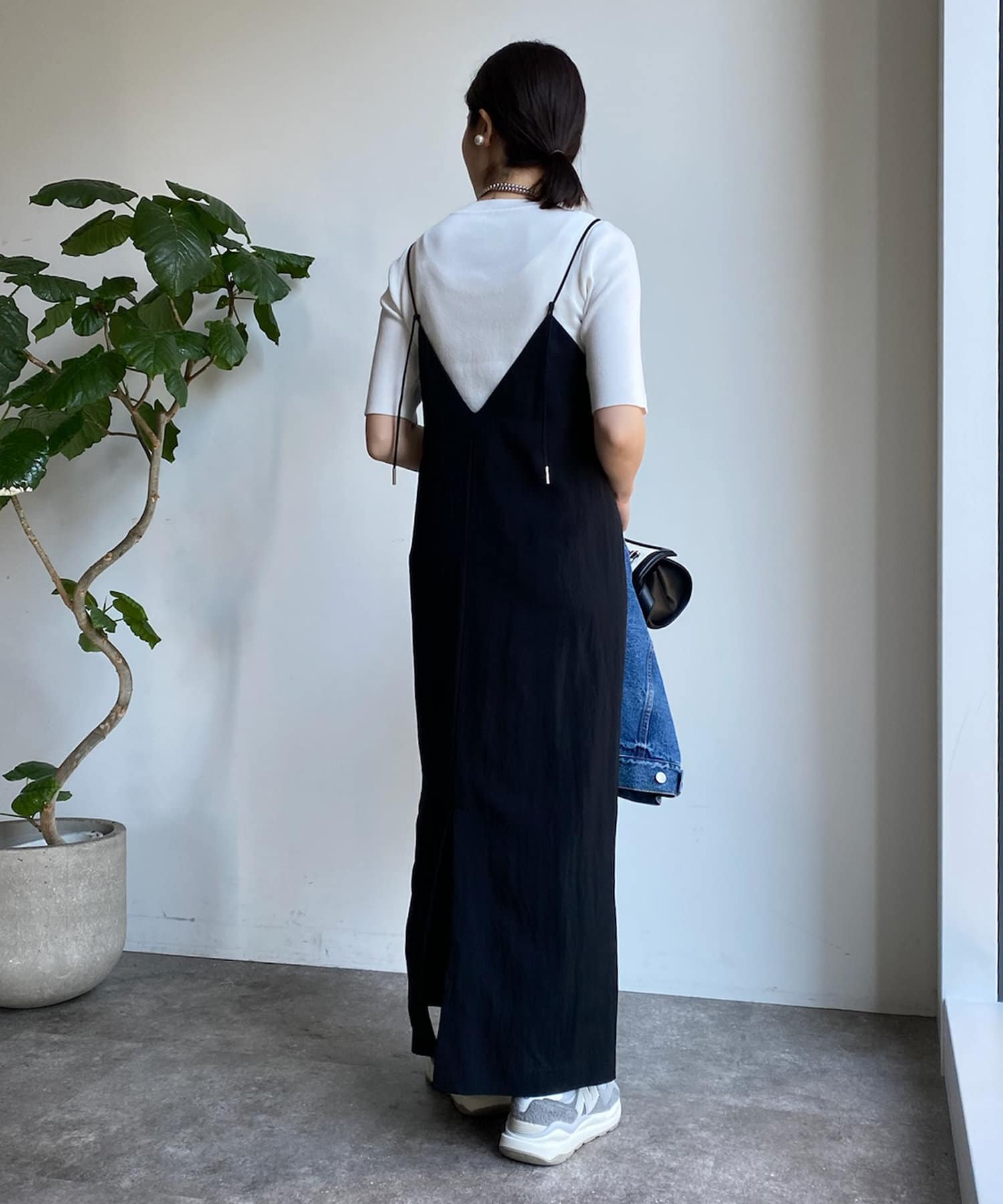 ピタピタとしすぎず、程よく身体から離れるシルエットが合わせやすく、オンオフどちらでも着られそう。