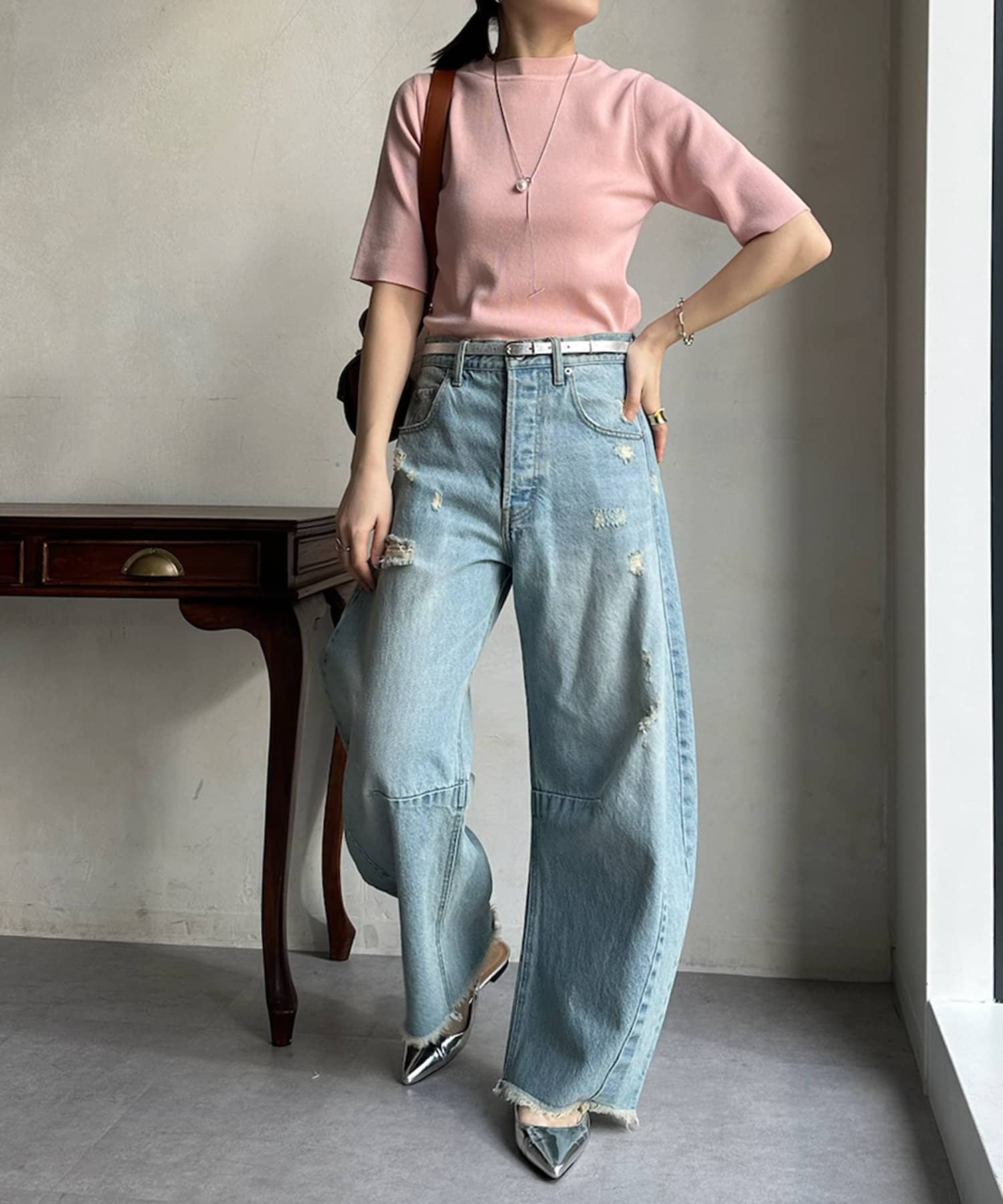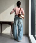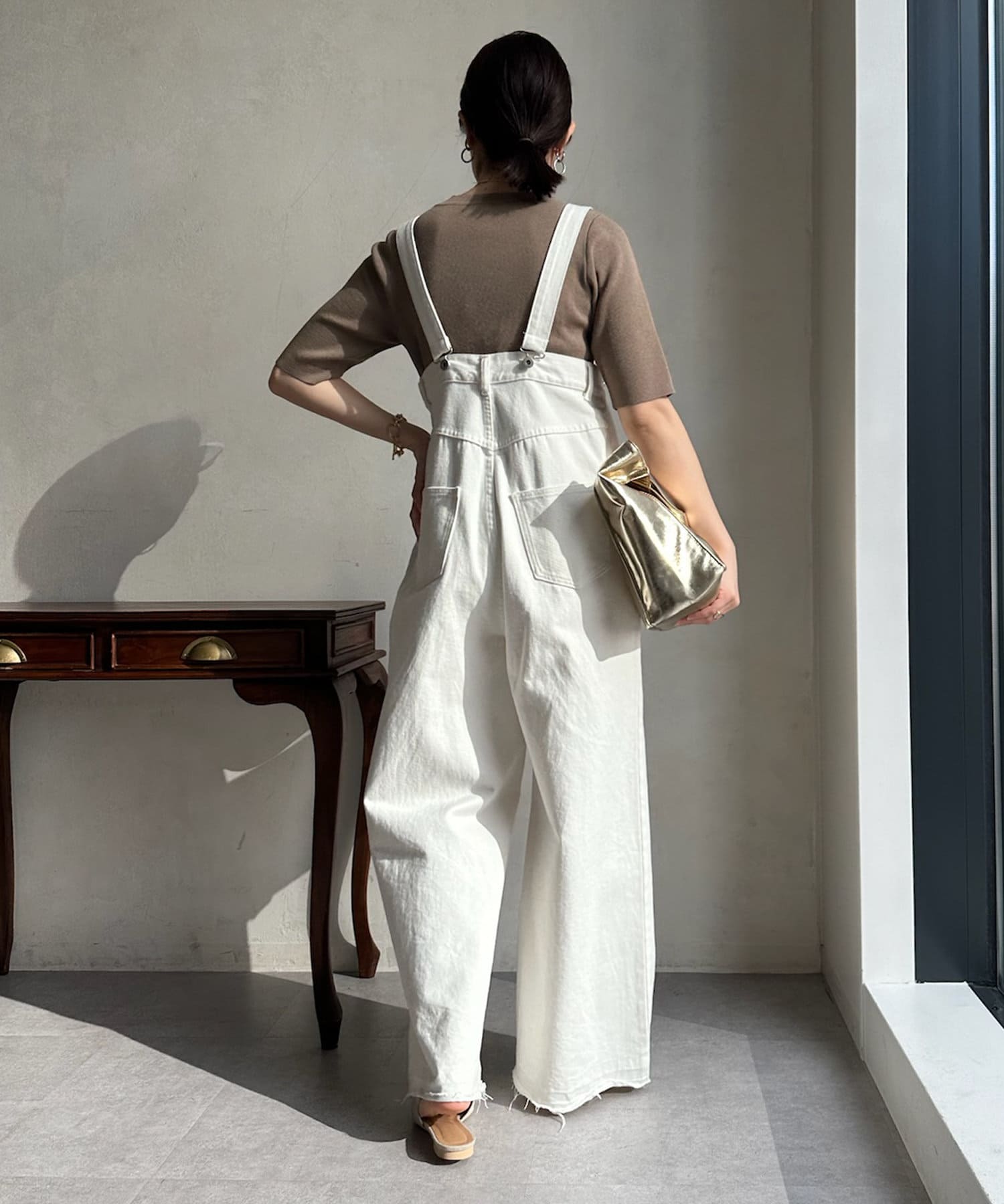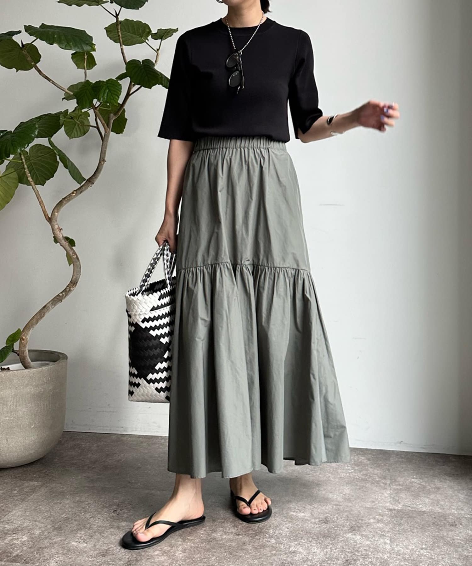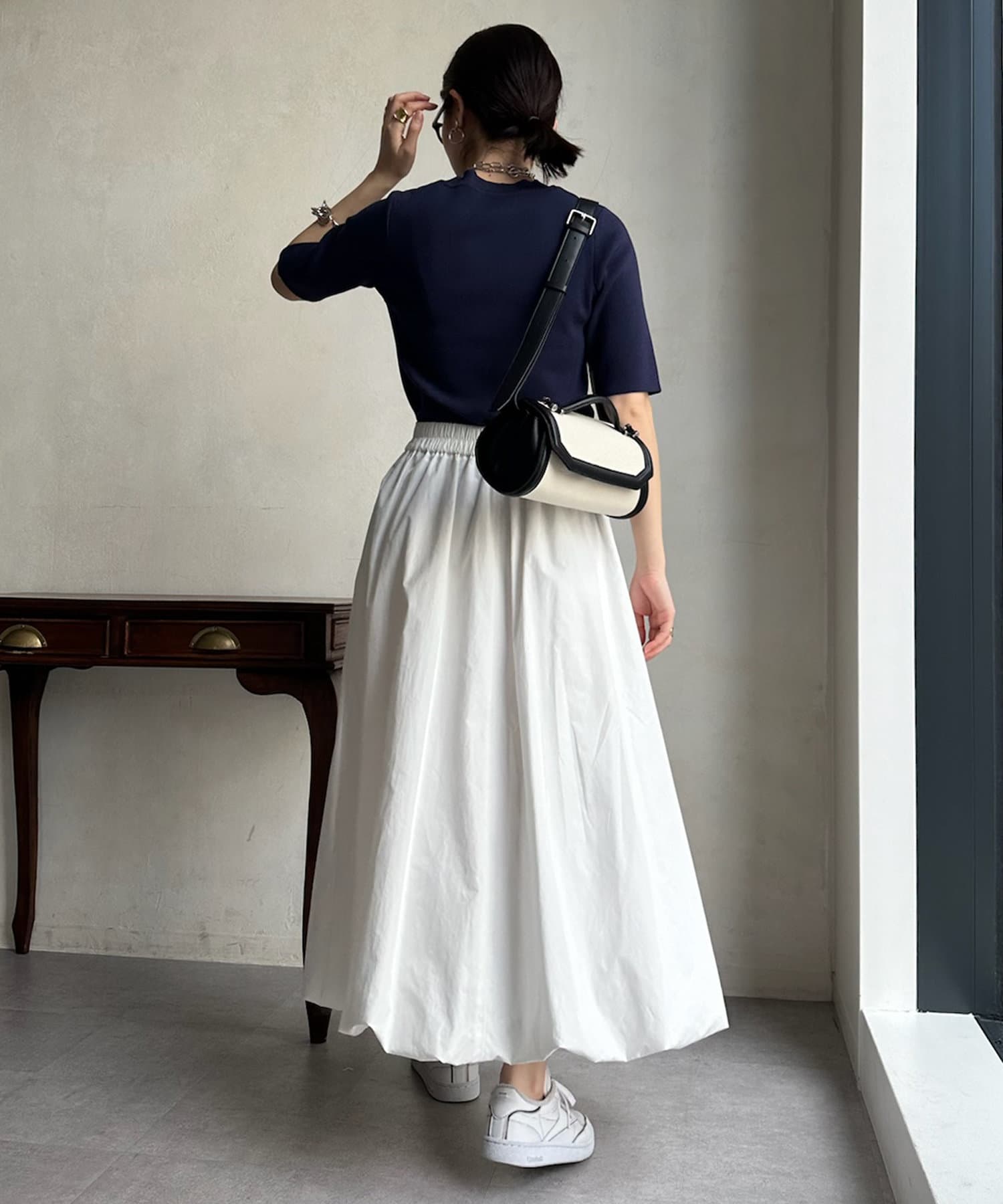 ピタピタとしすぎず、程よく身体から離れるシルエットが合わせやすく、オンオフどちらでも着られそう。